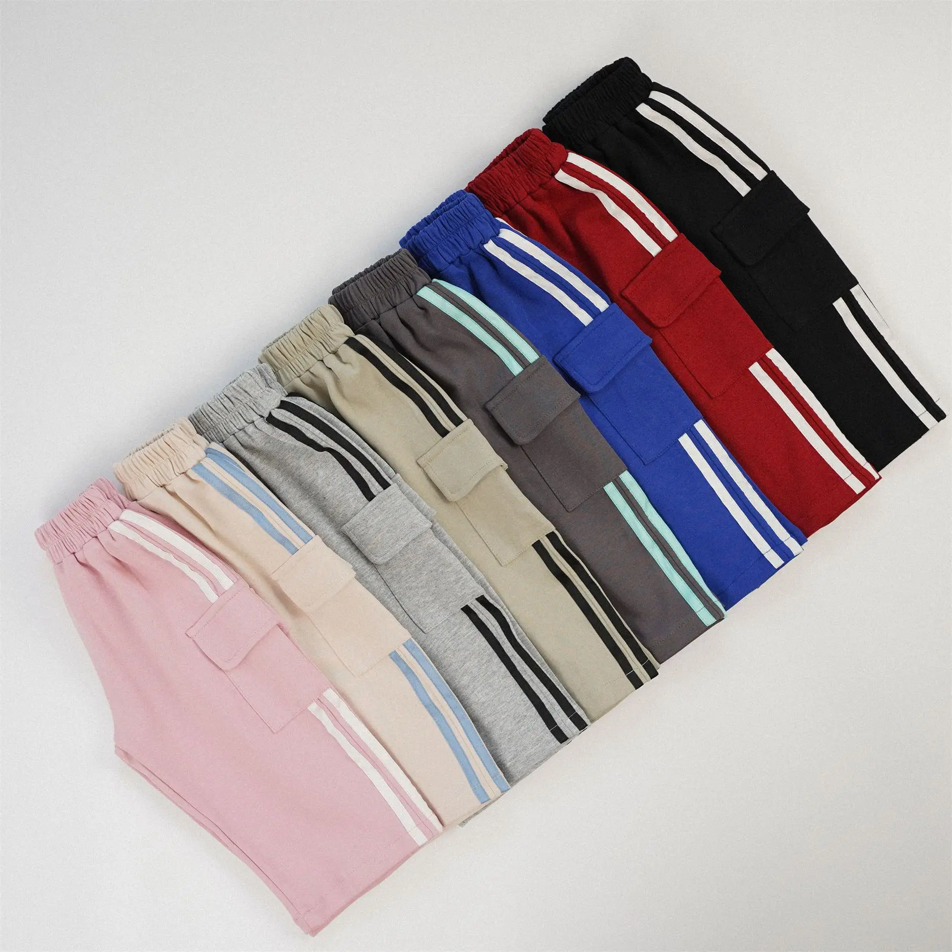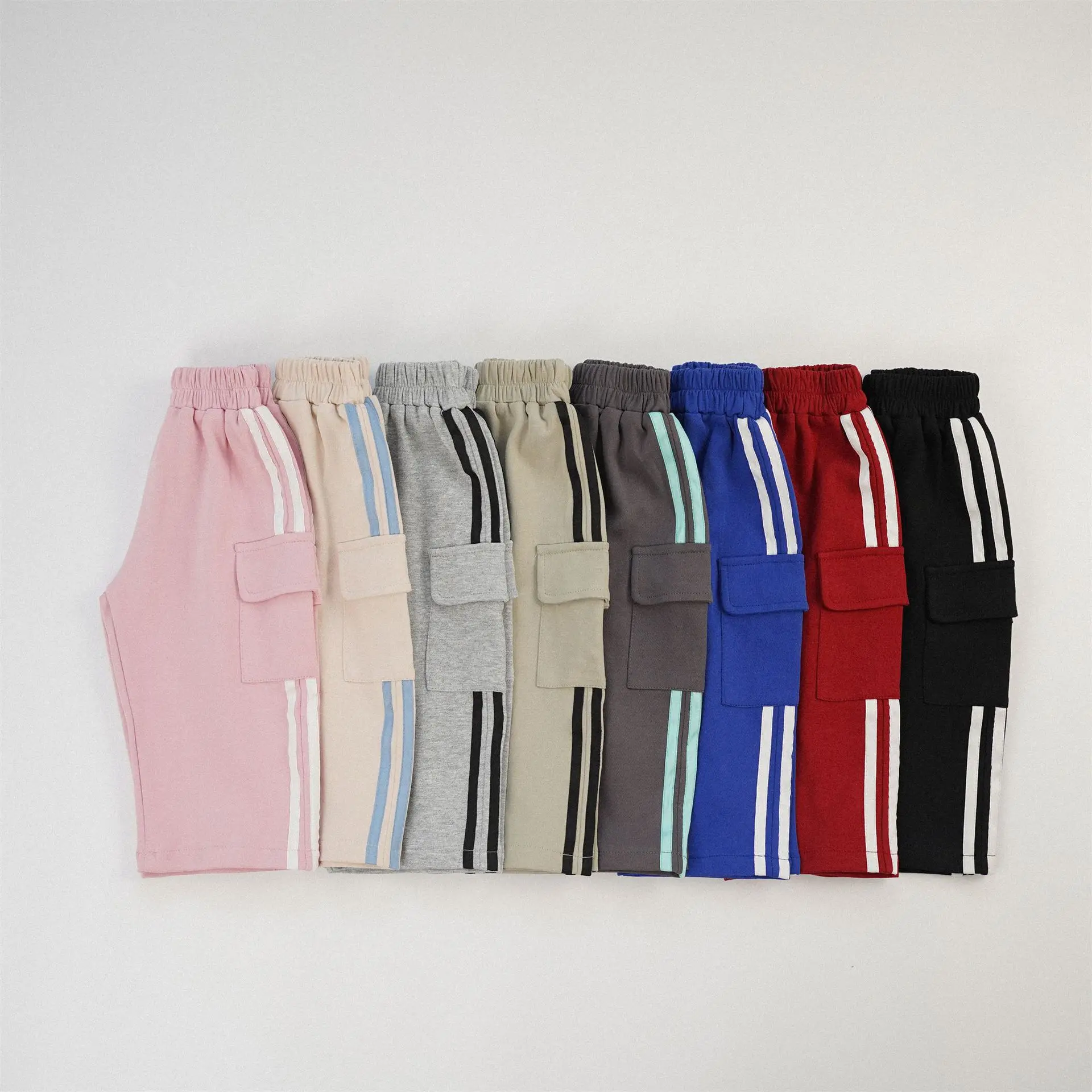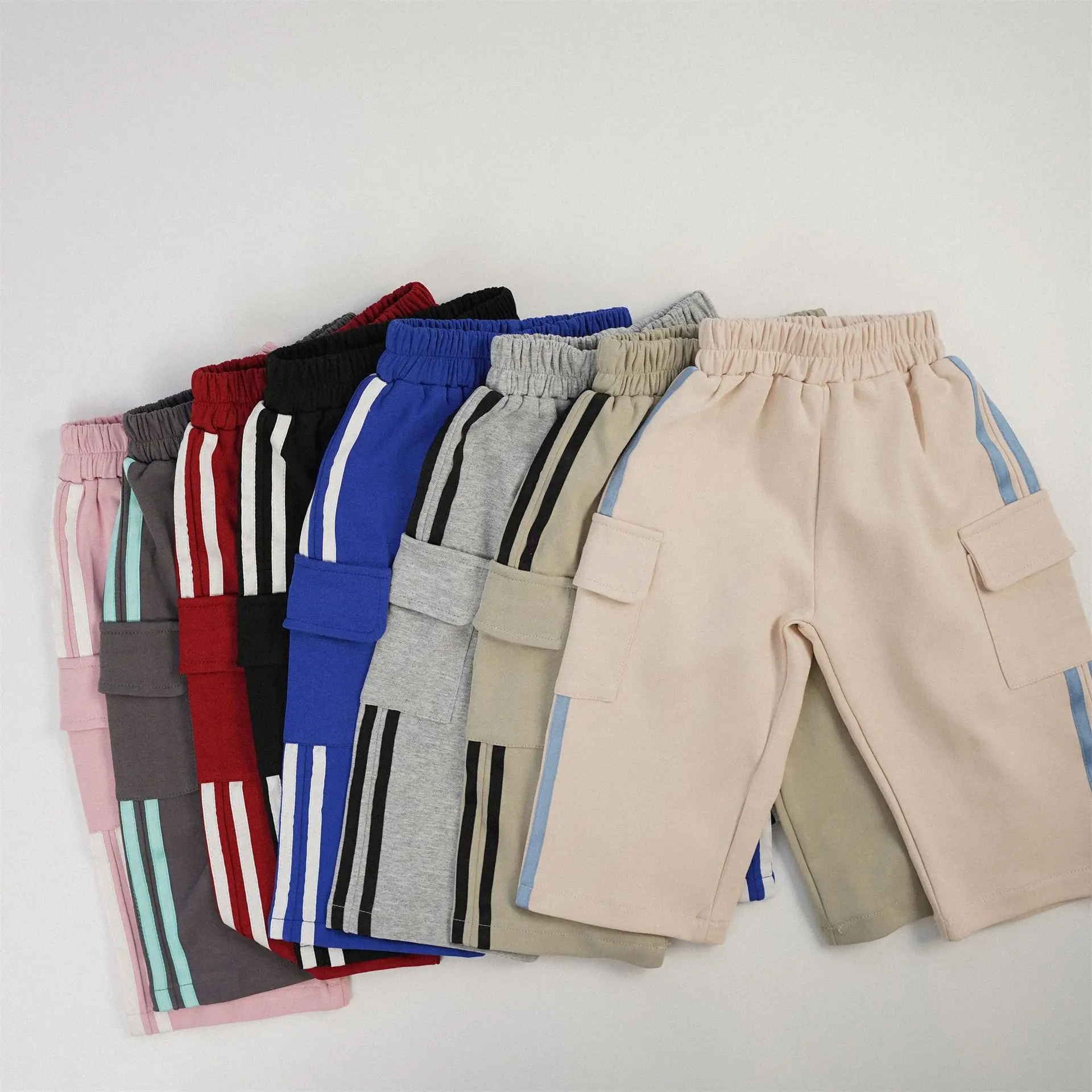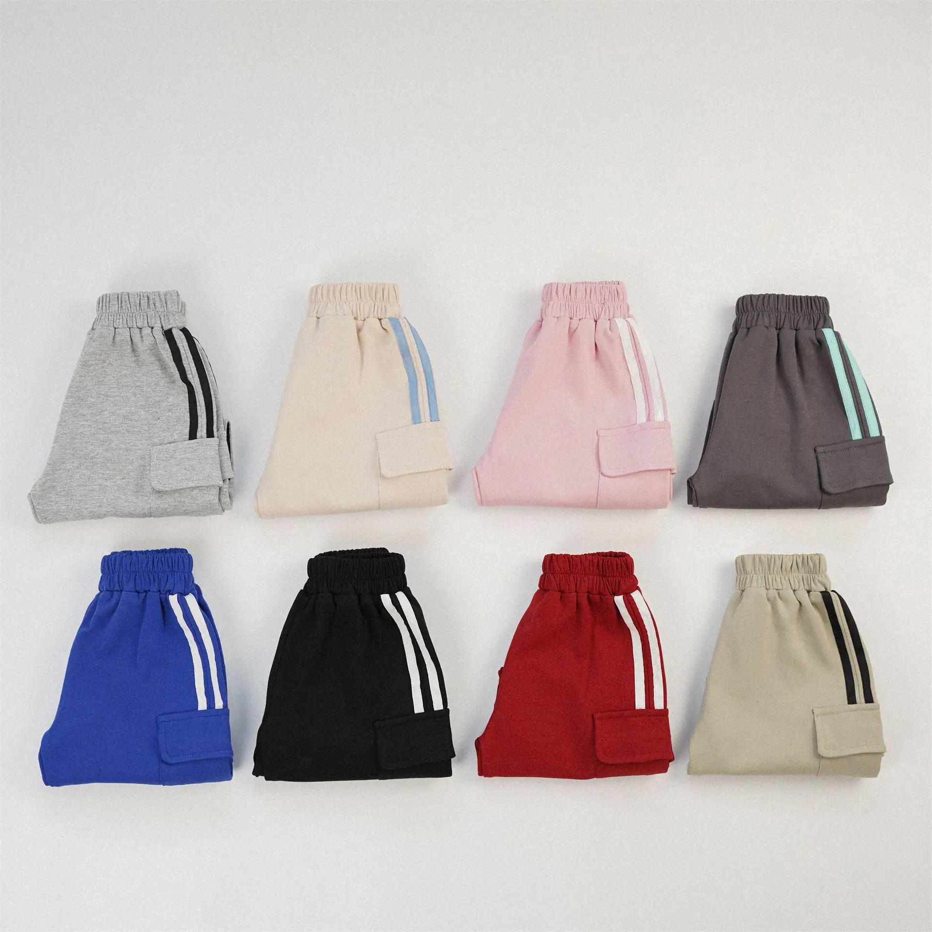キッズパンツ サイドラインスウェットカーゴパンツ スポーツパンツ 8カラー【mh0006965】