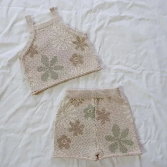 ベビーセットアップ 2点セット レトロフラワーニットキャミソールベスト+ニットショートパンツ【mh0007083】