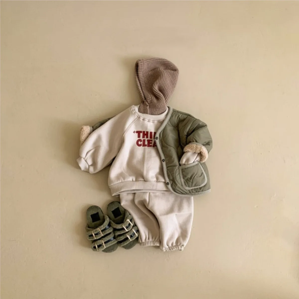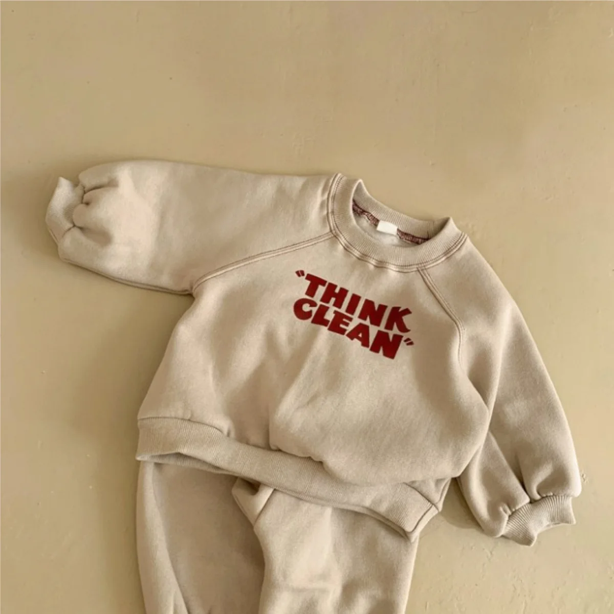 ベビーセットアップ THINK CLAEAN レターロゴプリントスウェットシャツ+スウェットパンツ 2カラー【mh0007236】