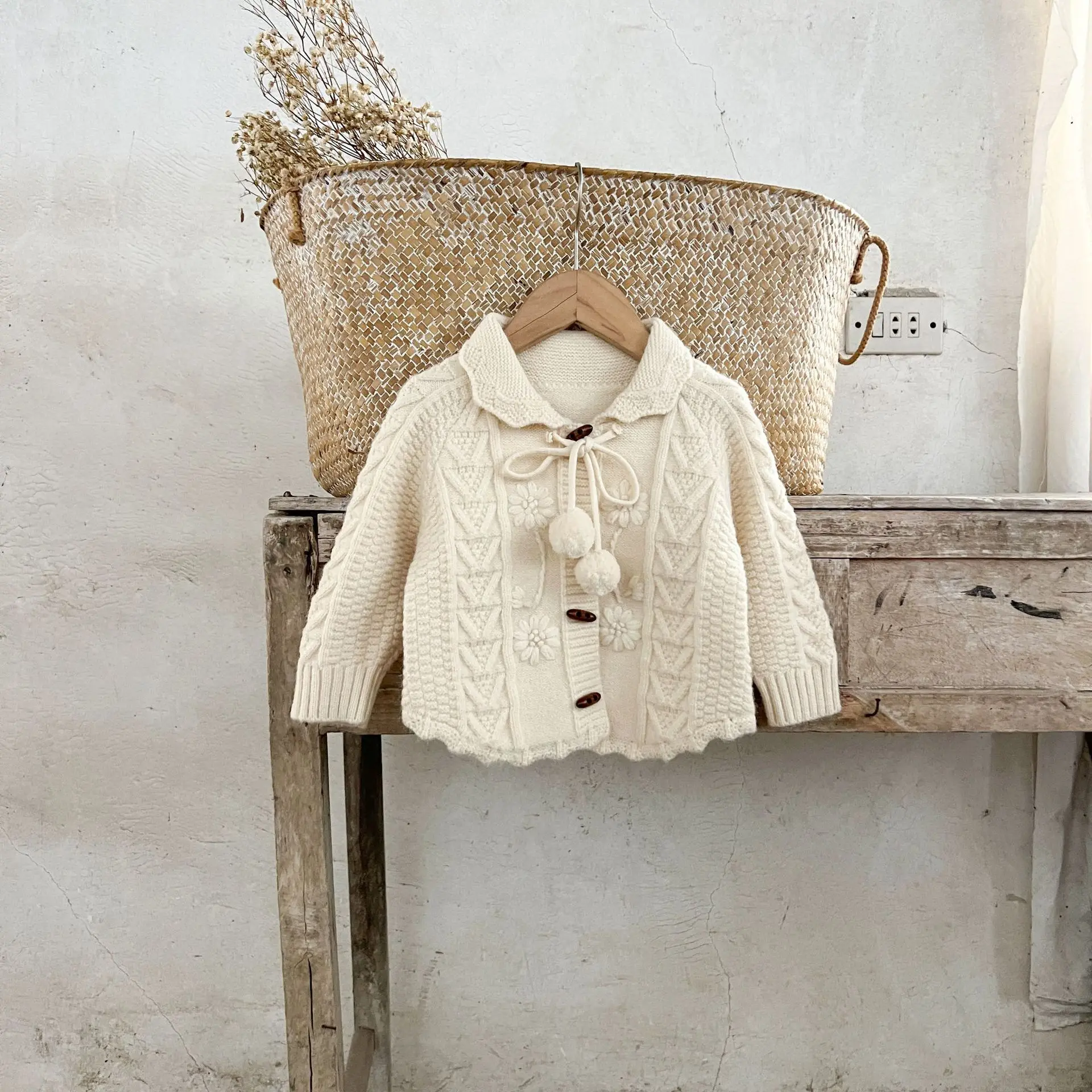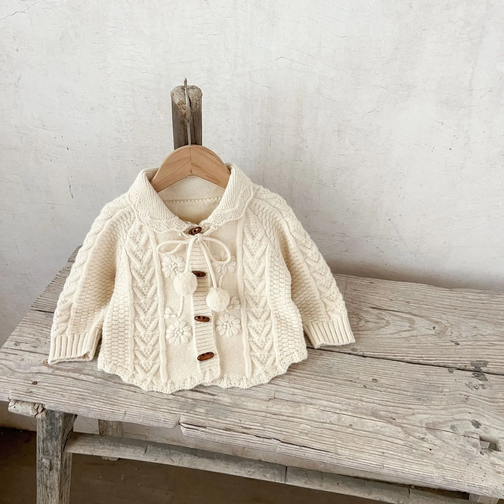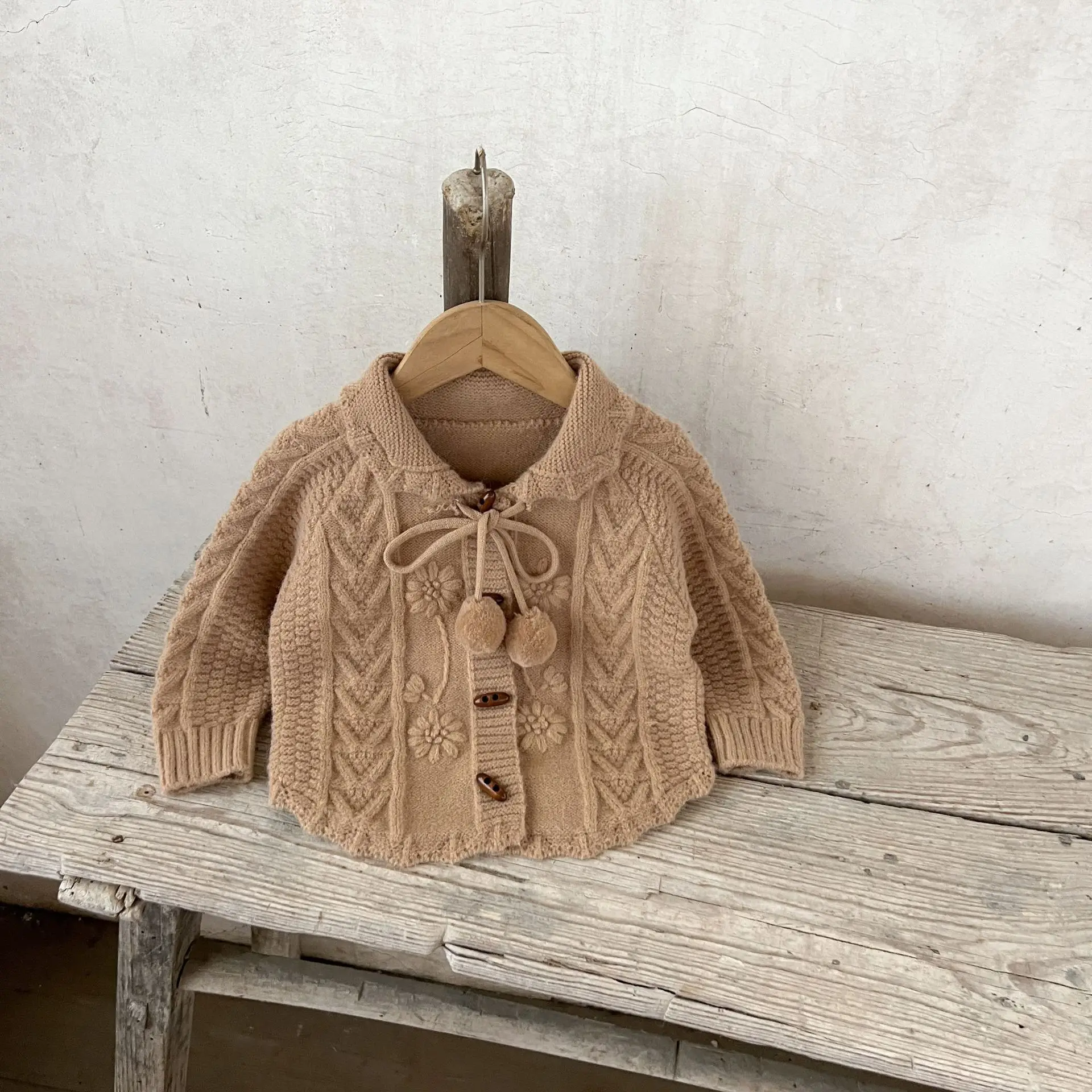 #ベビーニットカーディガン #アラン編み #ぽんぽん付き #秋冬コーデ #韓国子供服 #キッズファッション #暖かいニット