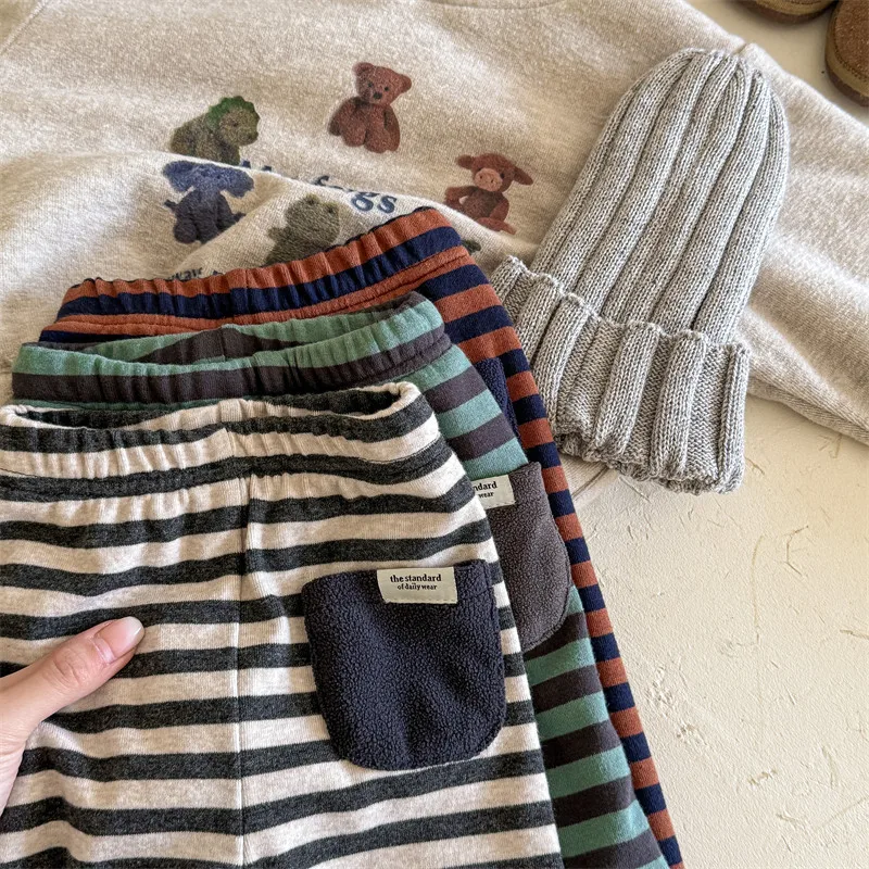 #キッズファッション #ベビー服 #裏フリース #ボーダーレギンス #韓国子供服 #冬用パンツ #カジュアルパンツ