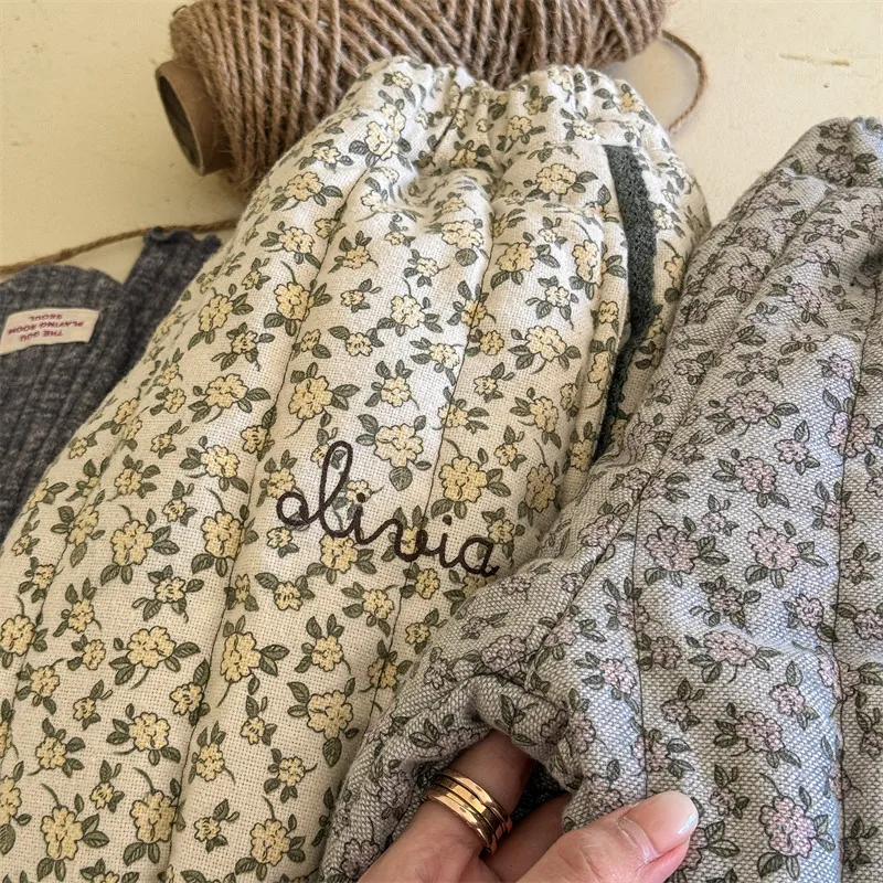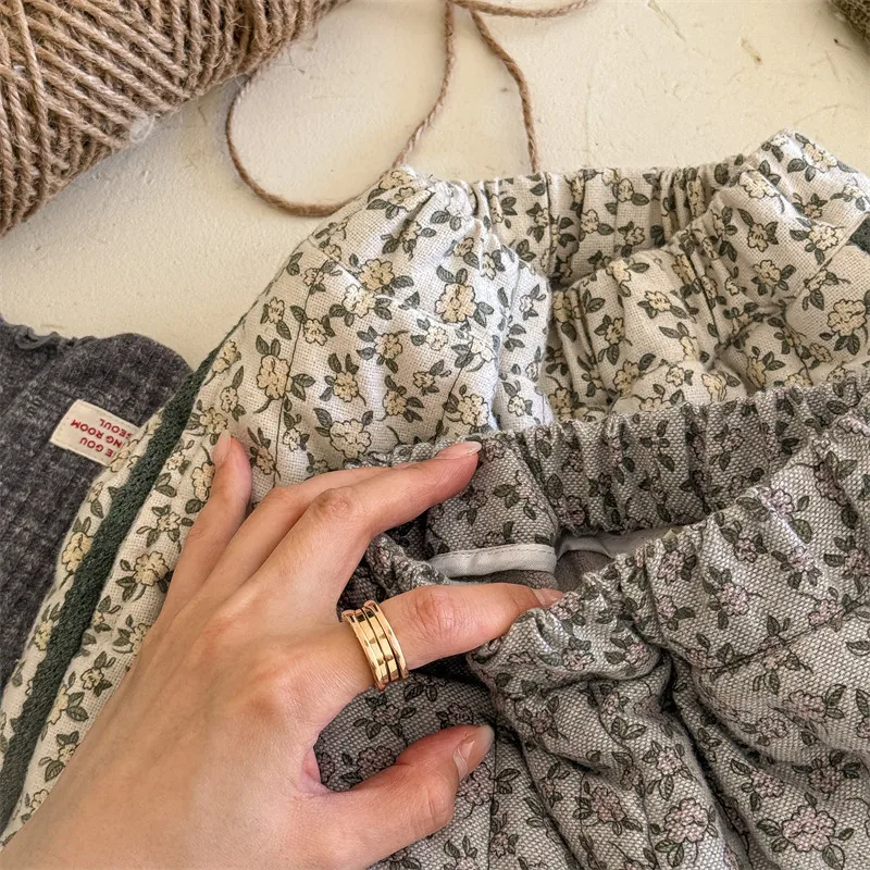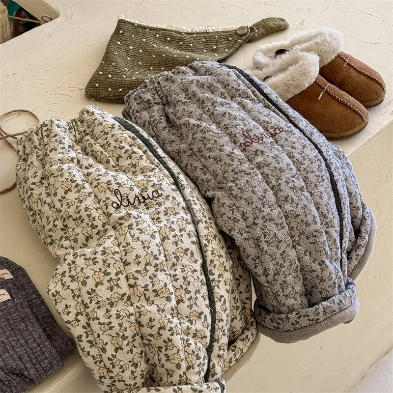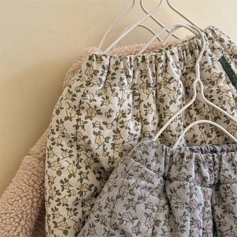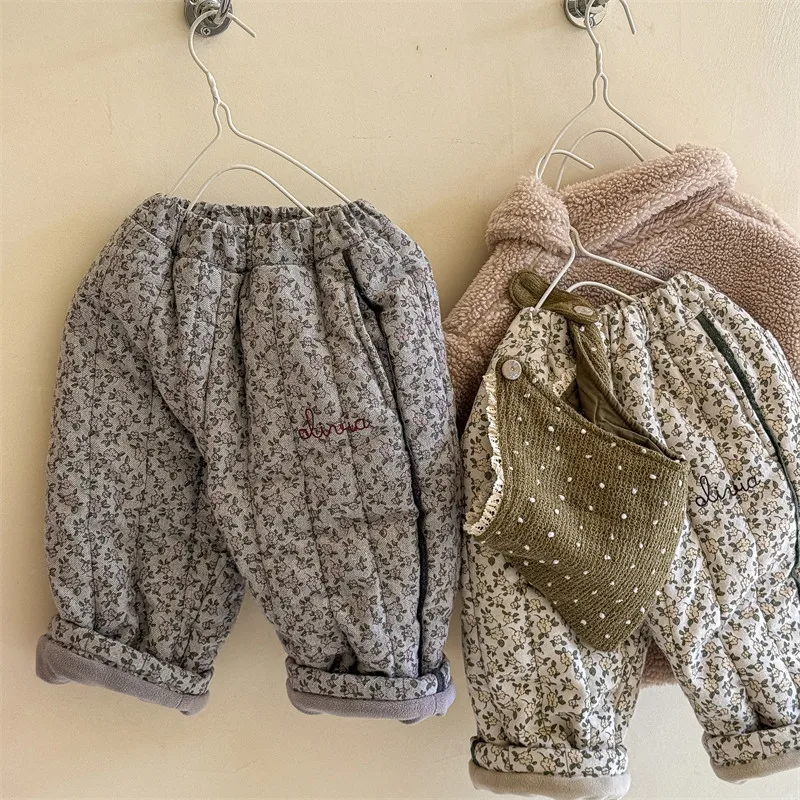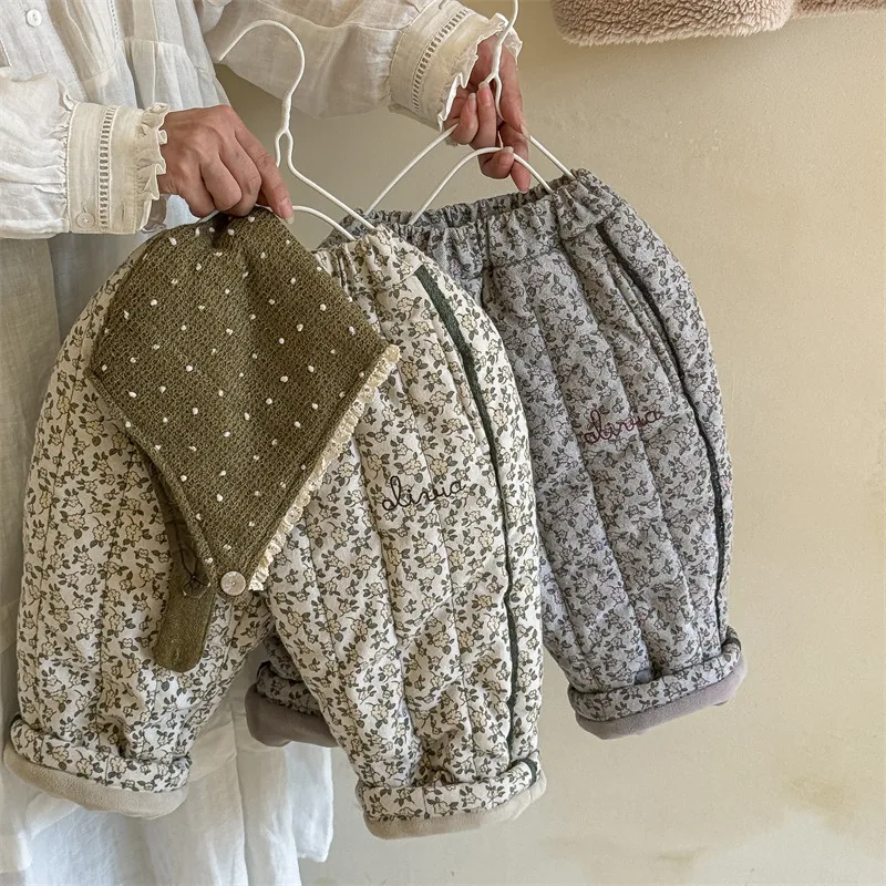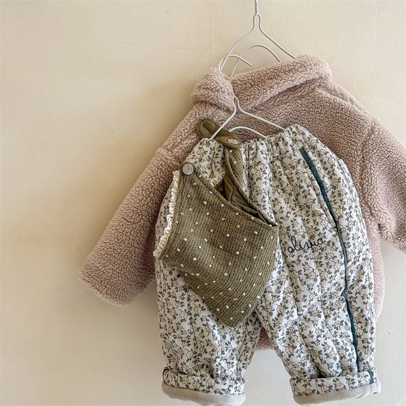 #キッズファッション #ベビー服 #花柄プリント #裏フリース #コーデュロイパンツ #韓国子供服 #冬用パンツ