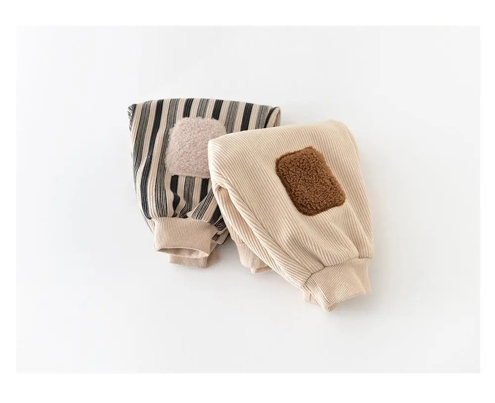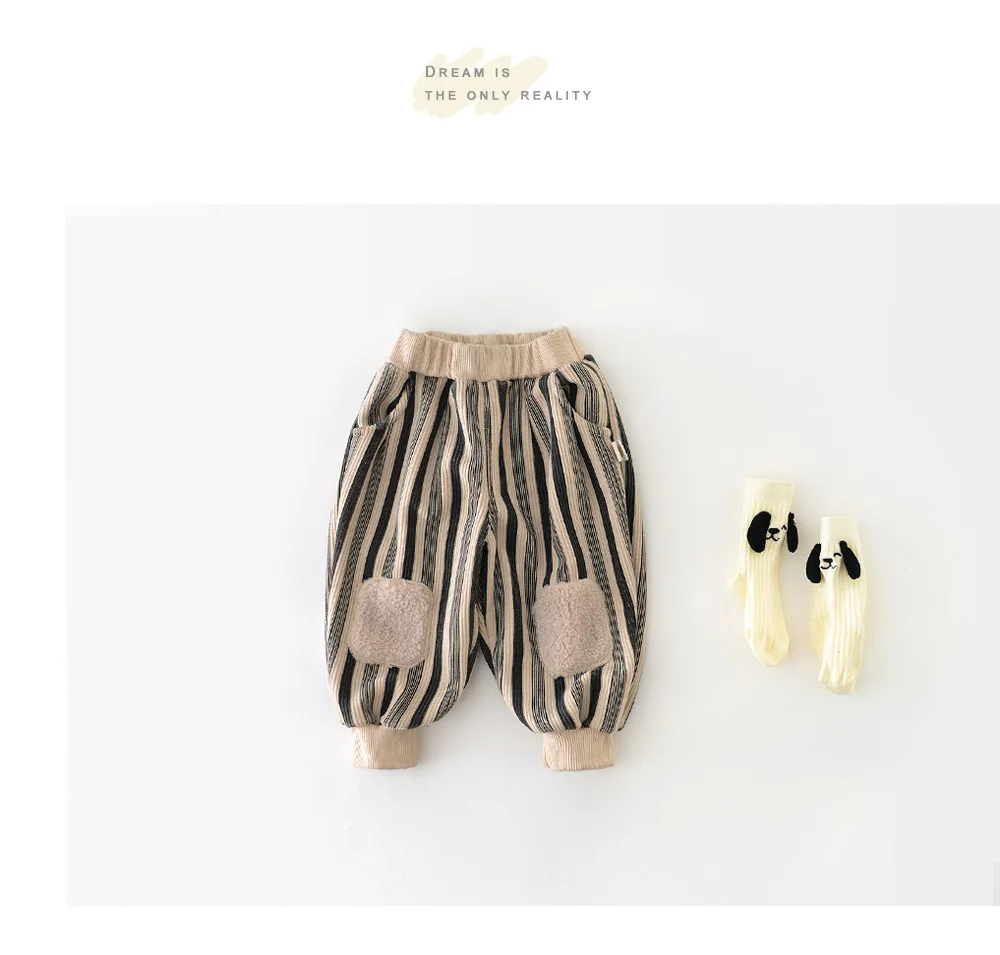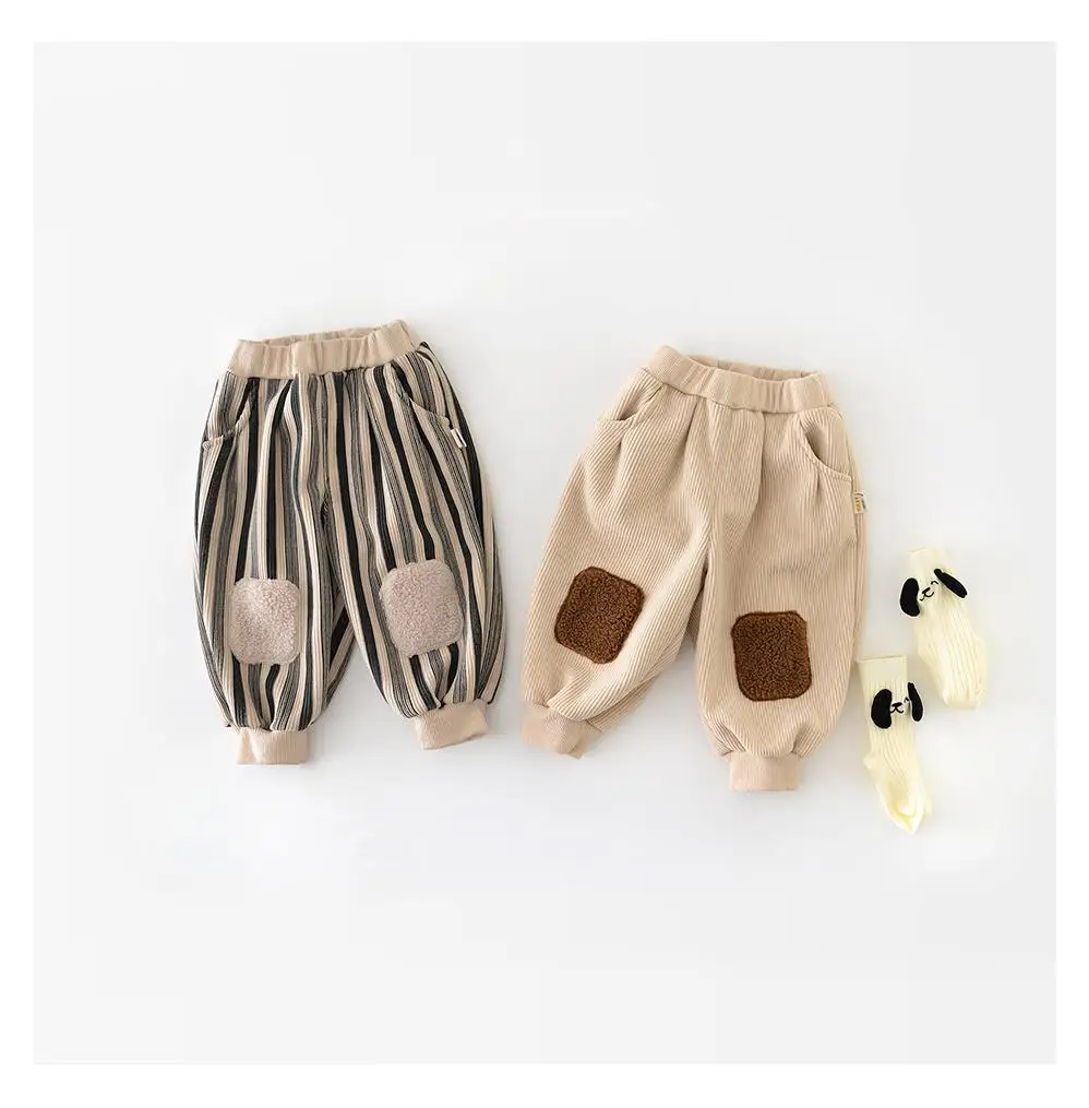 #ベビー服 #キッズファッション #ストライプパンツ #膝あてパッチ #ジョガーパンツ #韓国子供服 #冬用パンツ