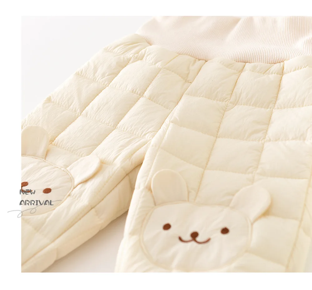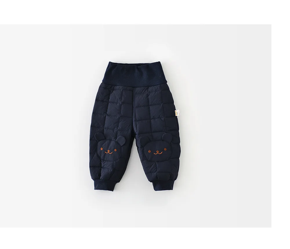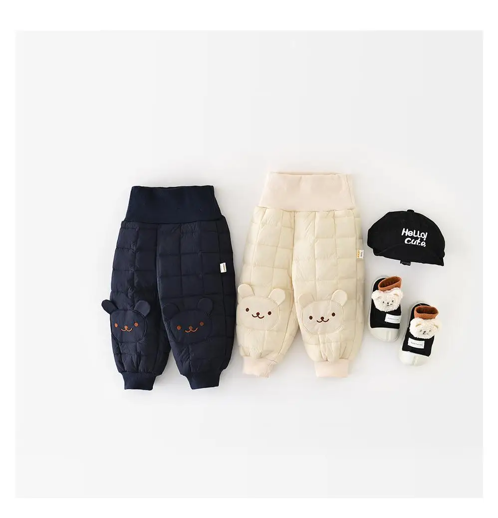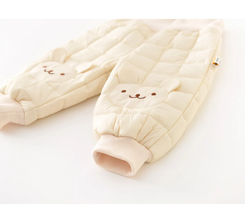 ベビーパンツ キルティングベアくま膝パッチハイウェスト防寒ロングパンツ【mh0007824】