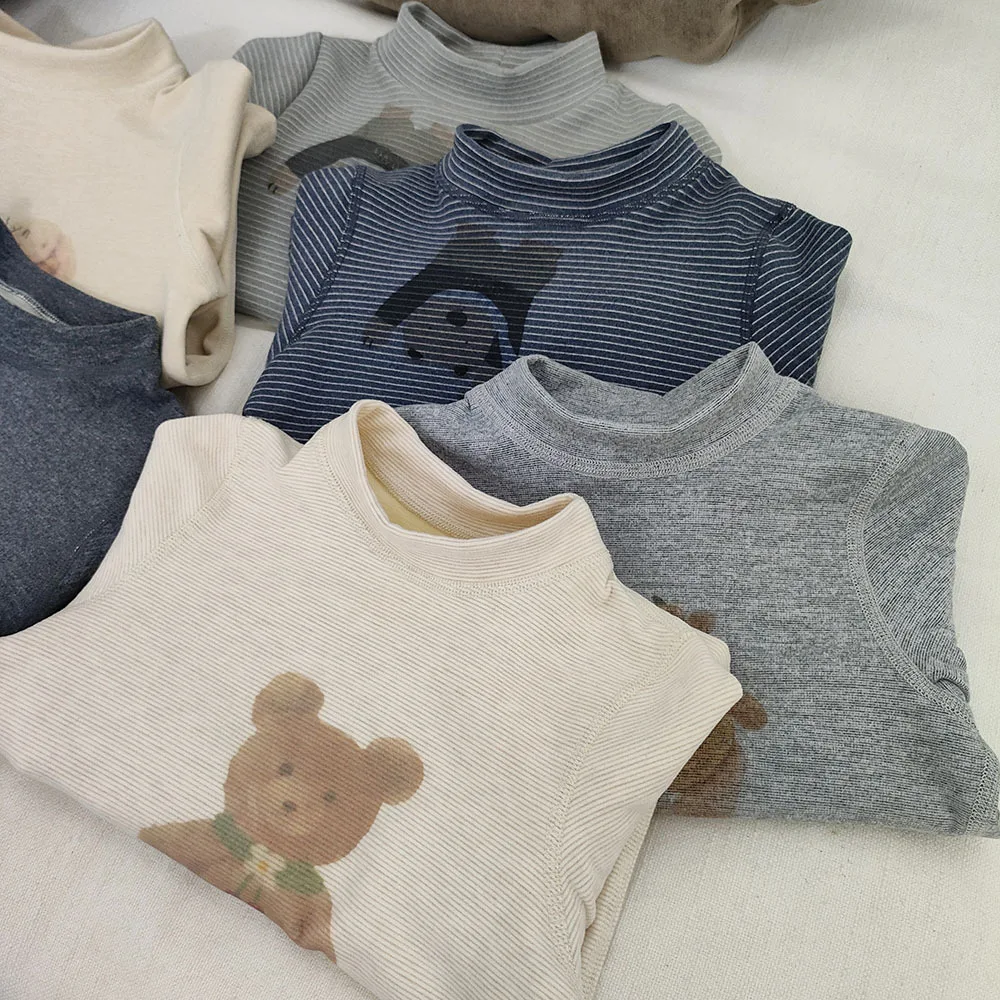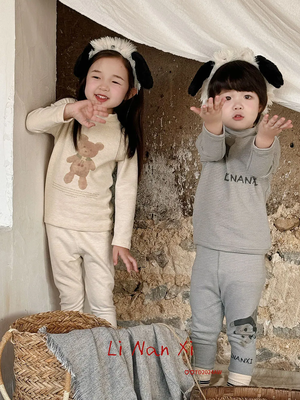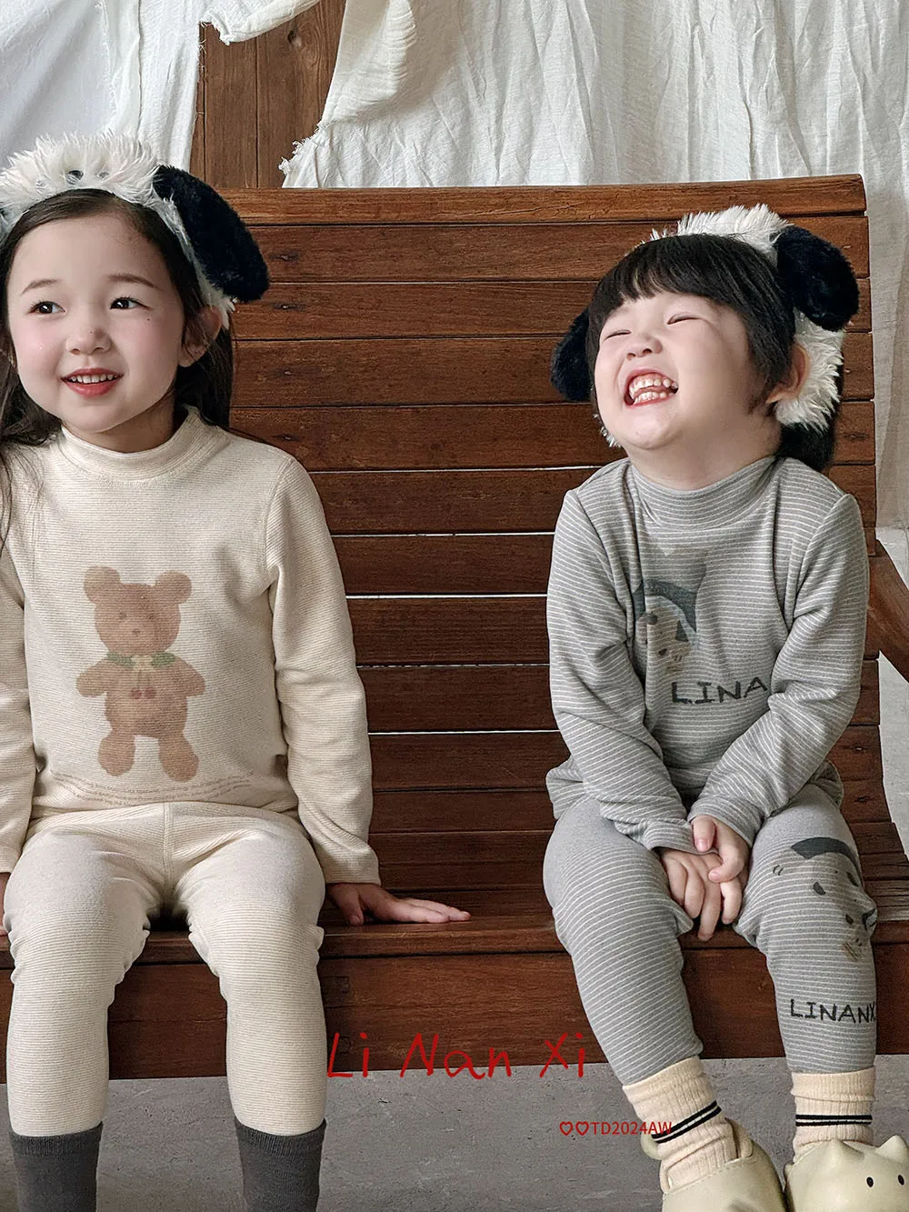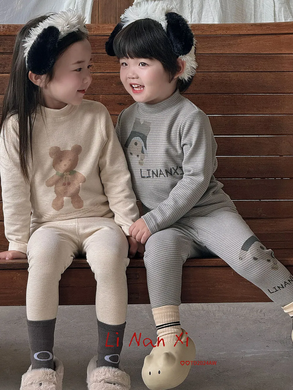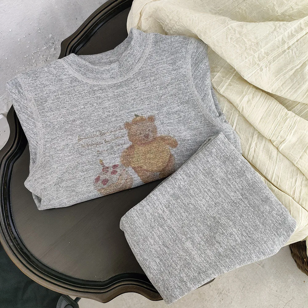 キッズセットアップ 2点セット アニマルプリントボーダー/無地長袖パジャマセット ハイネック長袖Tシャツ+ロングパンツ【mh0007851】