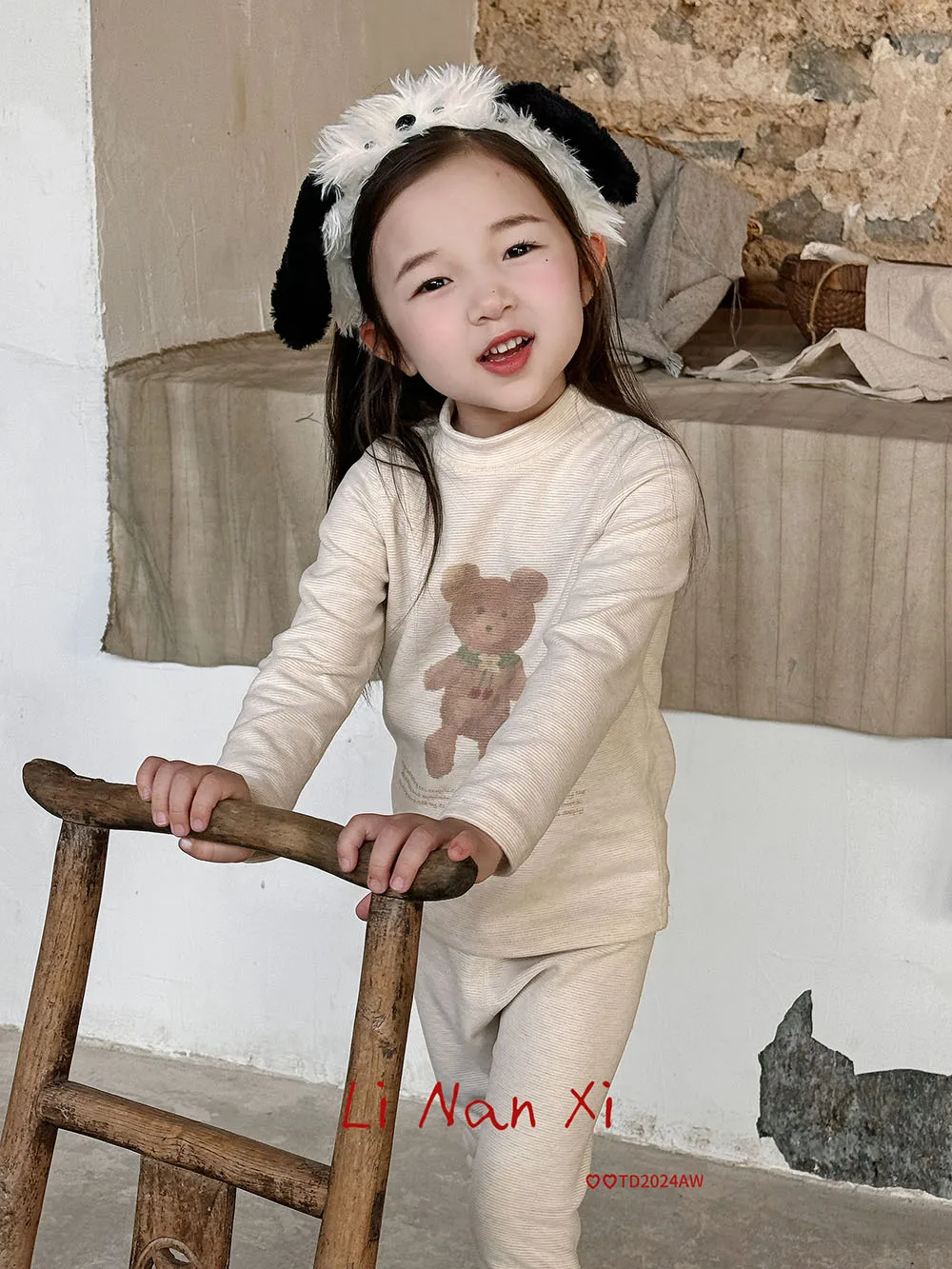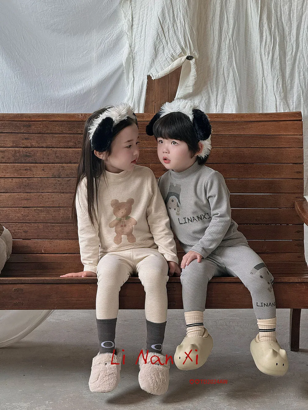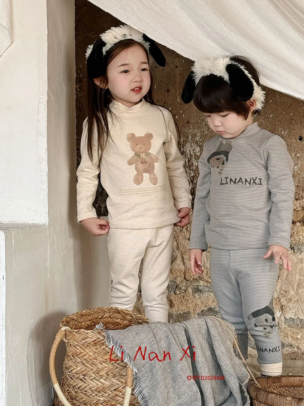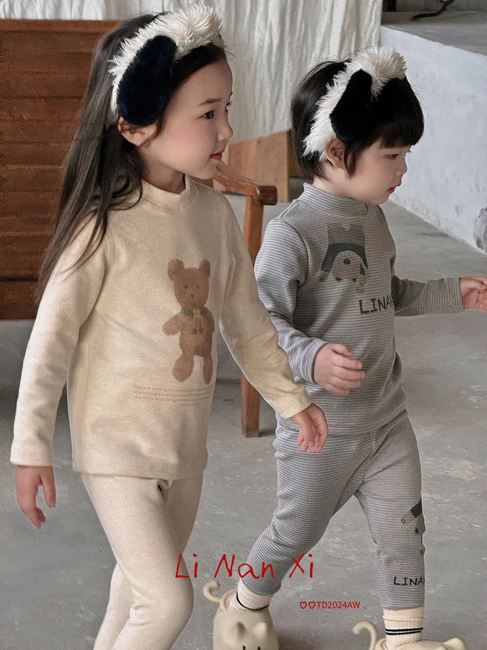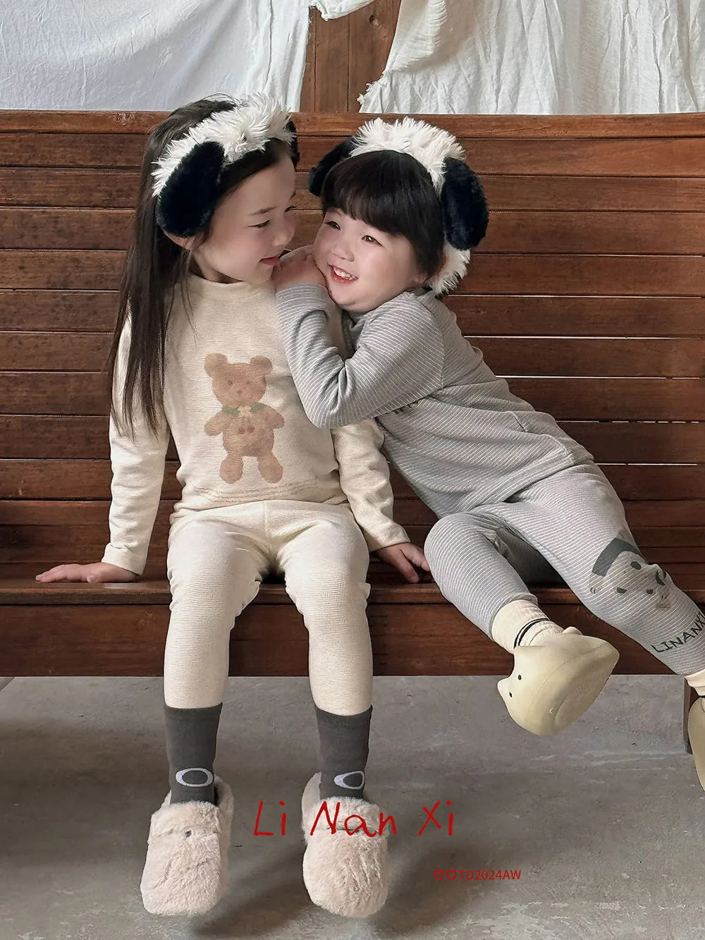 キッズセットアップ 2点セット アニマルプリントボーダー/無地長袖パジャマセット ハイネック長袖Tシャツ+ロングパンツ【mh0007851】