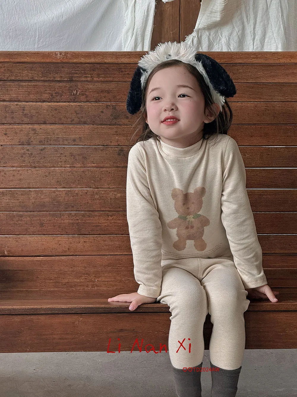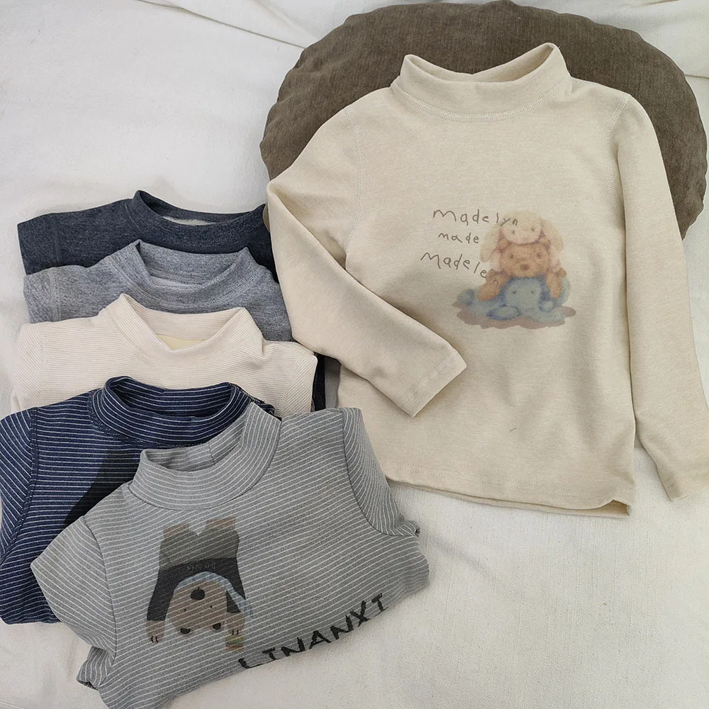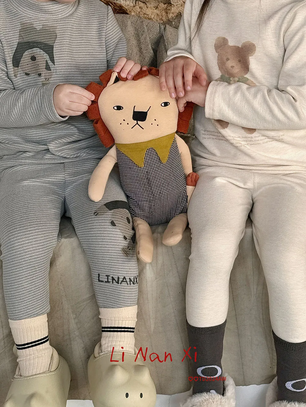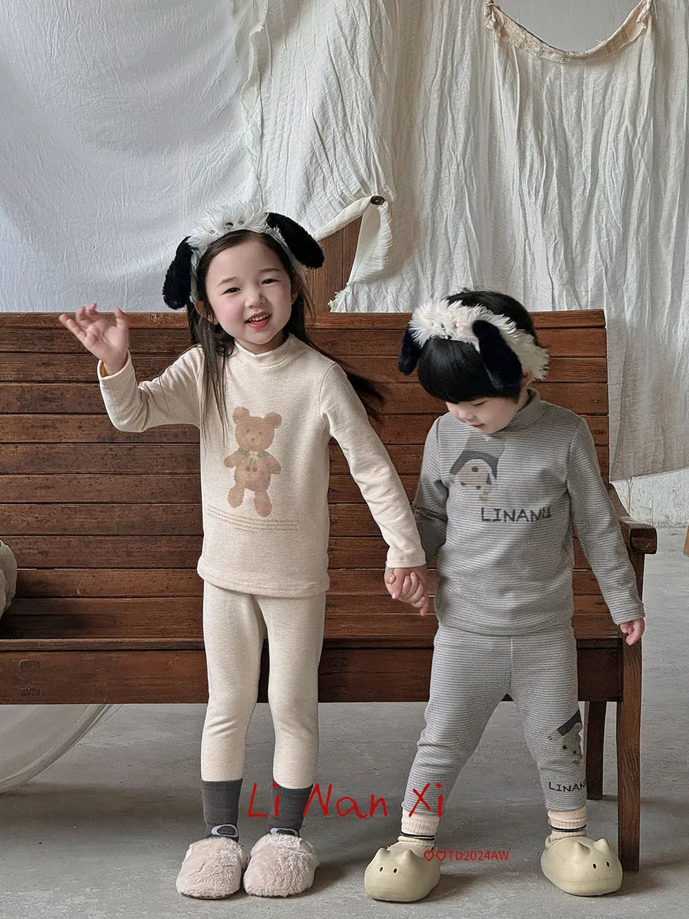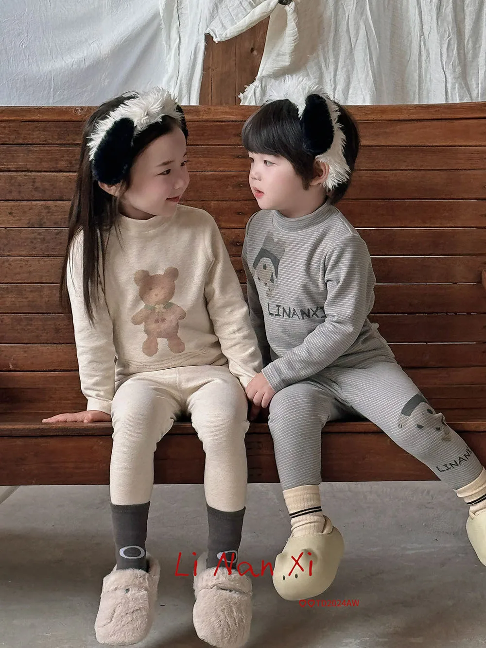 キッズセットアップ 2点セット アニマルプリントボーダー/無地長袖パジャマセット ハイネック長袖Tシャツ+ロングパンツ【mh0007851】