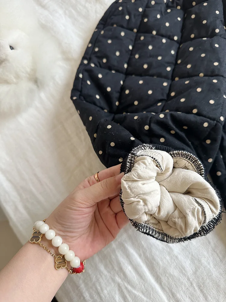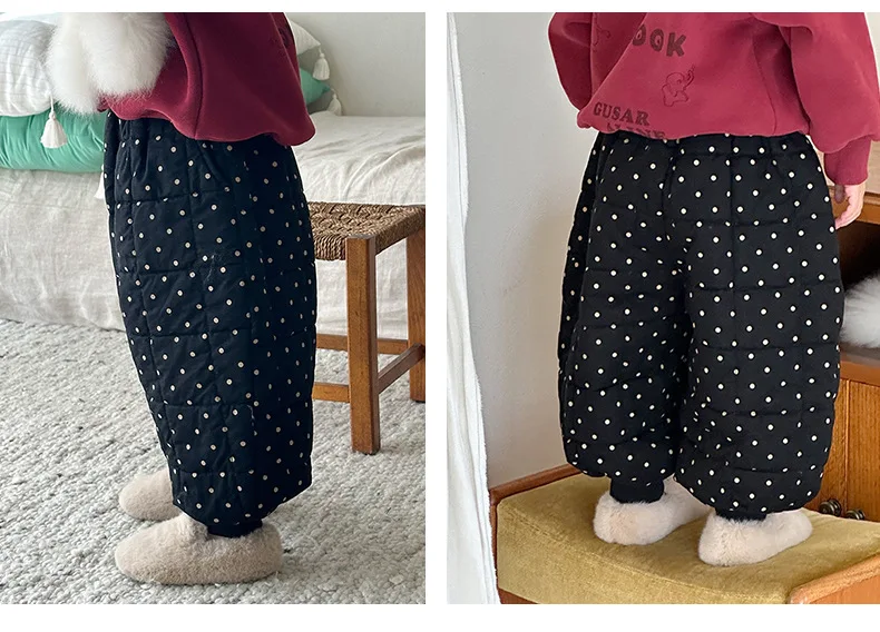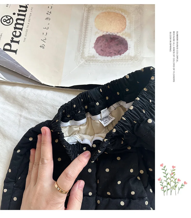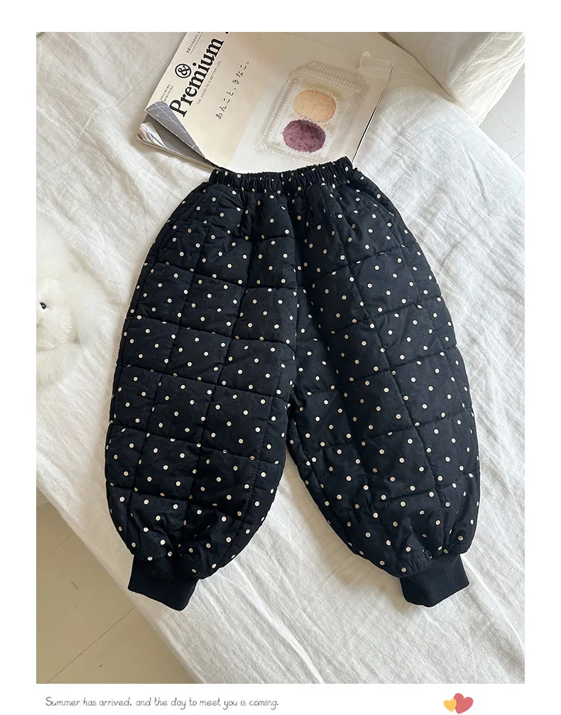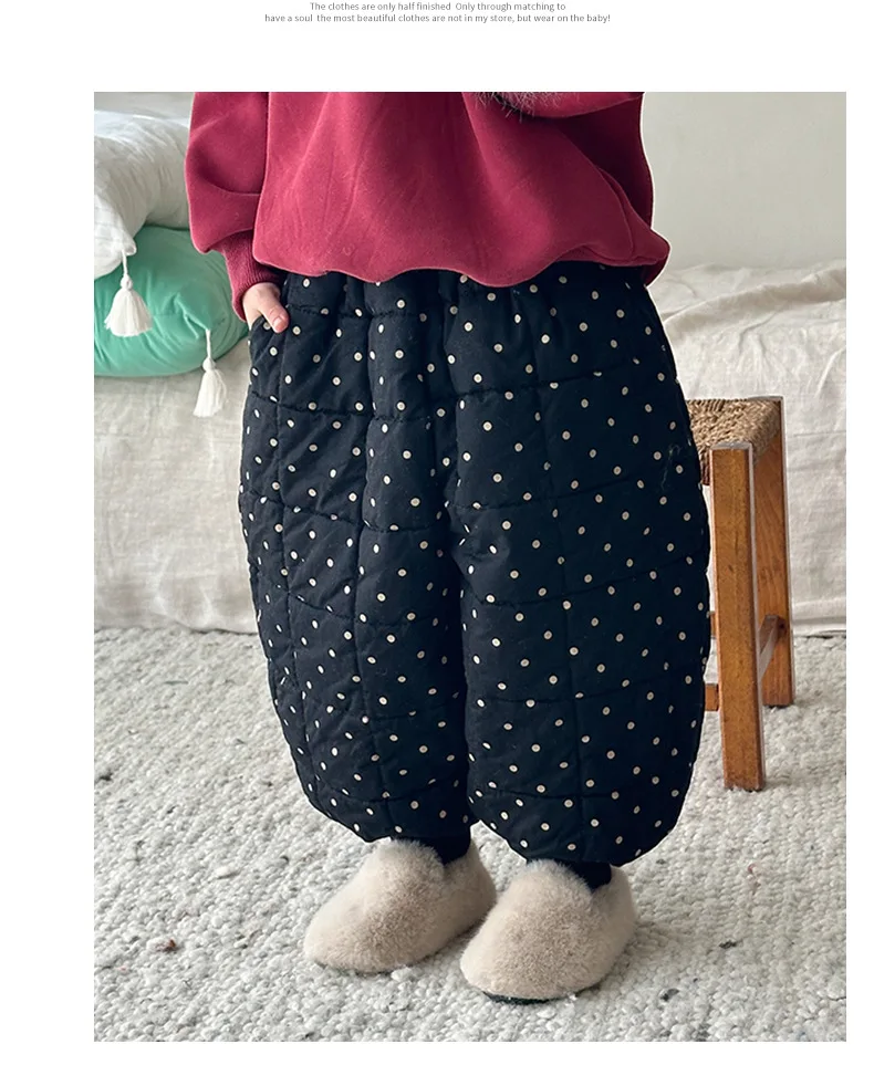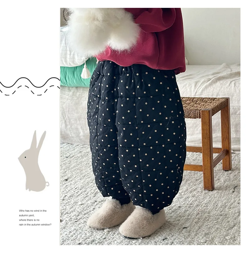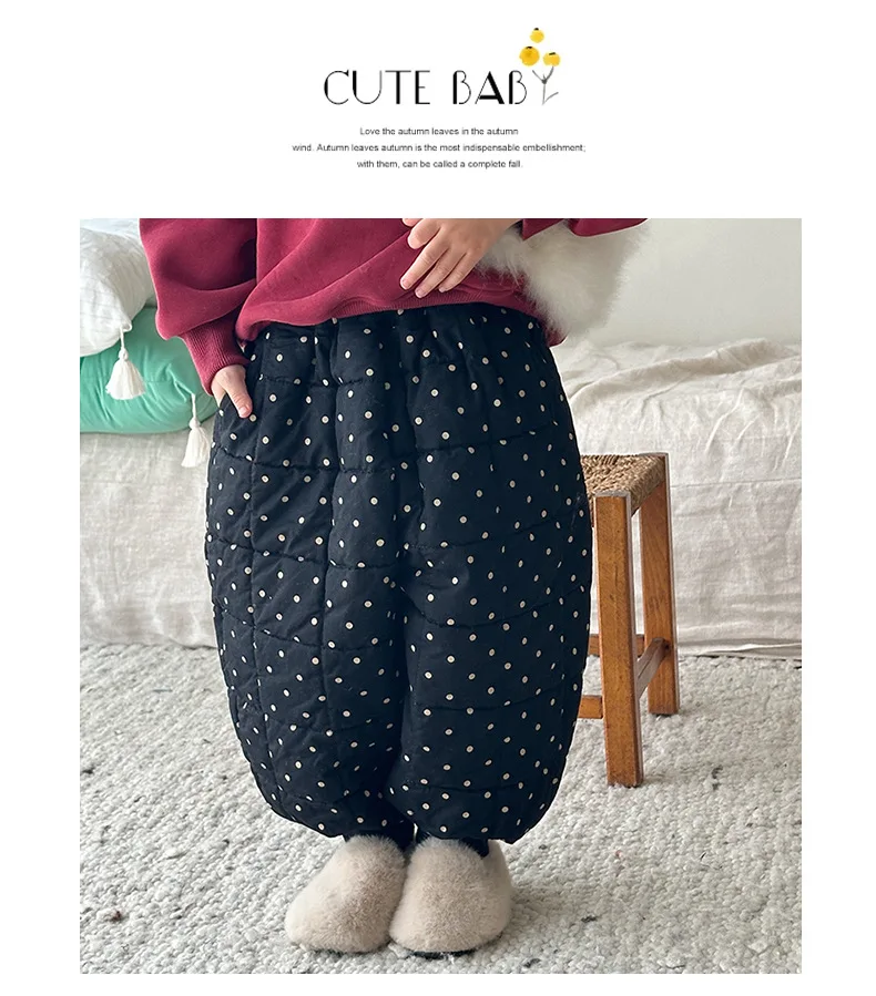 #キッズファッション #ベビー服 #水玉プリント #キルトパンツ #防寒パンツ #バルーンジョガーパンツ #韓国子供服 #冬用ボトムス