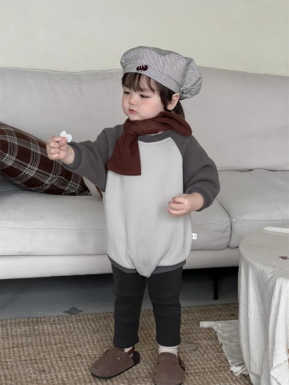 #ベビーロンパース #パッチワーク #フリースボディスーツ #長袖ロンパース #ベビー服 #暖かいロンパース #冬のコーデ