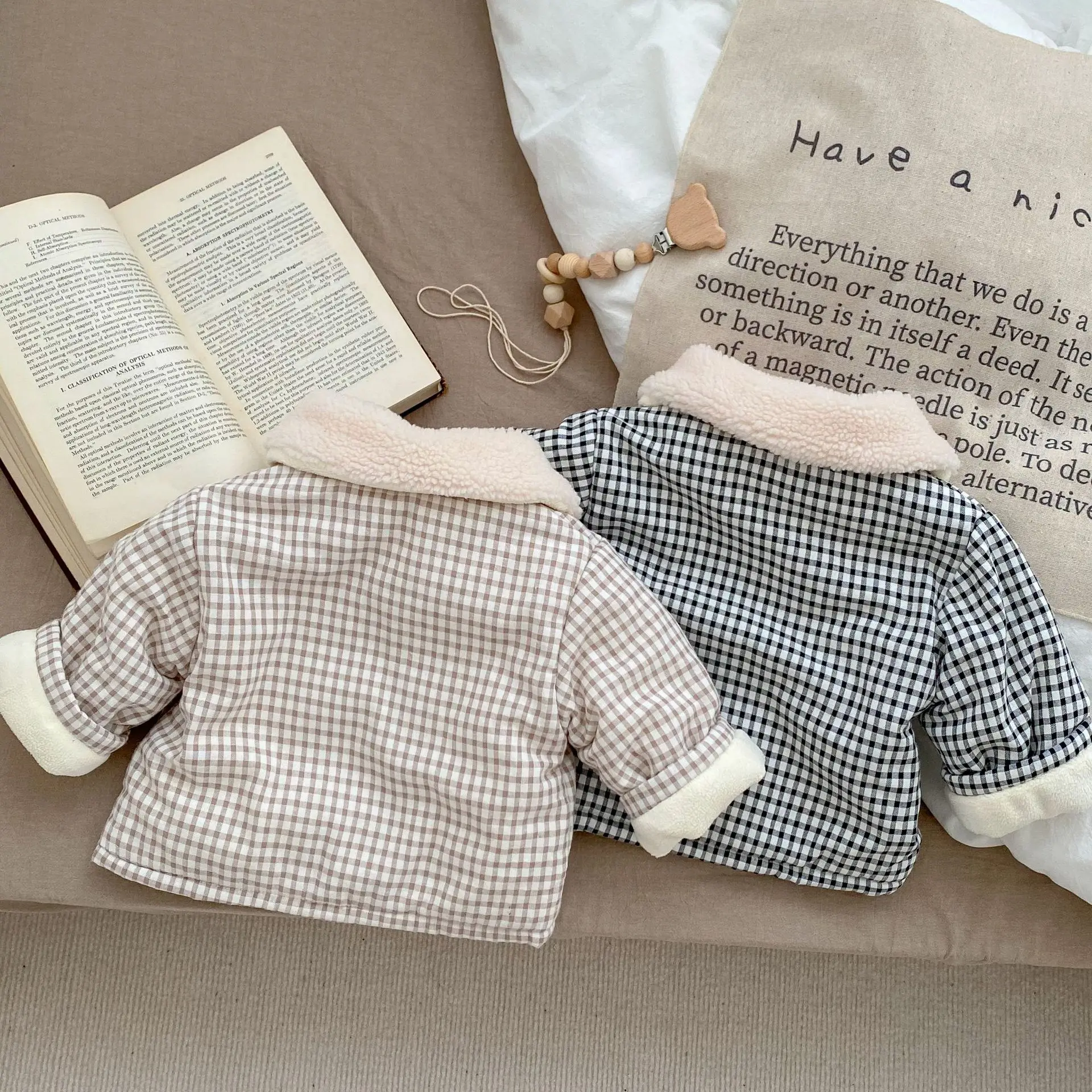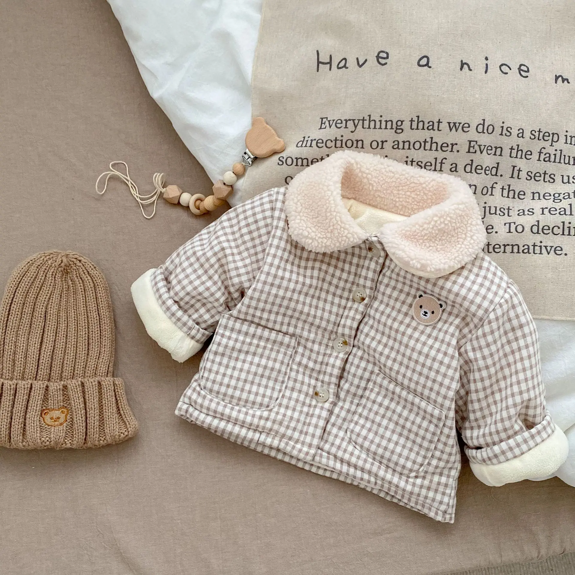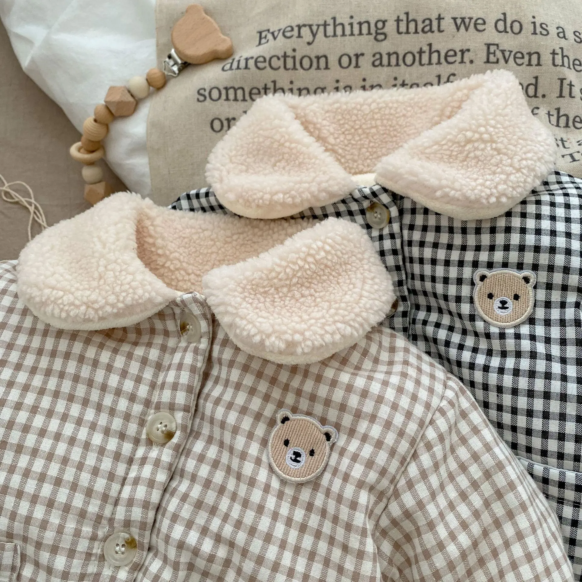 #ベビー服 #キッズファッション #チェック柄コート #くまワンポイント #裏フリース #パデッドジャケット #韓国子供服 #冬用アウター