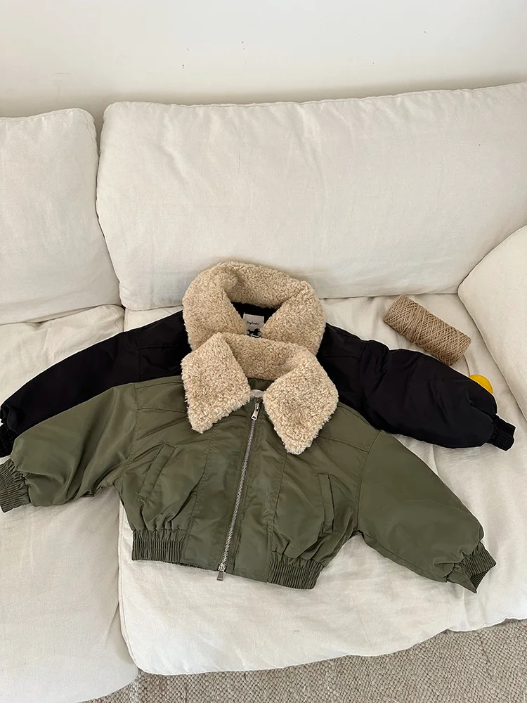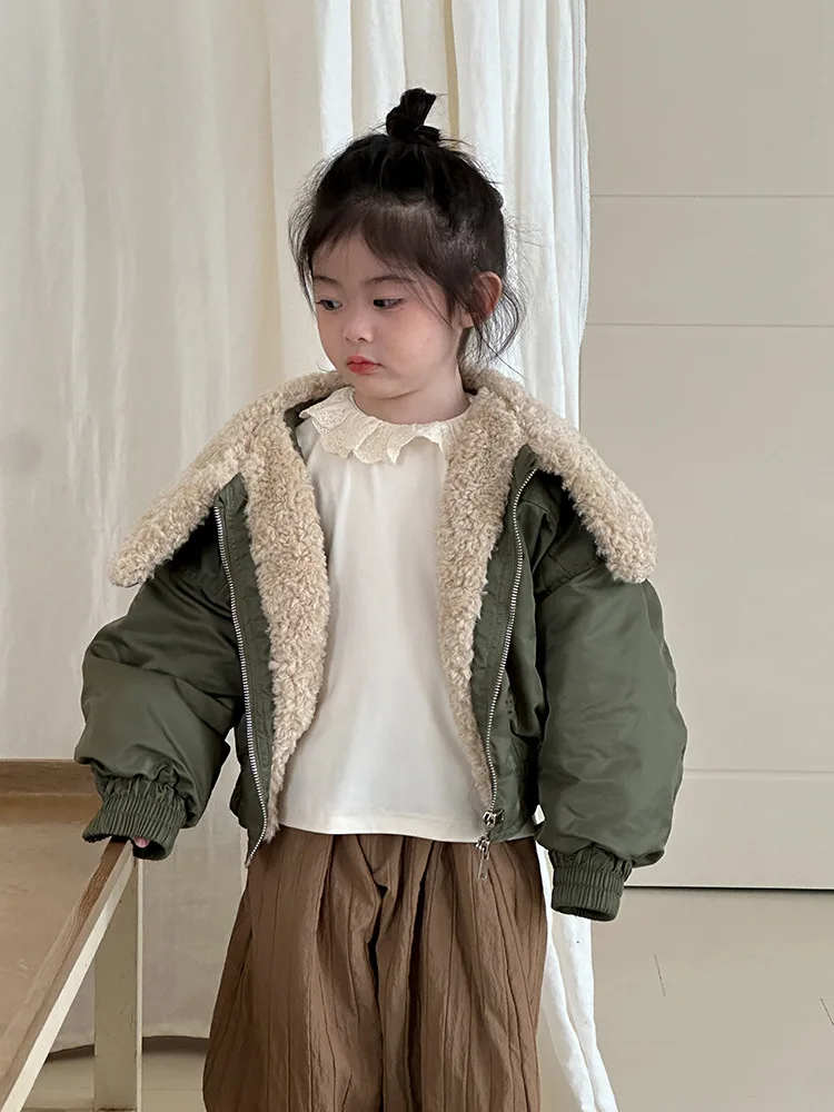 #キッズファッション #ベビー服 #MA1ブルゾン #ボアフリースジャケット #ビッグ襟アウター #韓国子供服 #冬用アウター