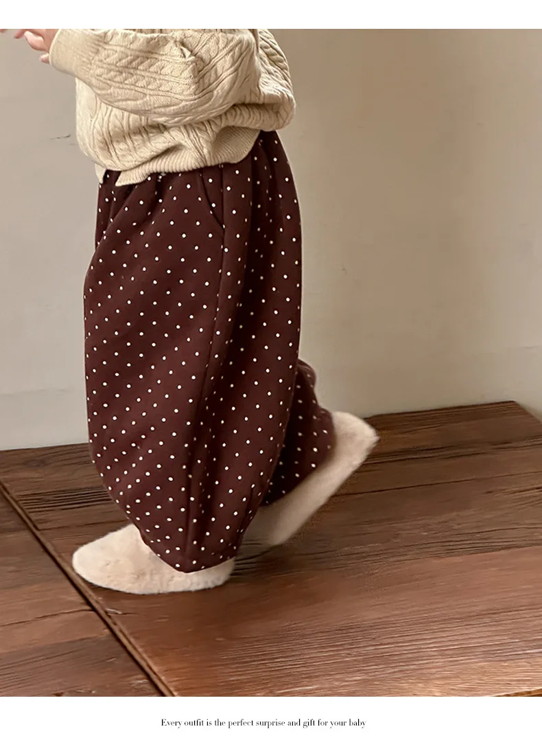 #キッズファッション #ベビー服 #水玉プリント #裏フリース #厚手ロングパンツ #韓国子供服 #冬用ボトムス
