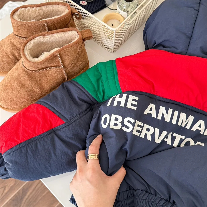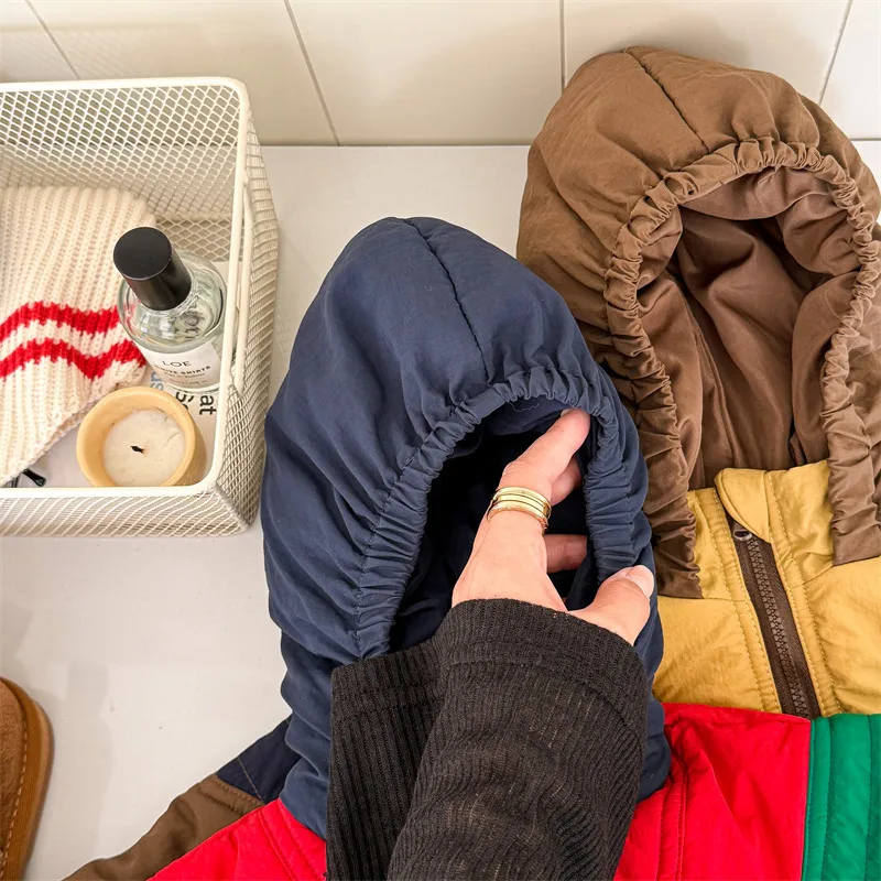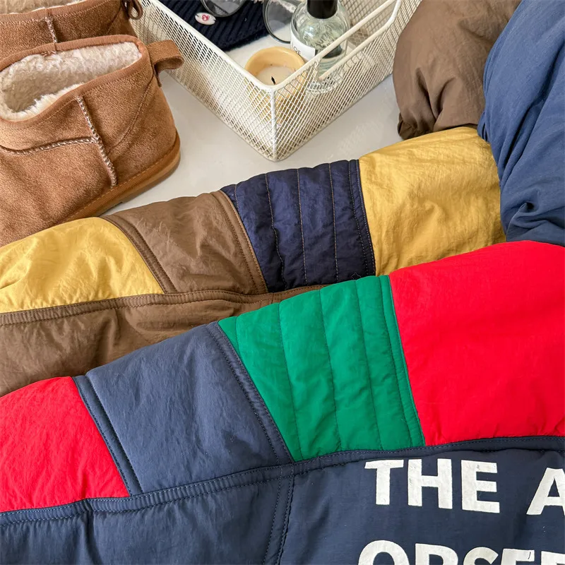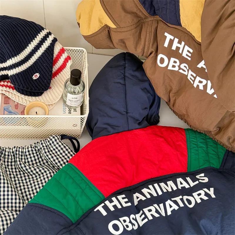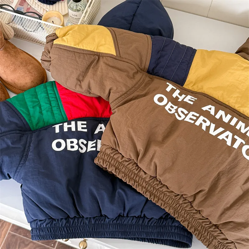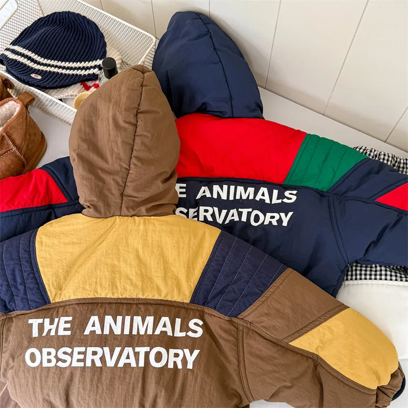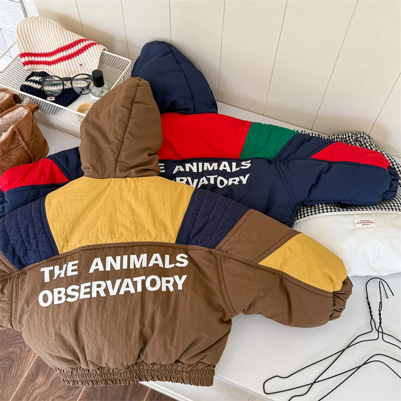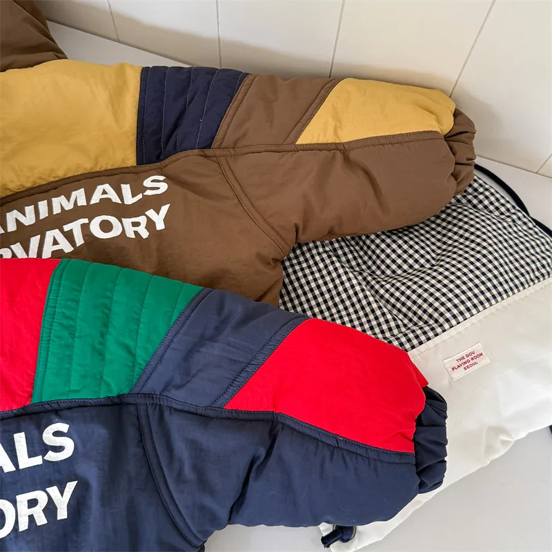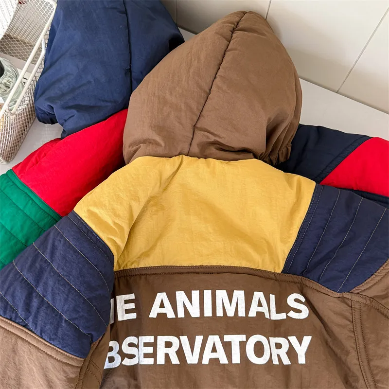 #キッズアウター #パデッドジャケット #フーディパーカー #パッチワーク #冬のコート #カジュアルキッズ #子供服
