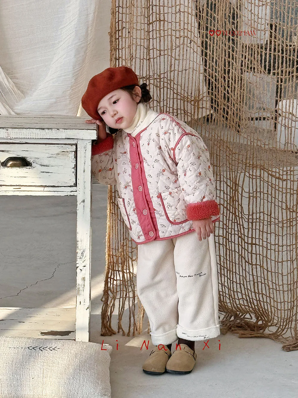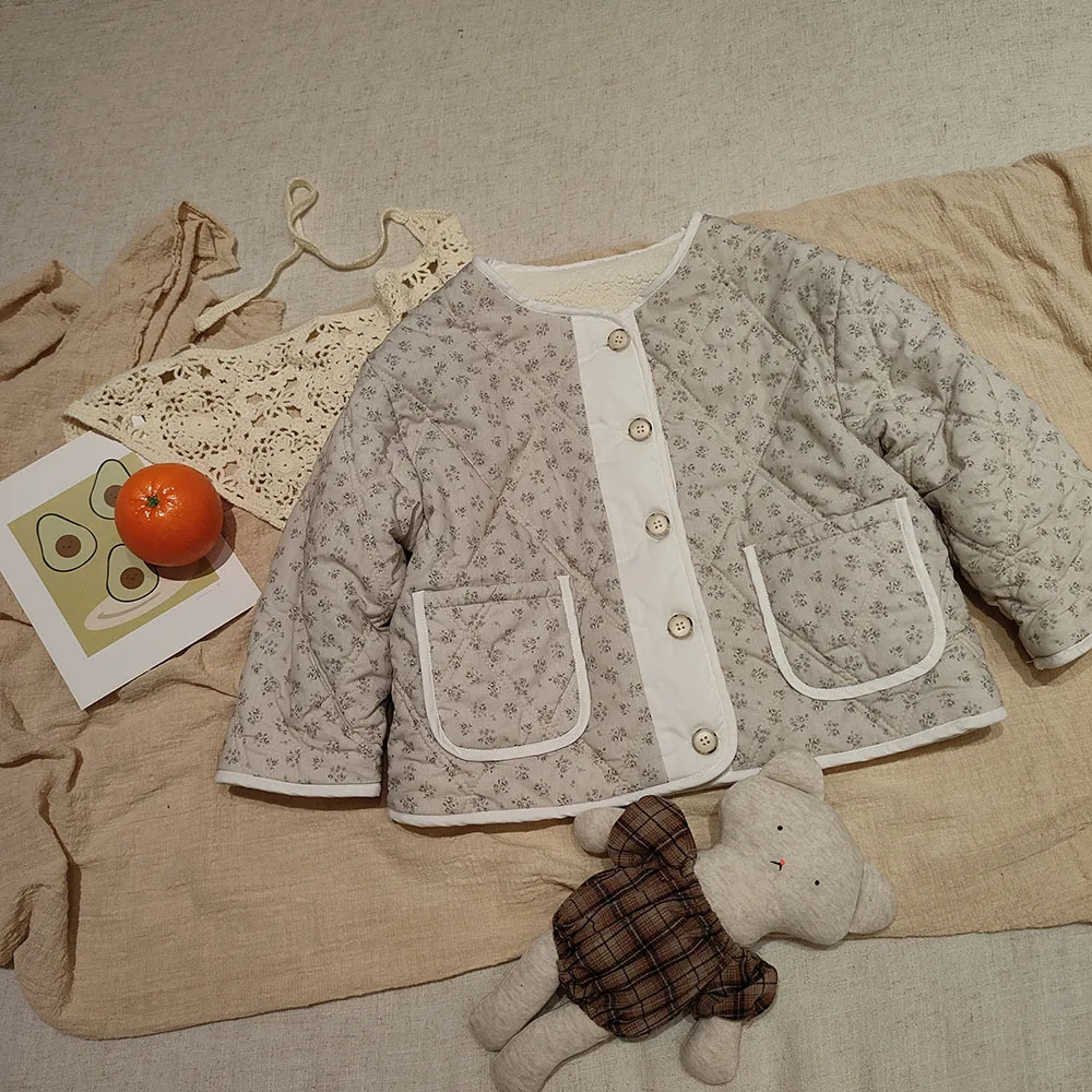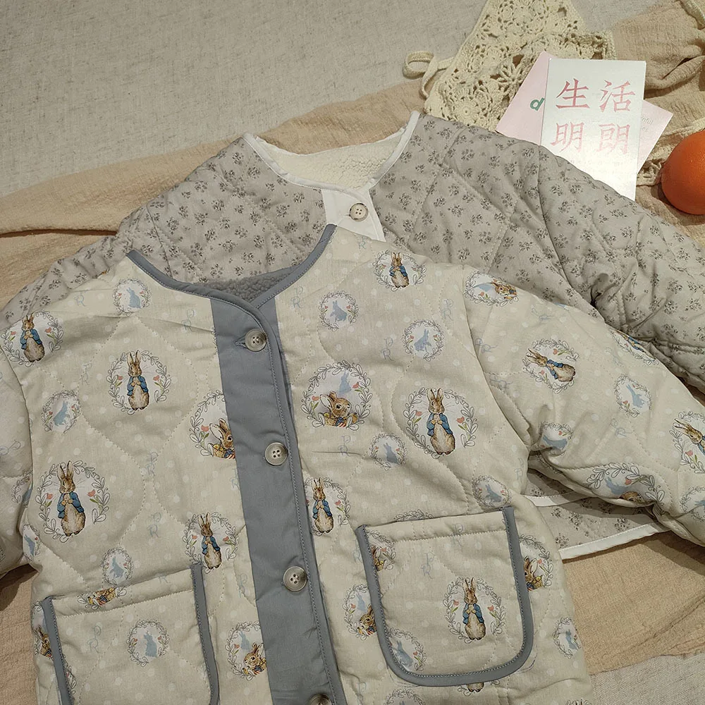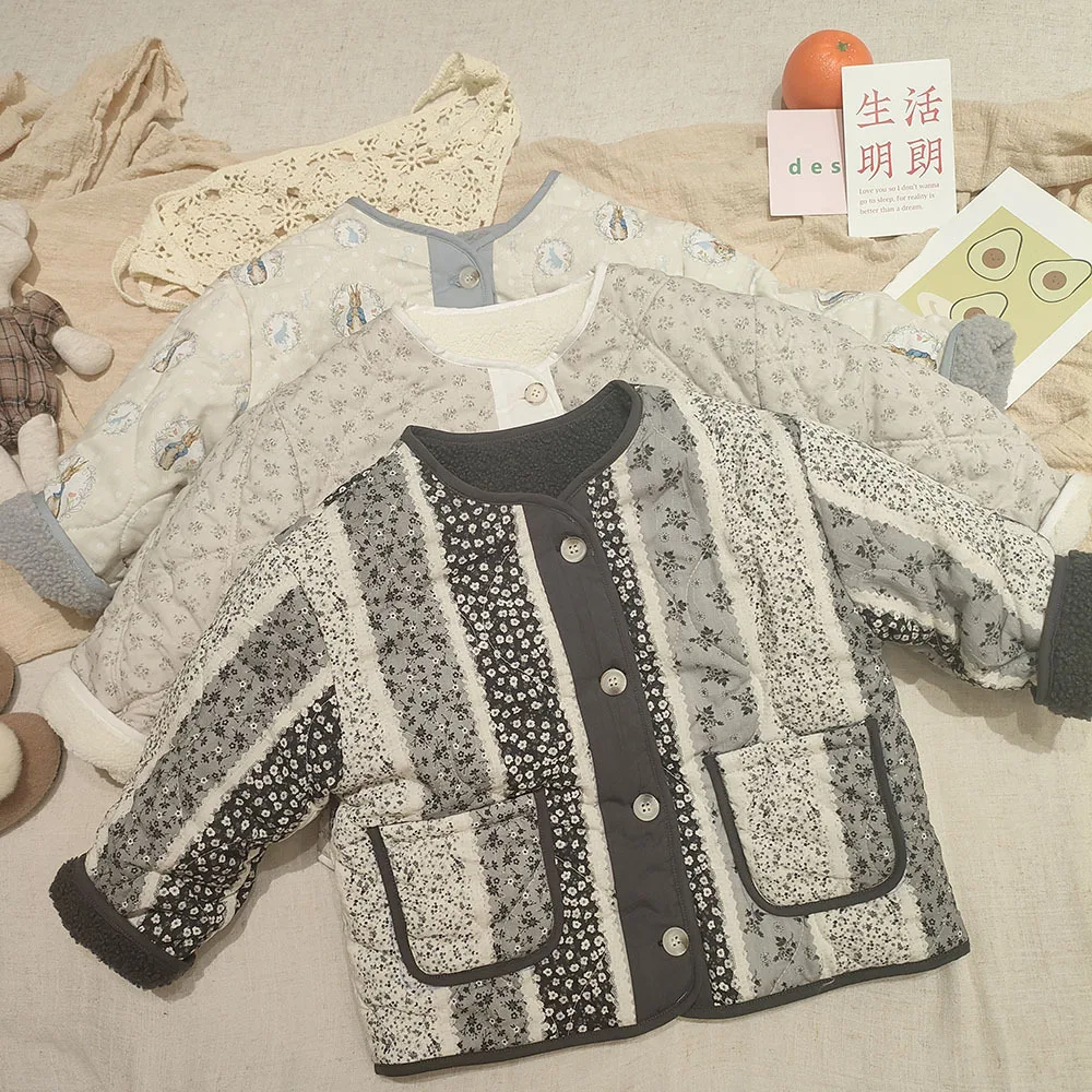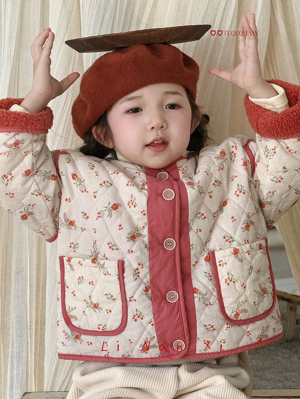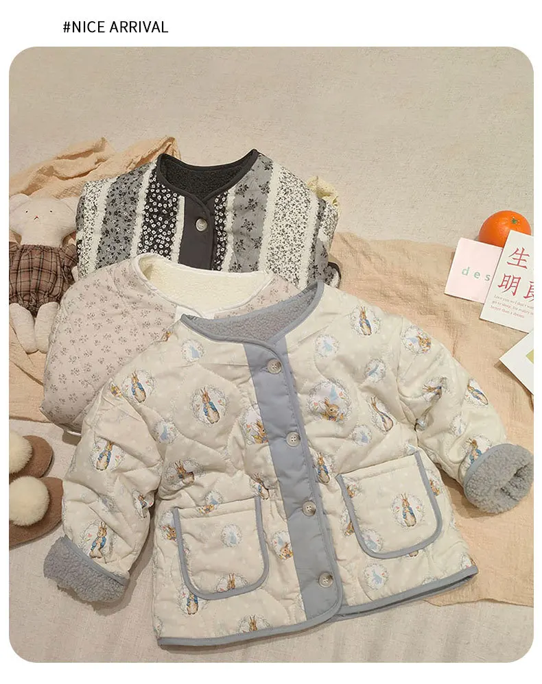 #キッズファッション #ベビー服 #プリント柄ジャケット #キルティングブルゾン #裏フリース #ノーカラージャケット #韓国子供服 #冬用アウター