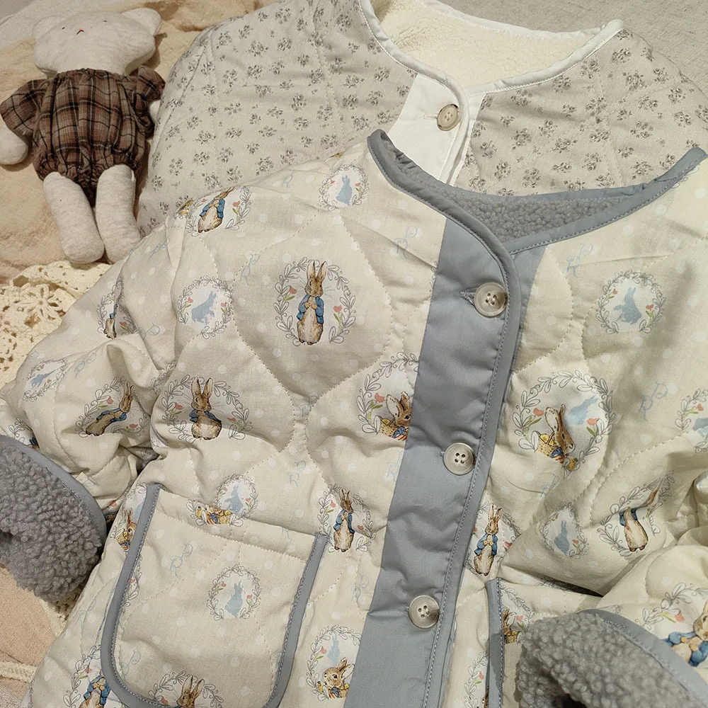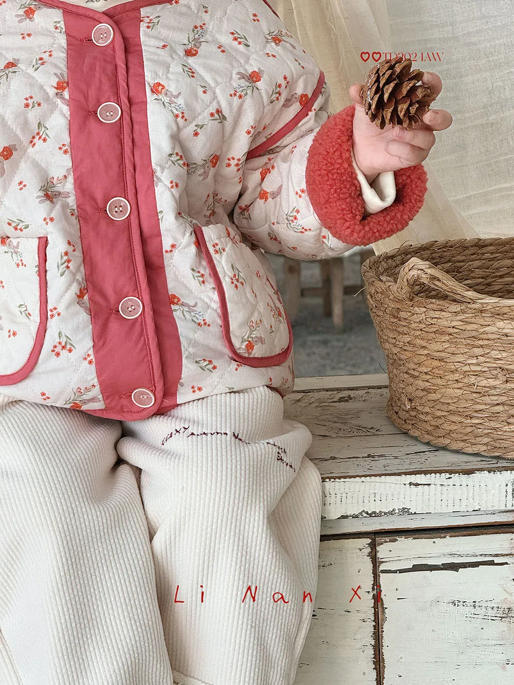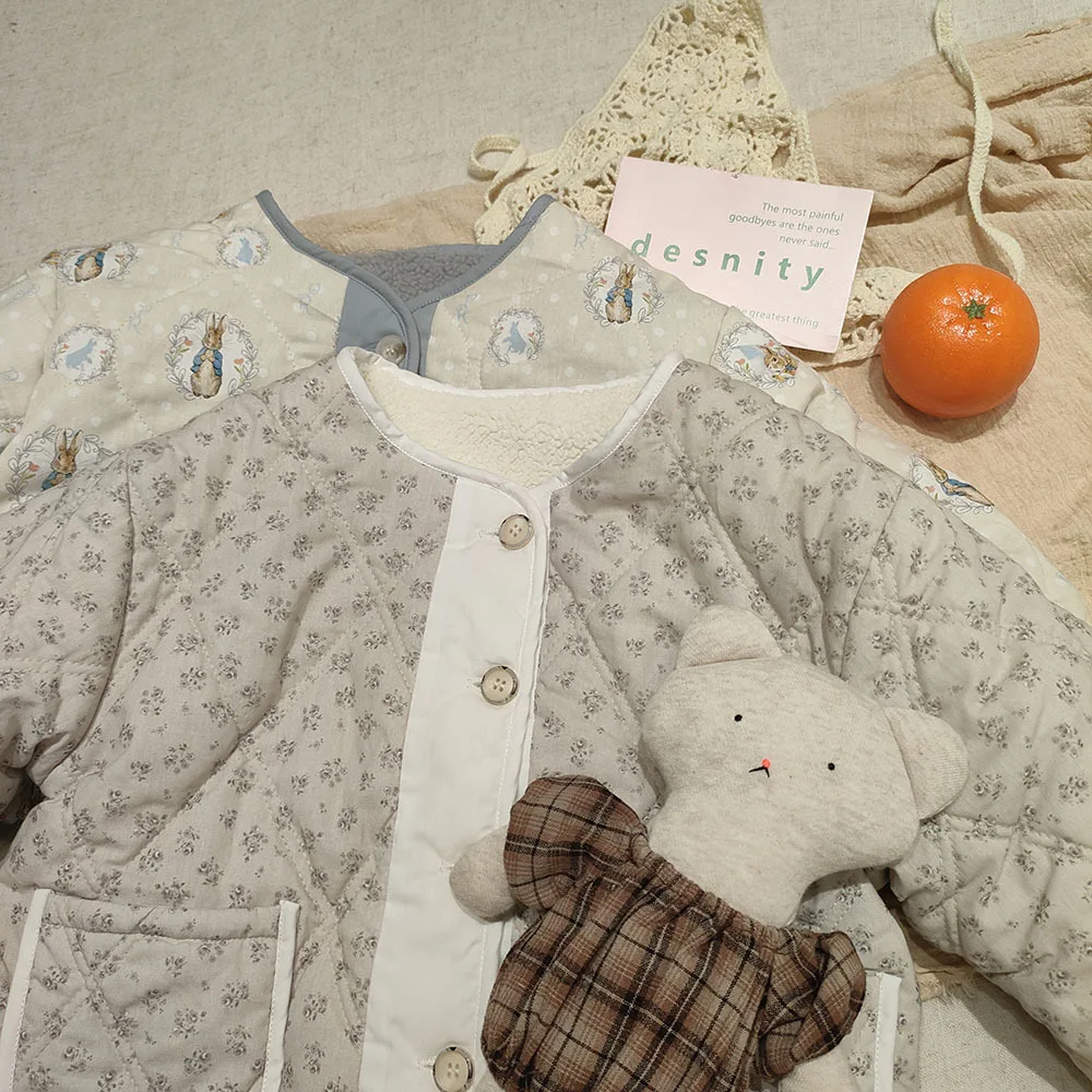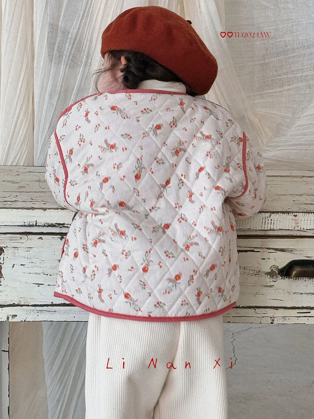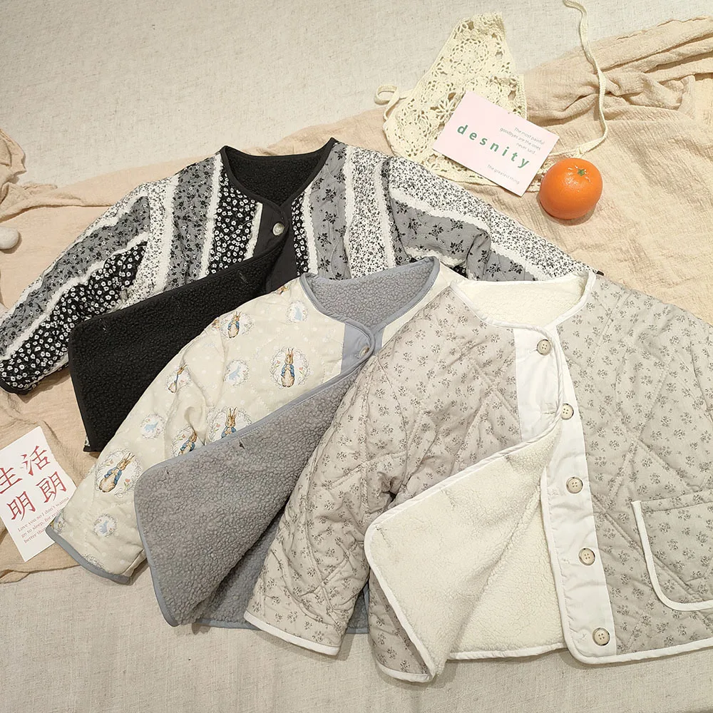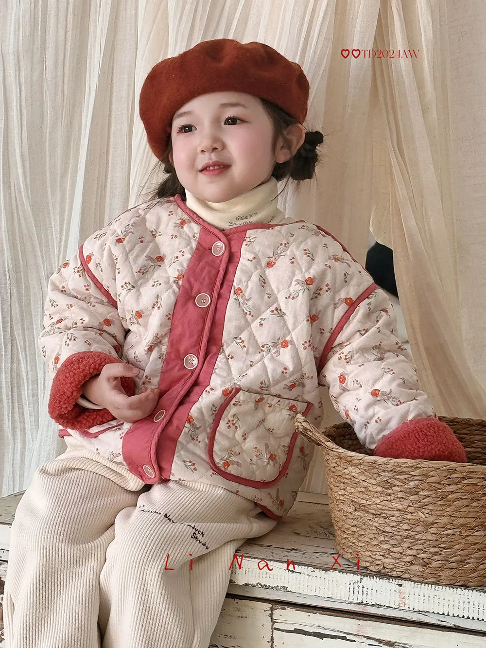 #キッズファッション #ベビー服 #プリント柄ジャケット #キルティングブルゾン #裏フリース #ノーカラージャケット #韓国子供服 #冬用アウター