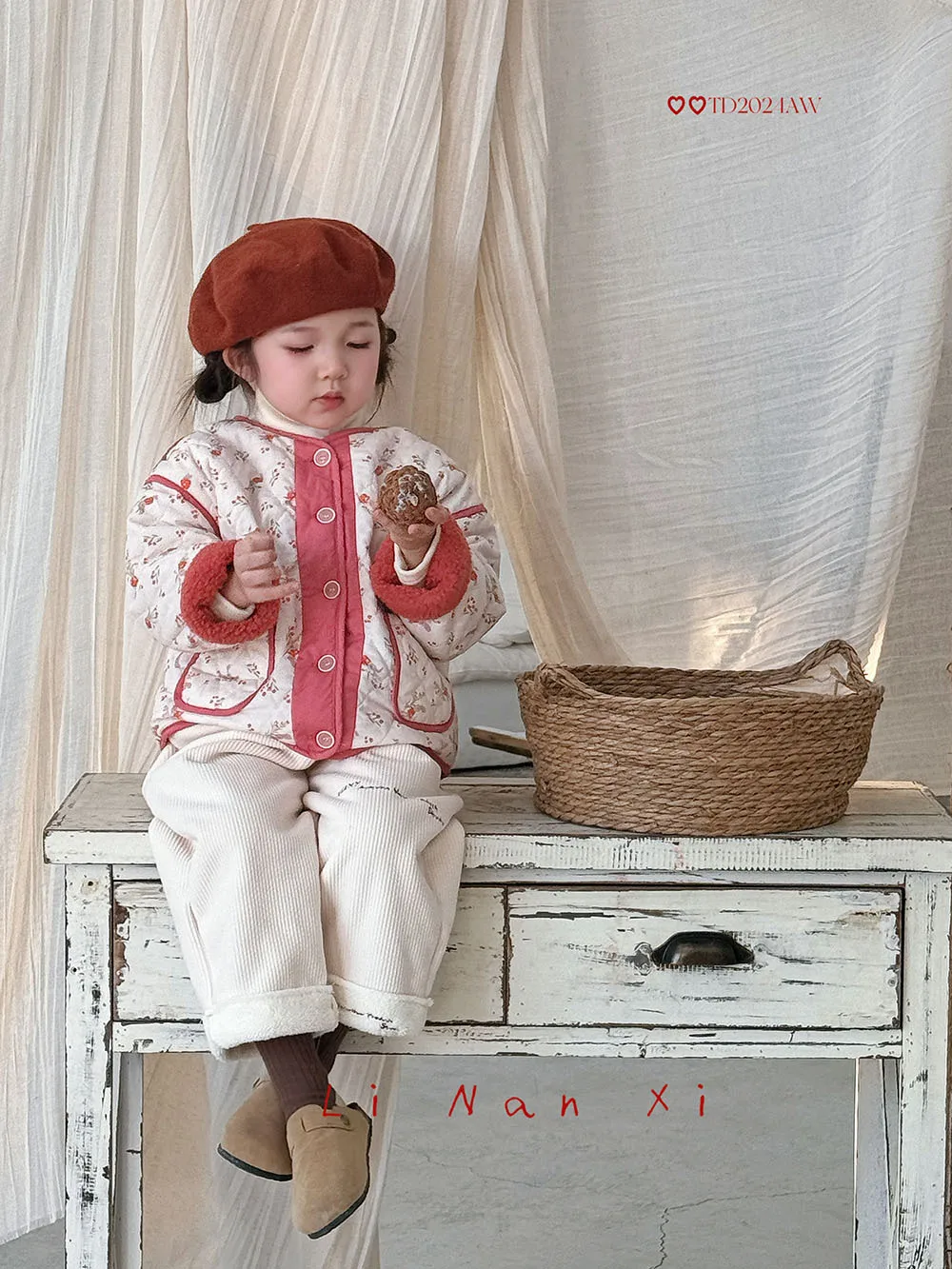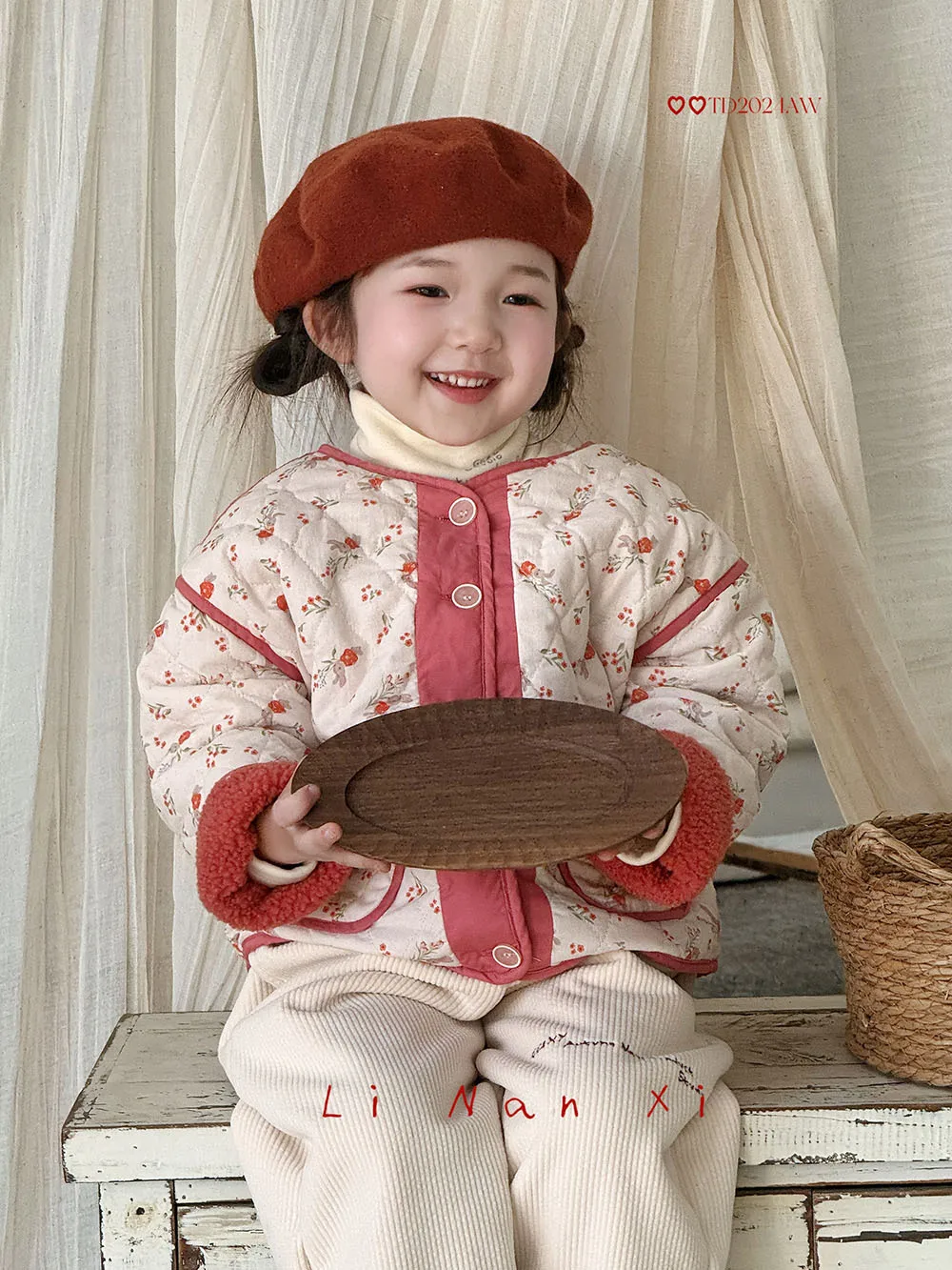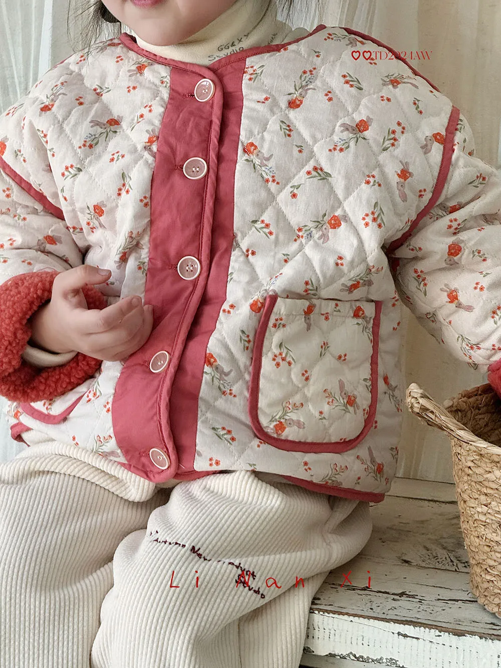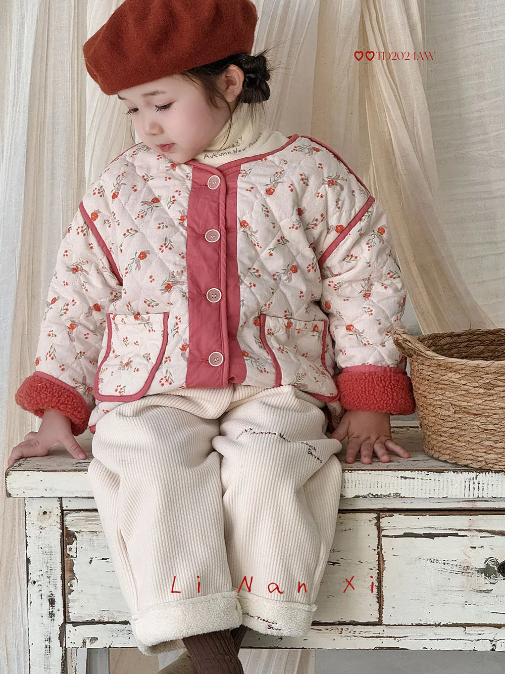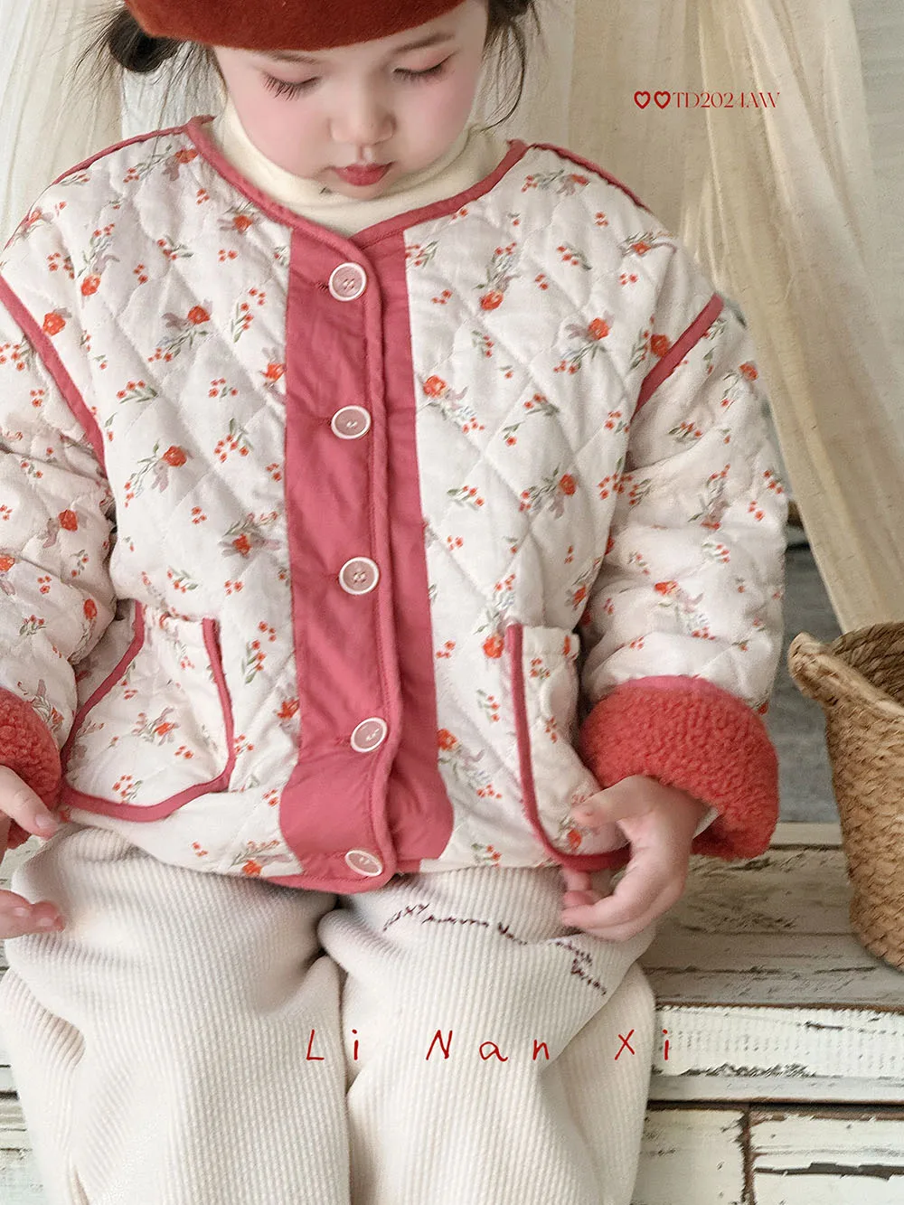 #キッズファッション #ベビー服 #プリント柄ジャケット #キルティングブルゾン #裏フリース #ノーカラージャケット #韓国子供服 #冬用アウター