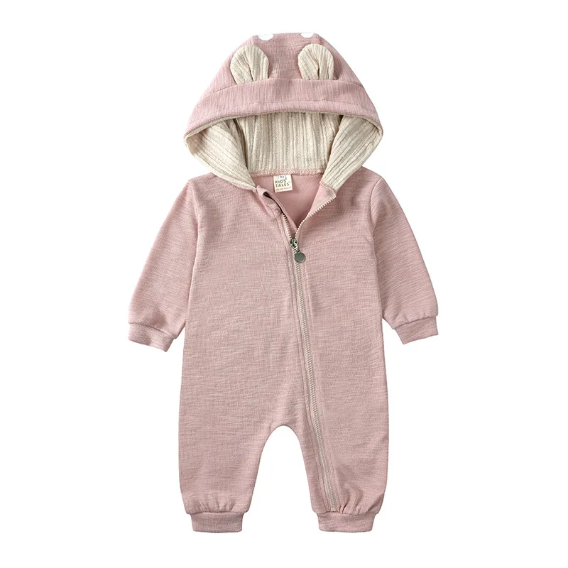 鹿の耳が可愛いデザインのベビージャンプスーツです。フーディ付きで、寒い季節にも暖かさを保つ一着。ジップアップスタイルで着脱が簡単で、赤ちゃんをスムーズにお着替えさせることができます。柔らかな素材を使用し、赤ちゃんの肌に優しい着心地を実現。全身をしっかり包み込むデザインで、動きやすさも考慮されています。お出かけやお家でのリラックスタイムにぴったりな、愛らしいコスチュームです。