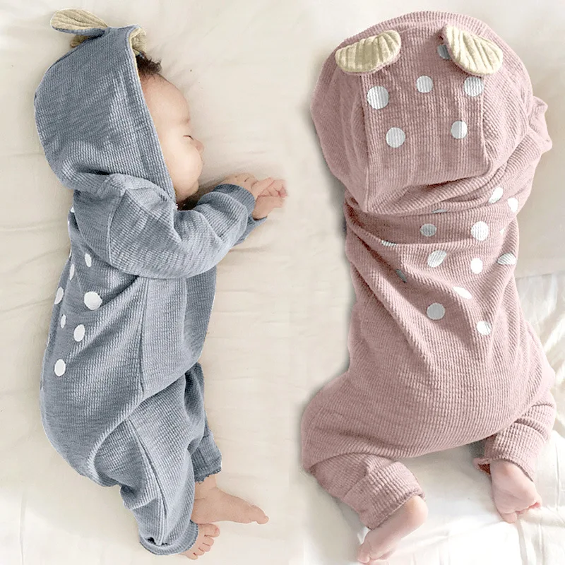 ベビージャンプスーツ 鹿ディア耳付きフーディジップアップコスチュームロンパース【mh0008800】