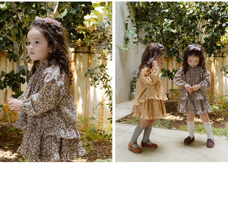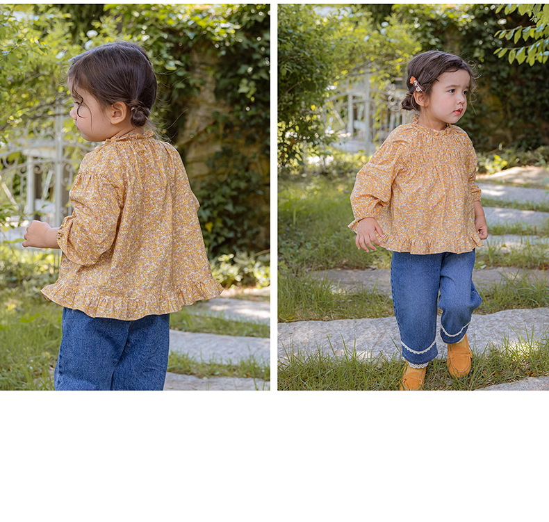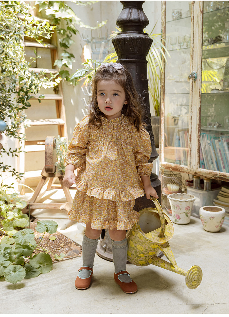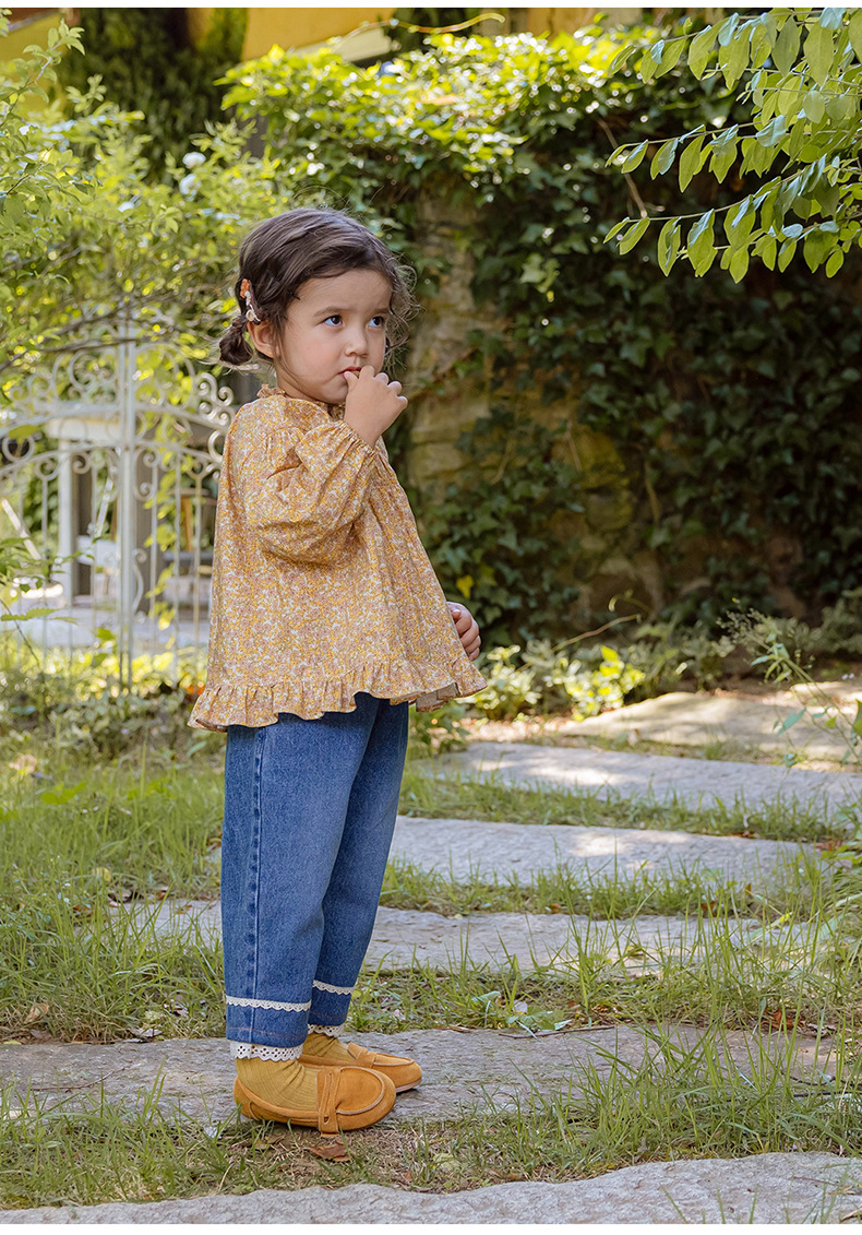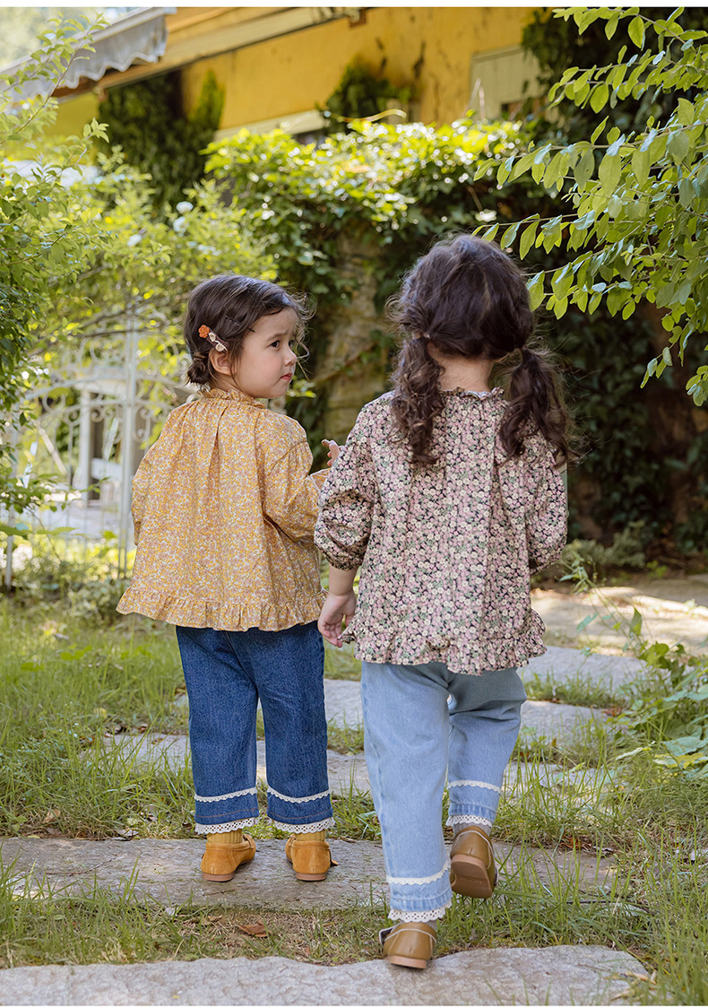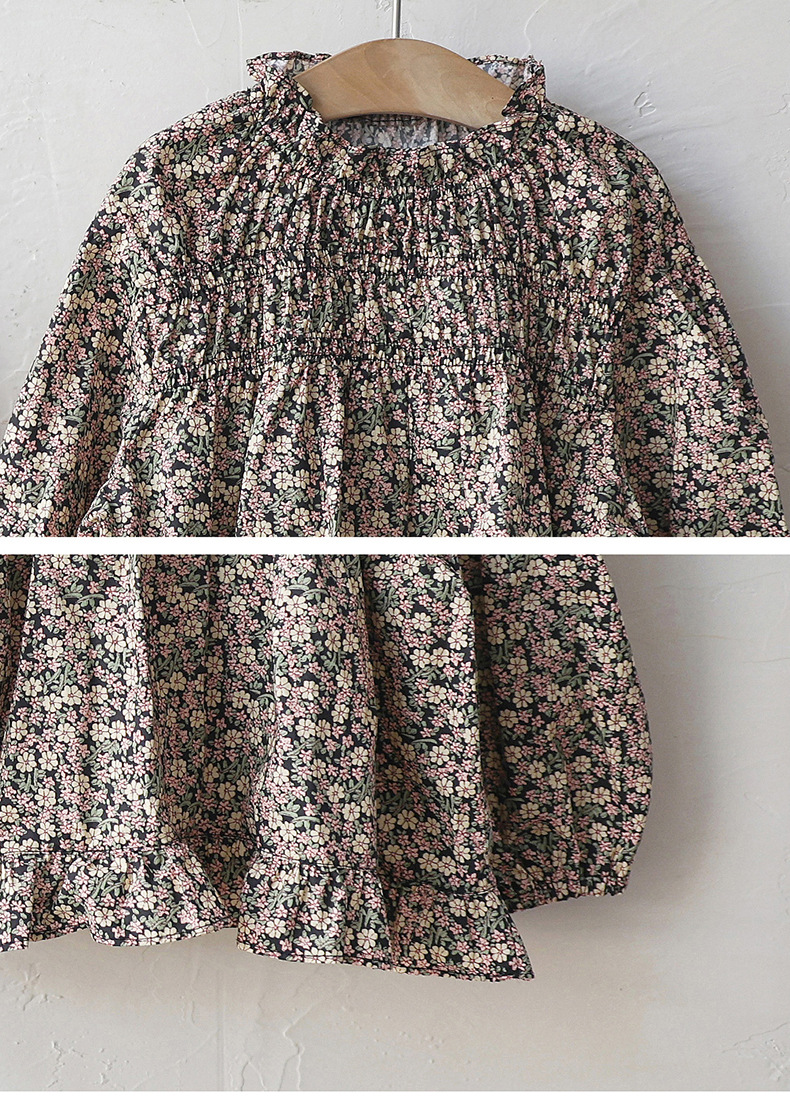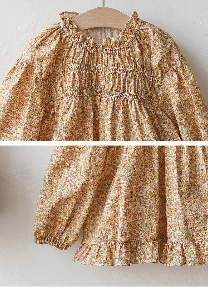 キッズトップス フラワープリントフリル長袖チュニックブラウス【mh0009068】