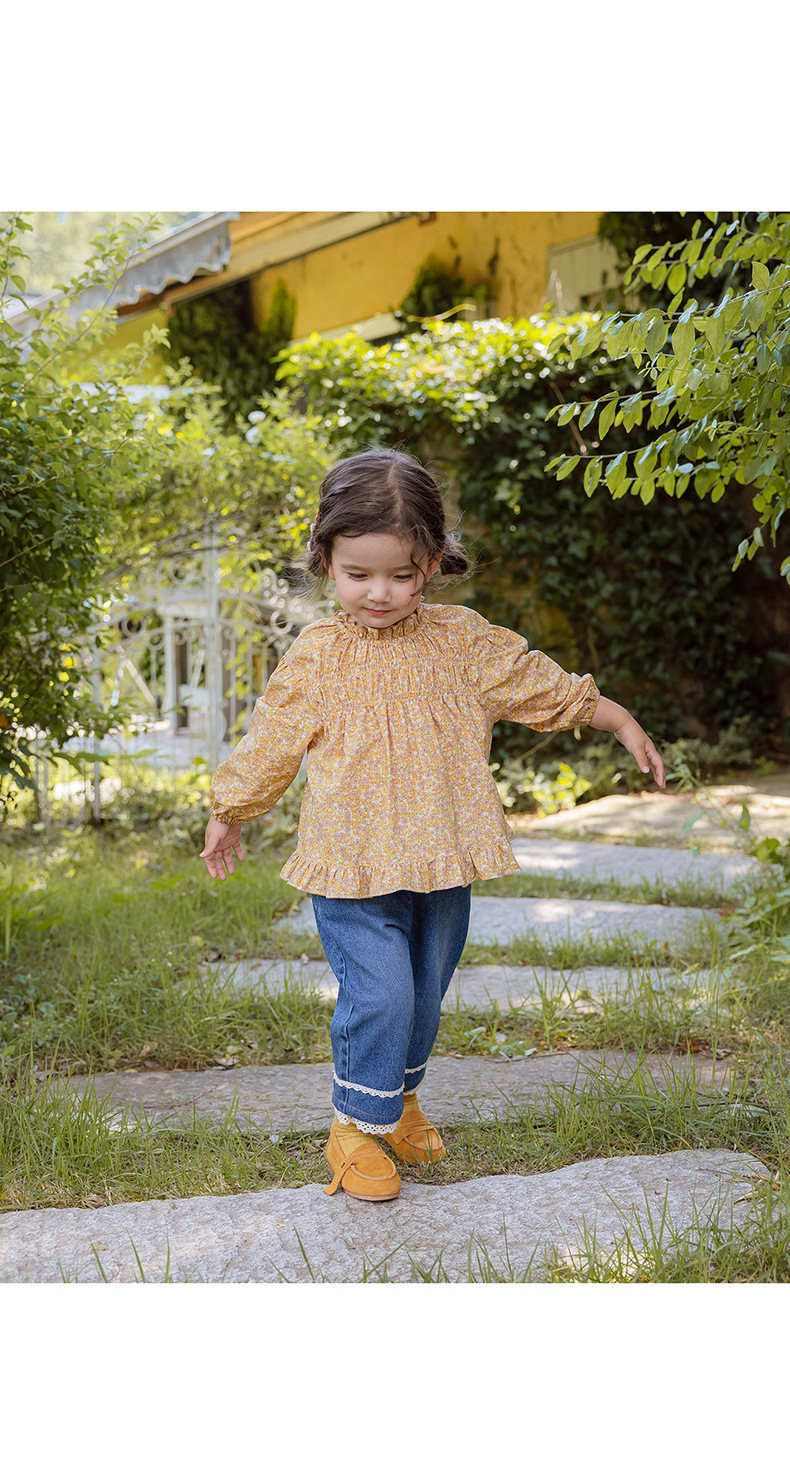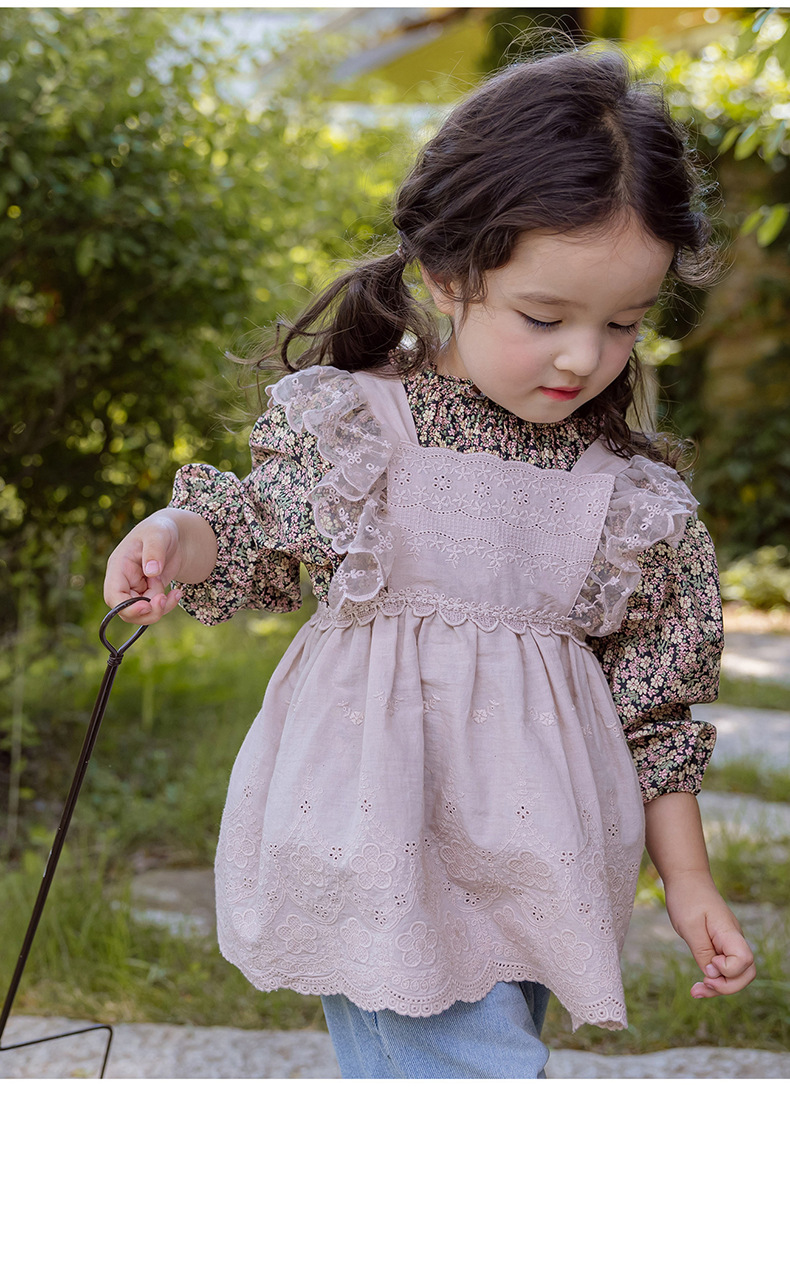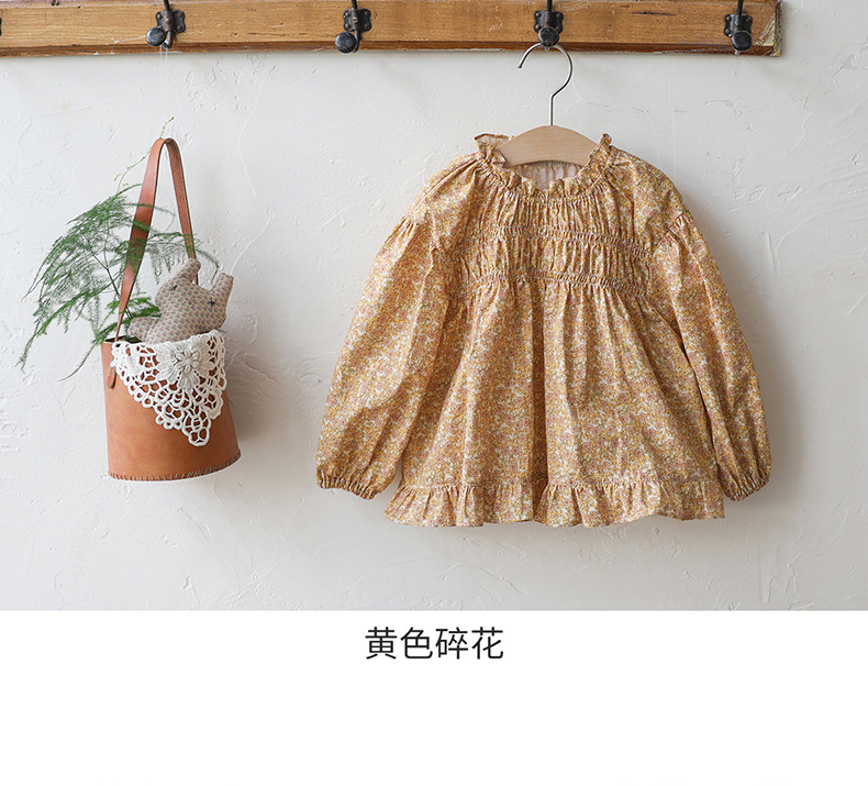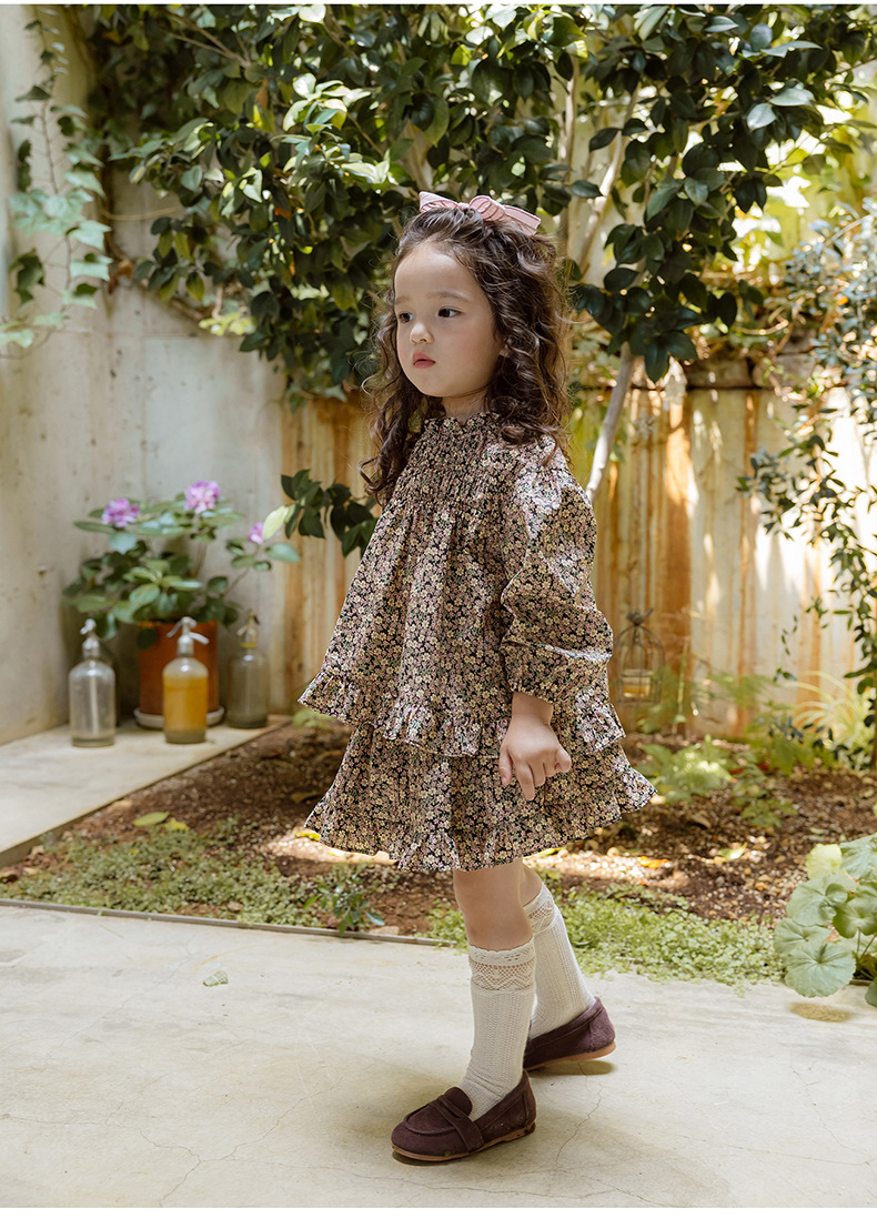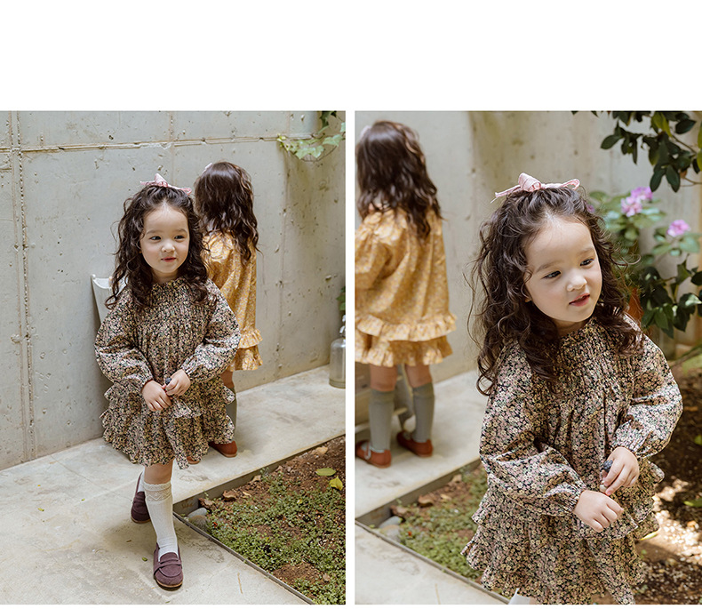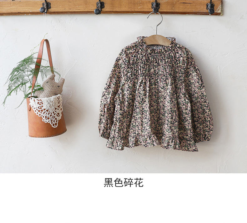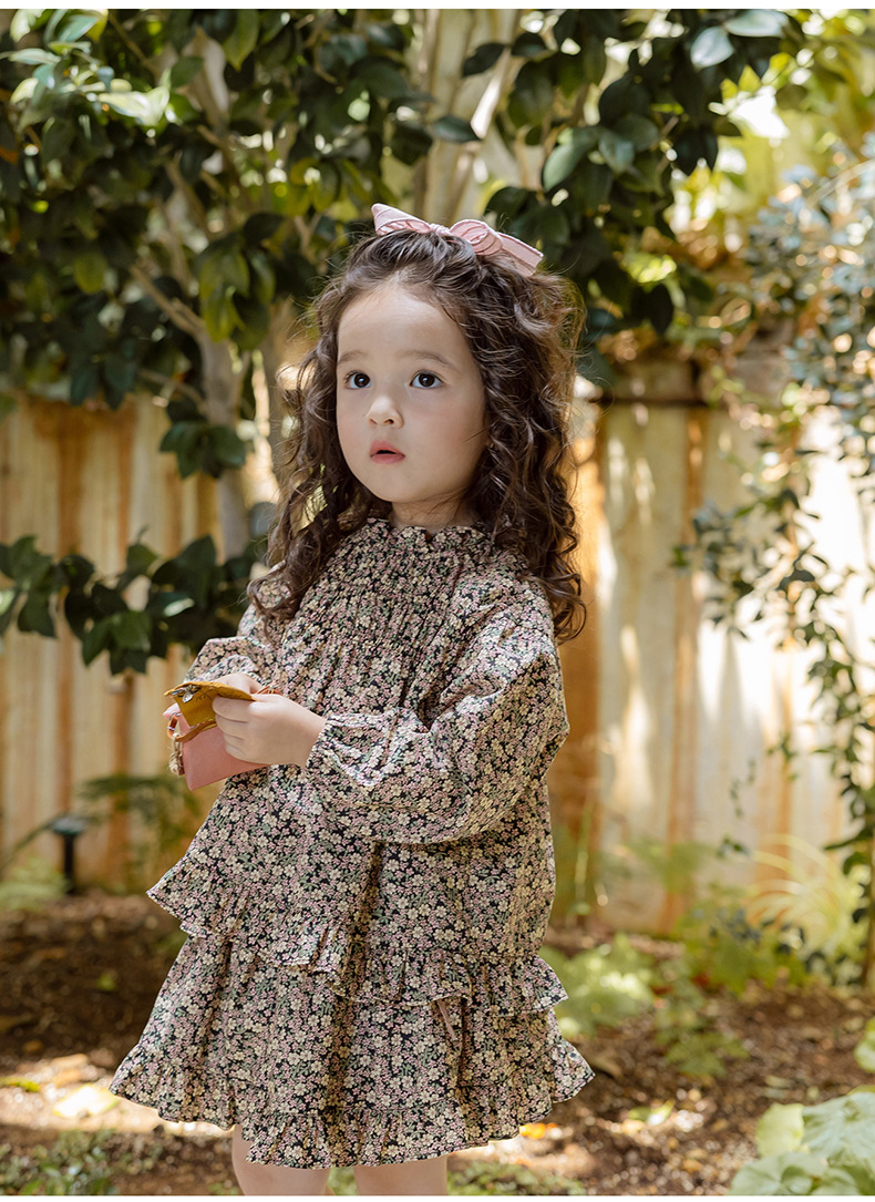 キッズトップス フラワープリントフリル長袖チュニックブラウス【mh0009068】