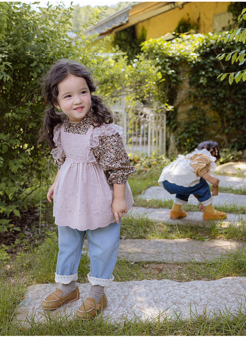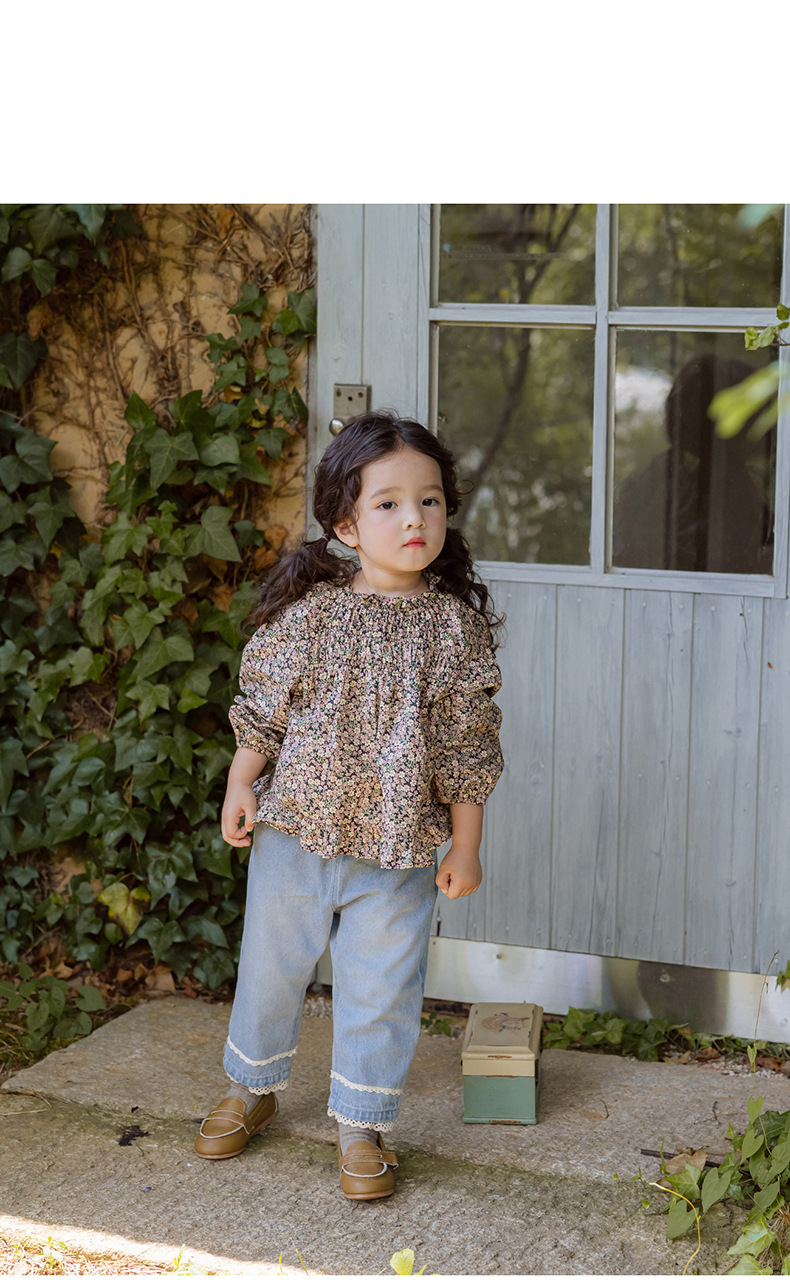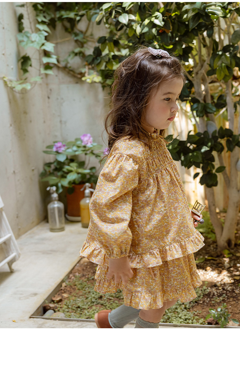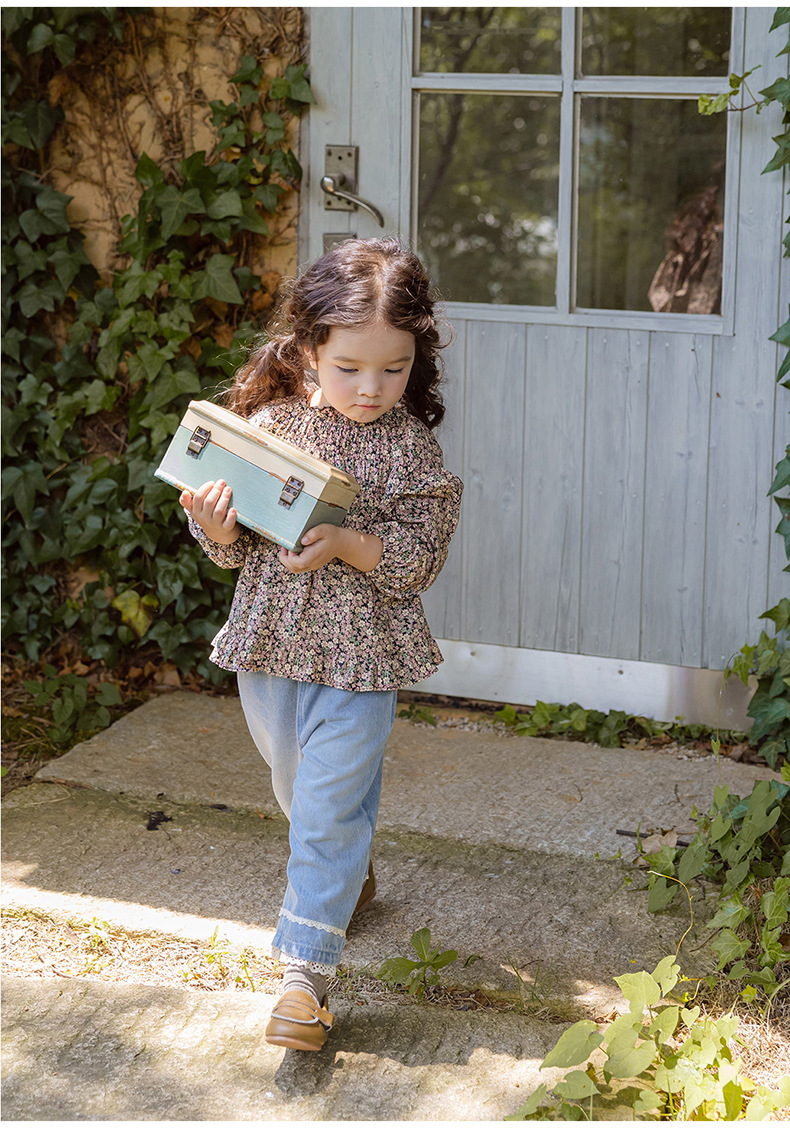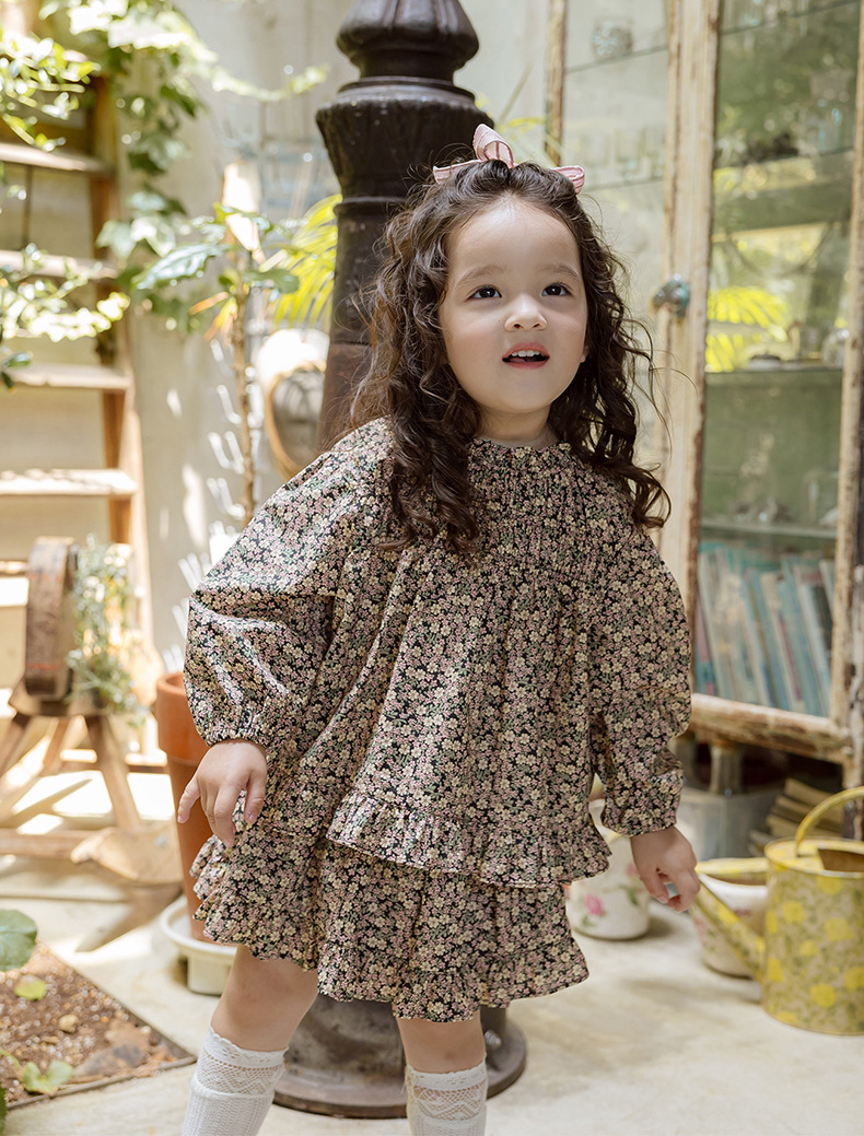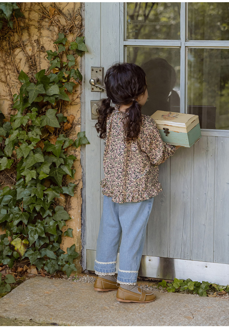 キッズトップス フラワープリントフリル長袖チュニックブラウス【mh0009068】