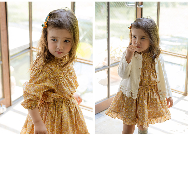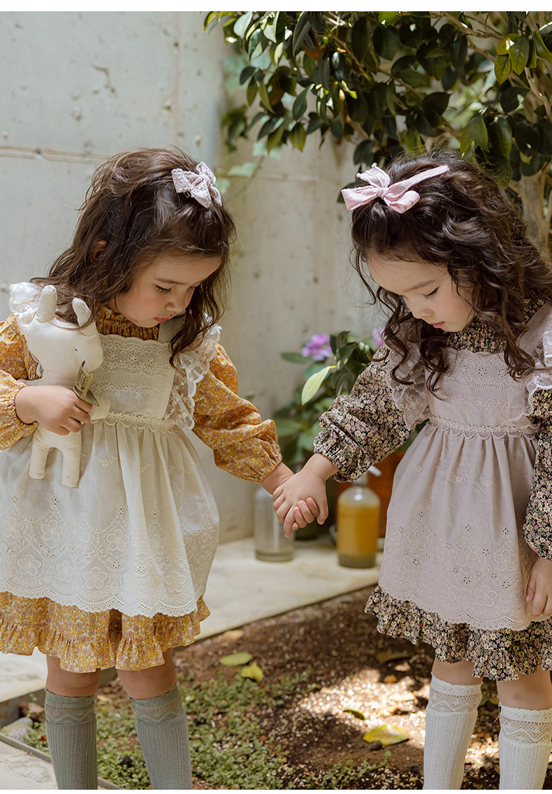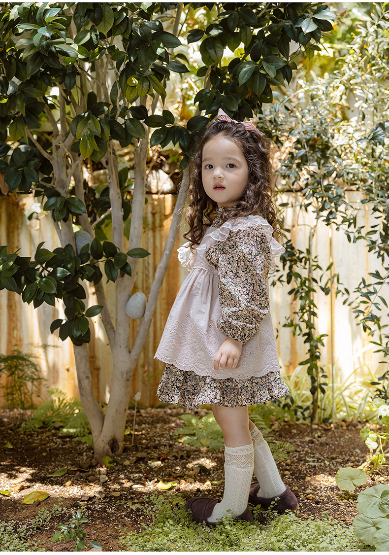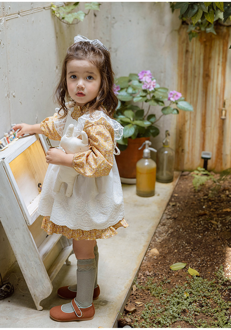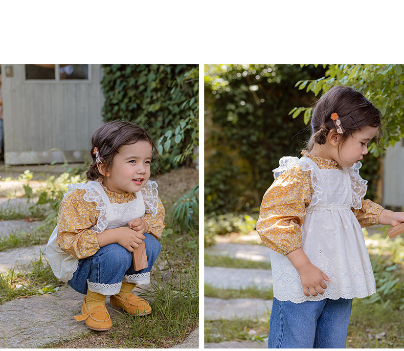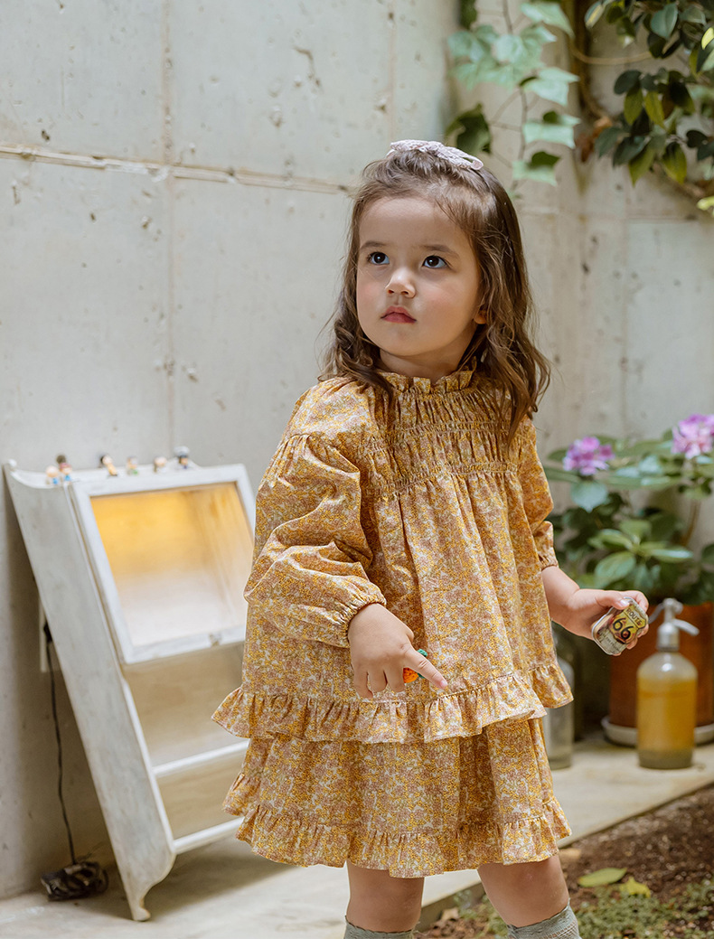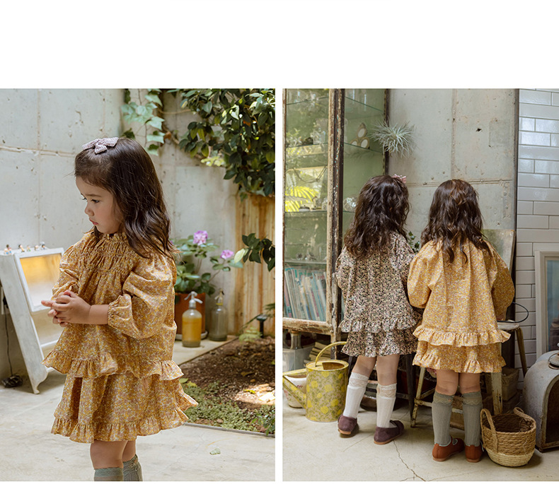 キッズトップス フラワープリントフリル長袖チュニックブラウス【mh0009068】