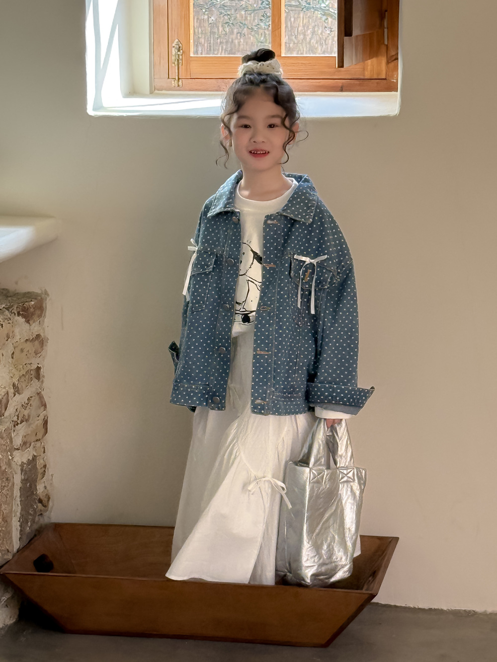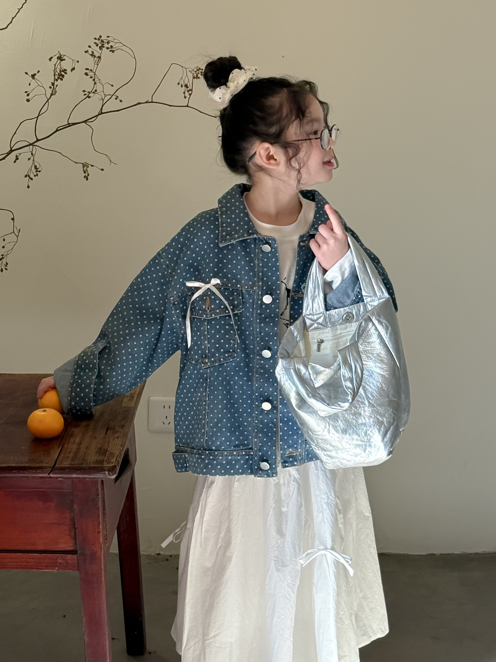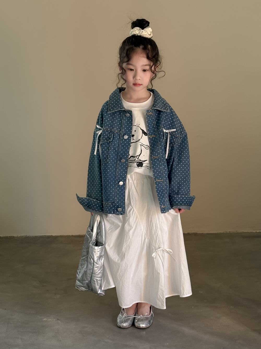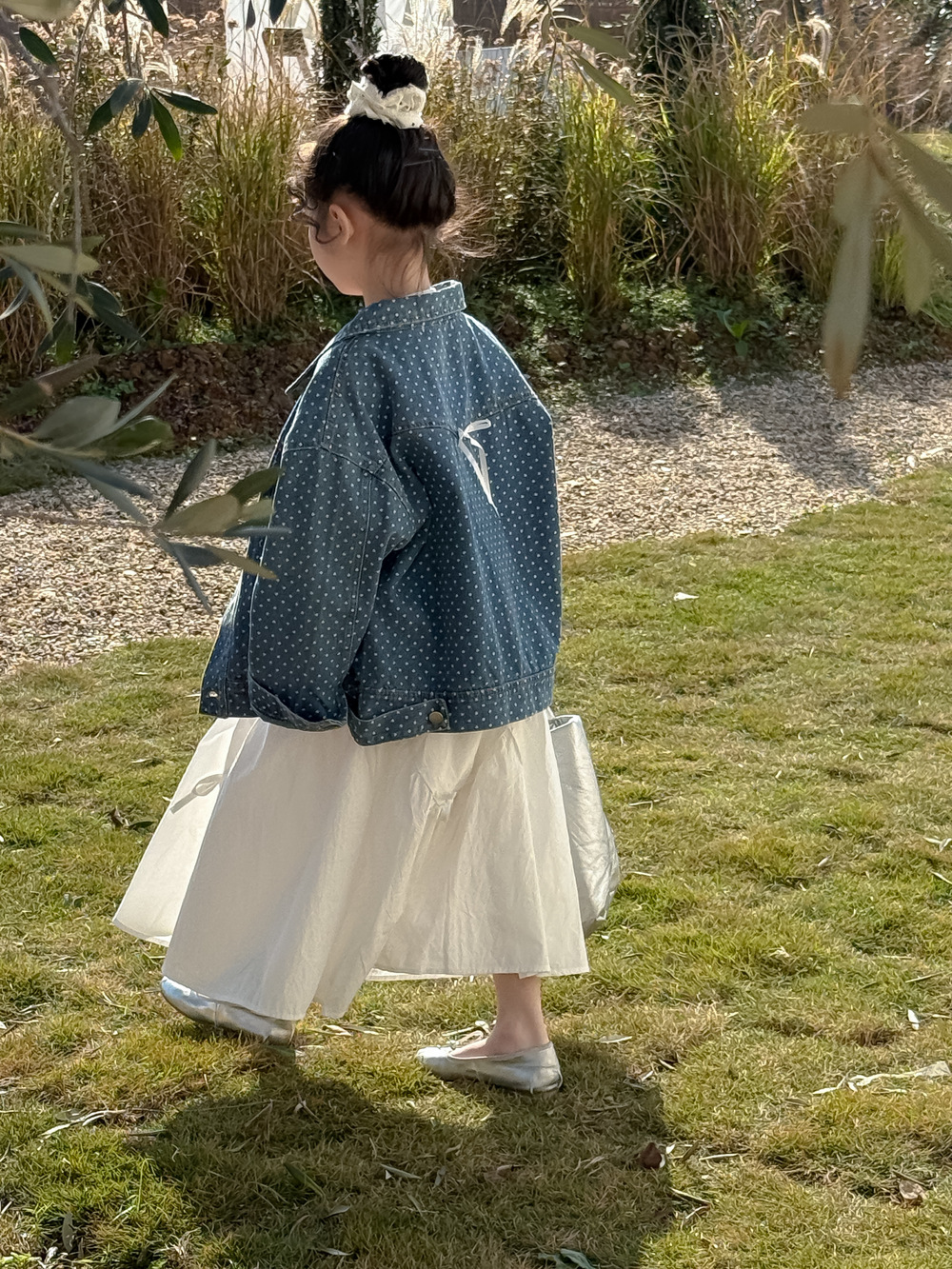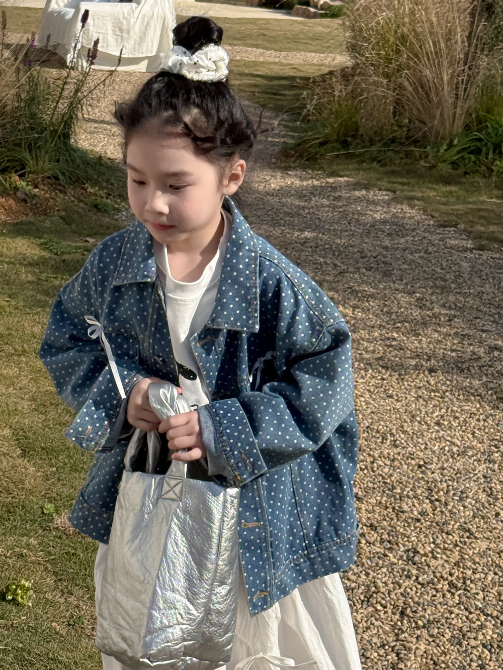 #キッズジャケット #デニムシャツ #水玉ドット #リボン #カジュアル #ガーリーコーデ #おしゃれ #普段使い