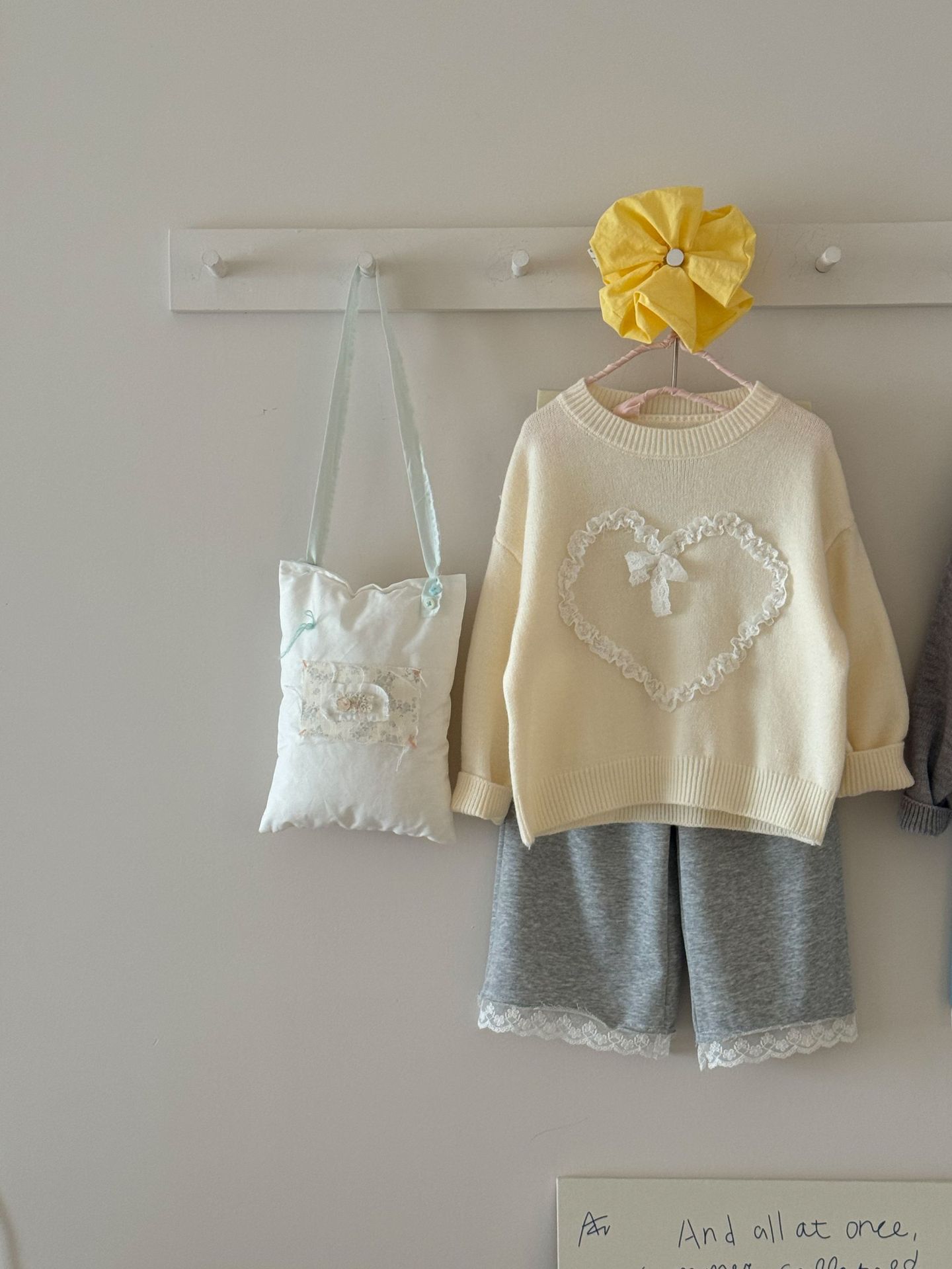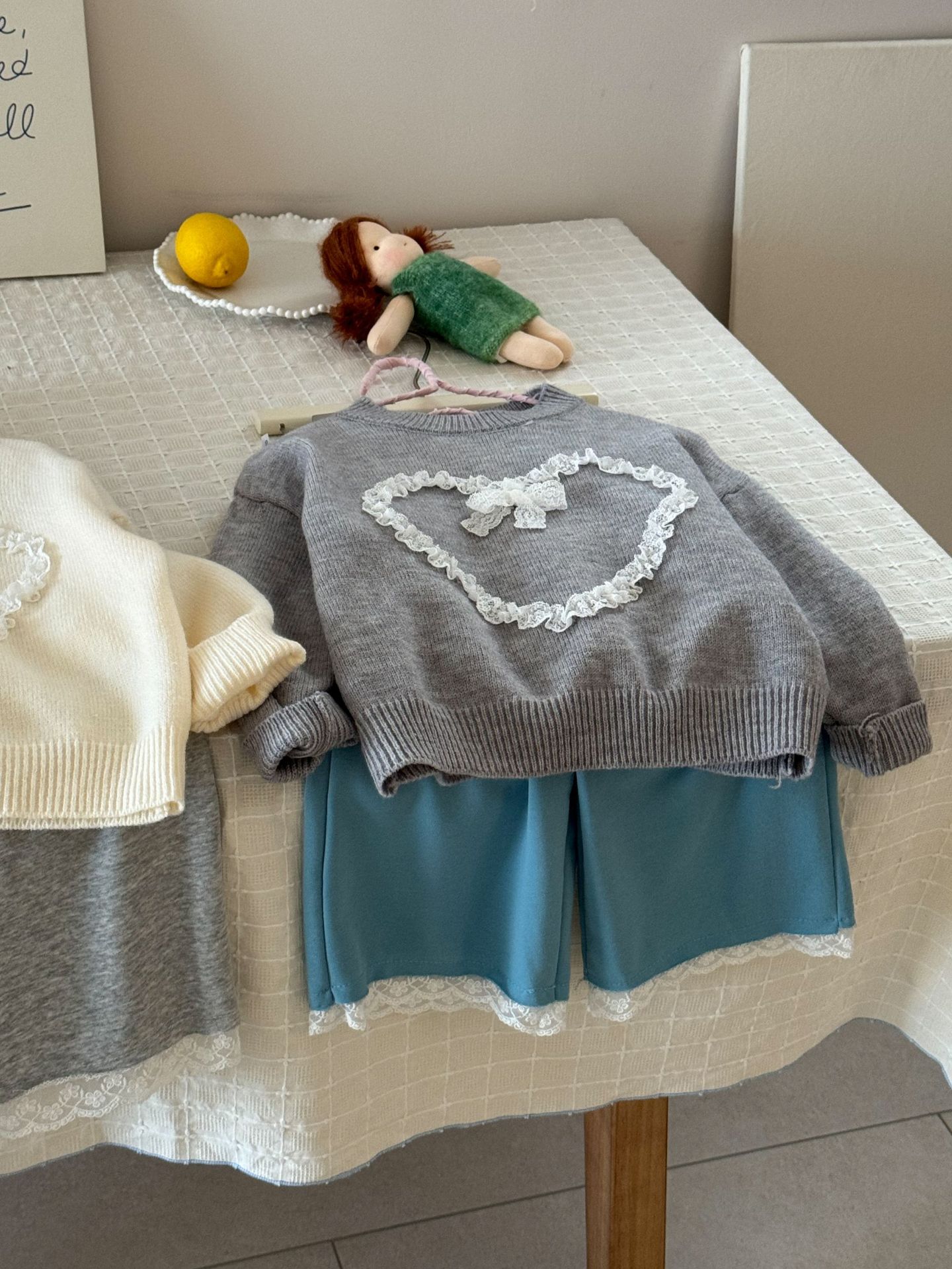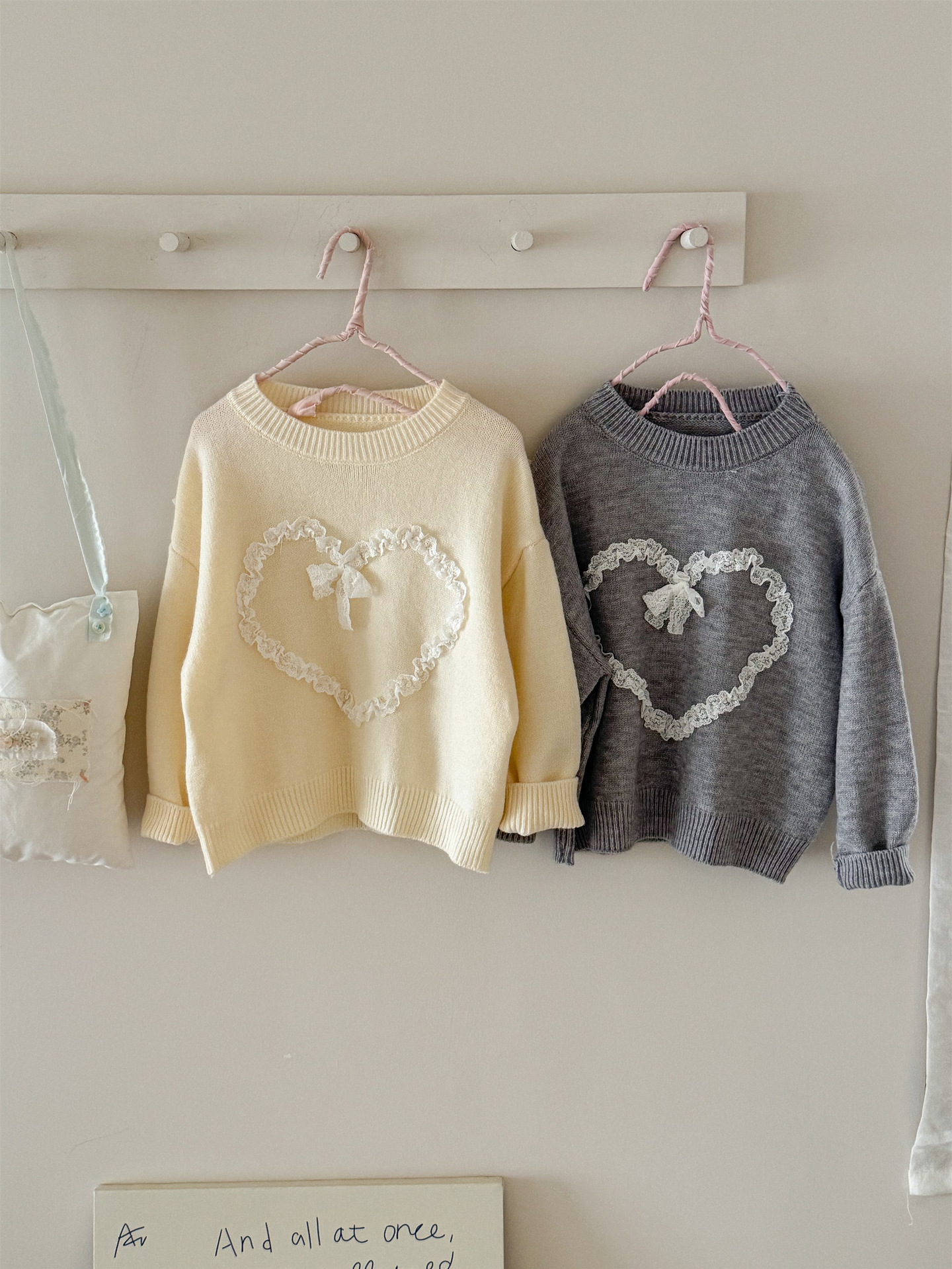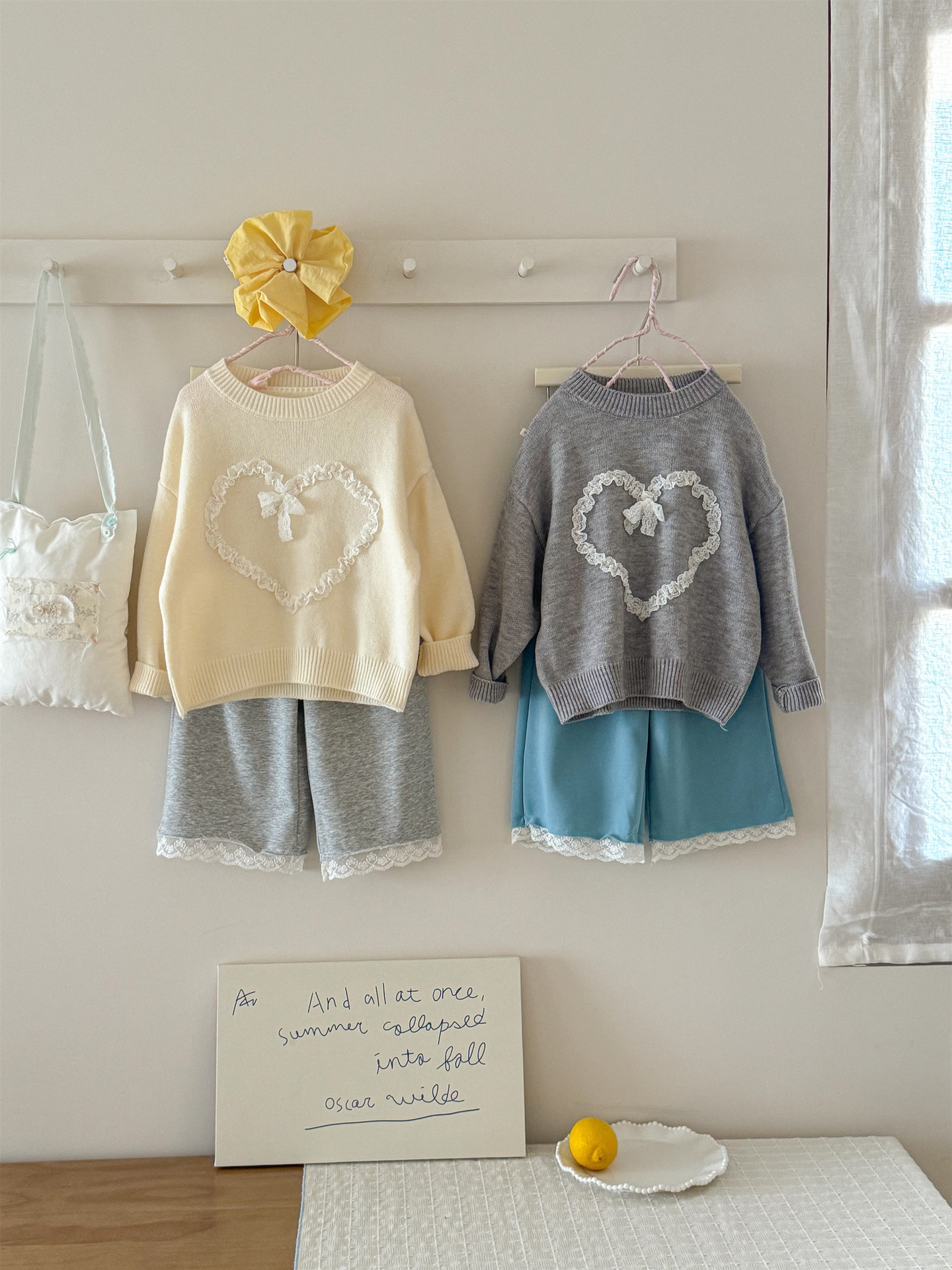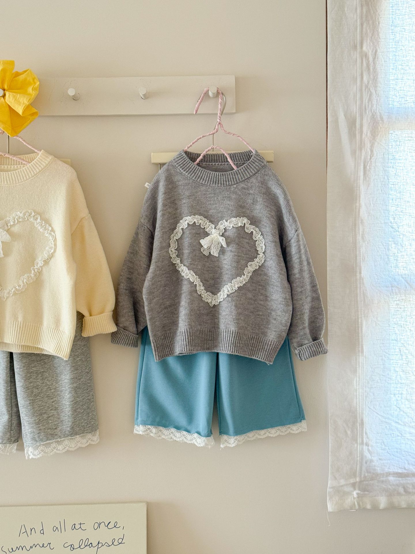 #キッズトップス #ニットセーター #フリルデザイン #ハートアップリケ #おしゃれキッズ #子供服