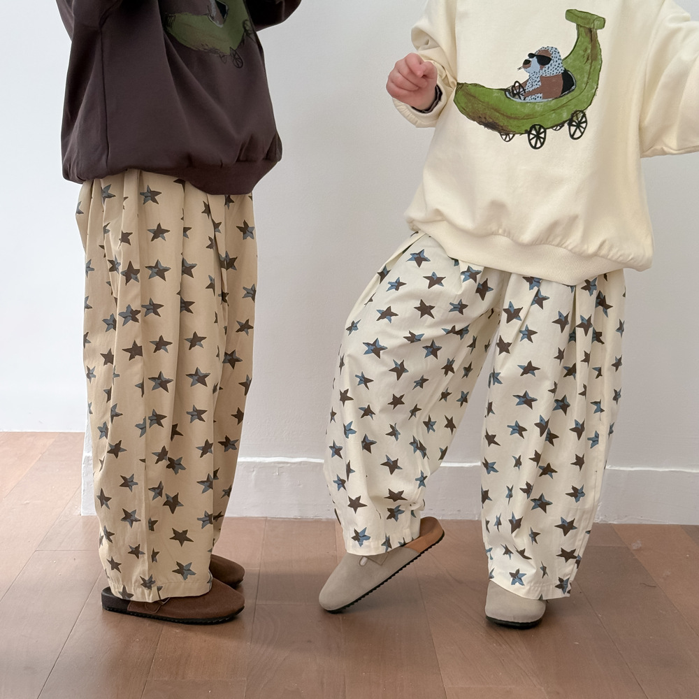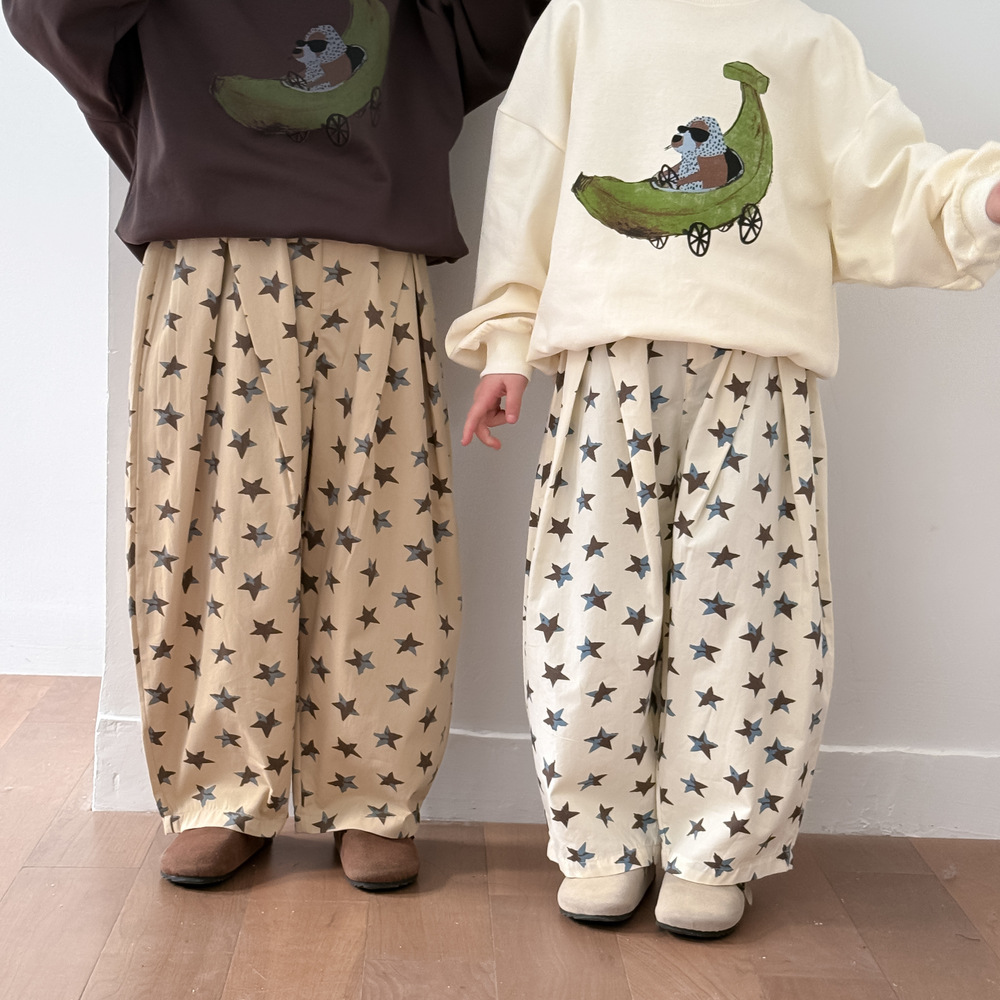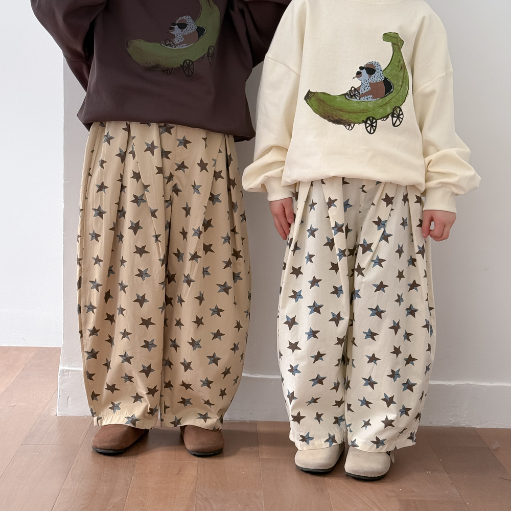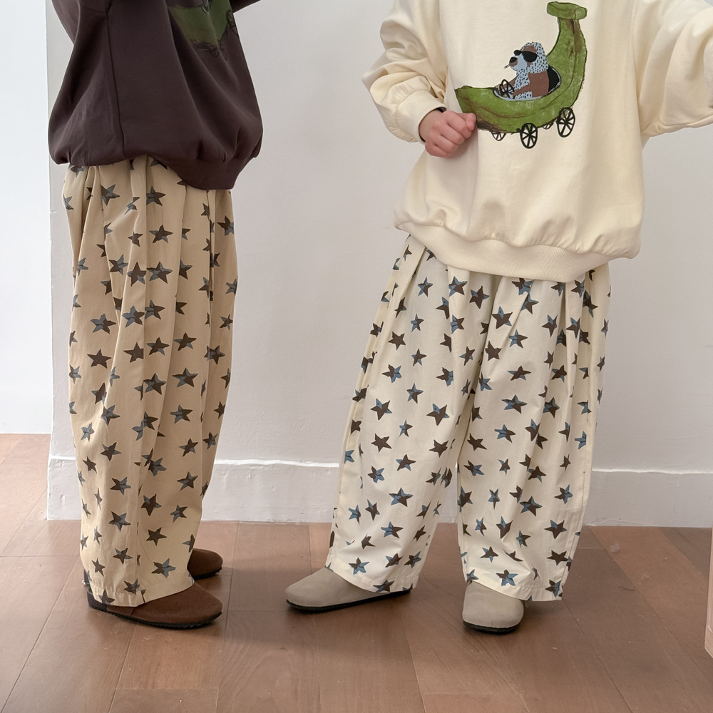 キッズパンツ 星スタープリントロングルーズワイドパンツ【mh0009198】