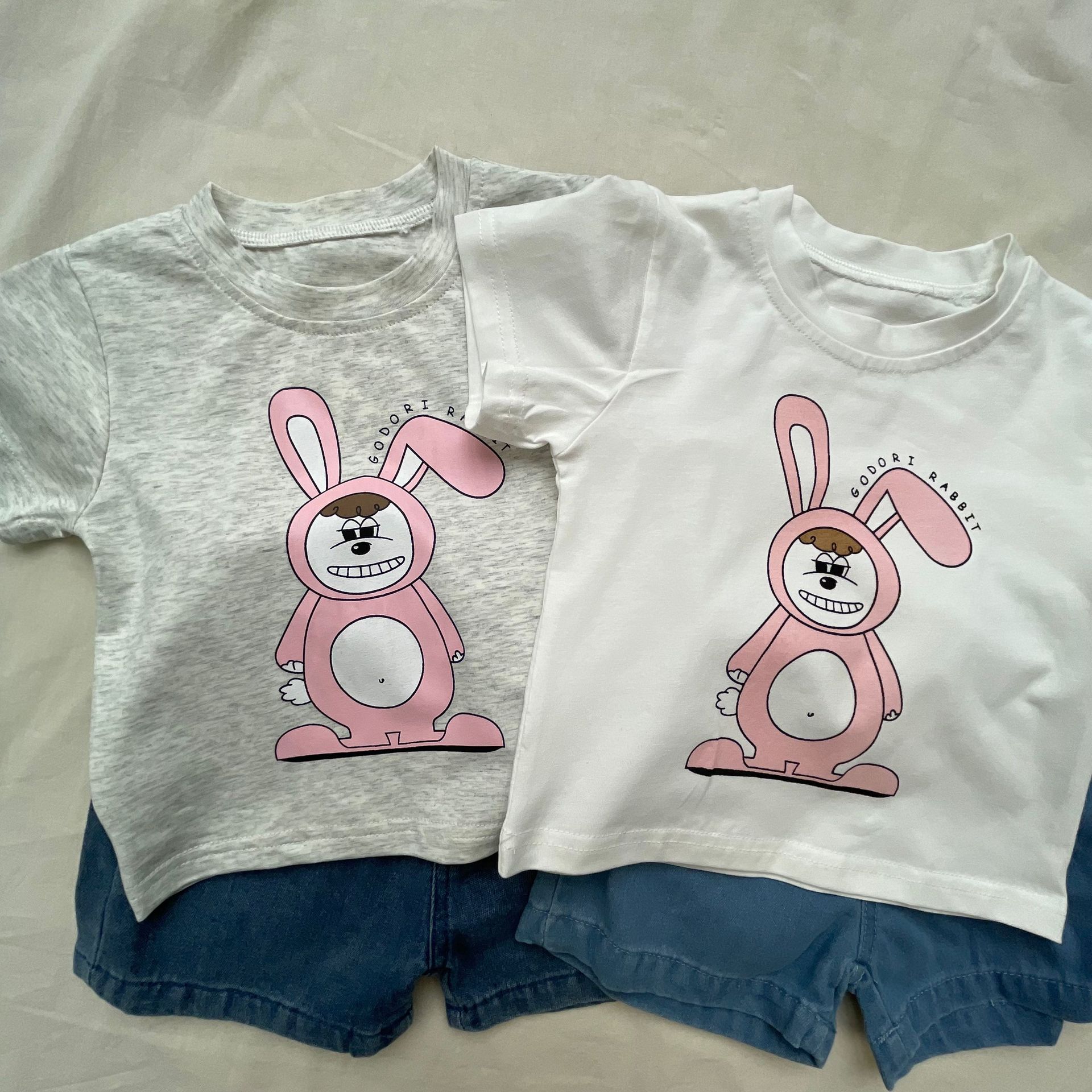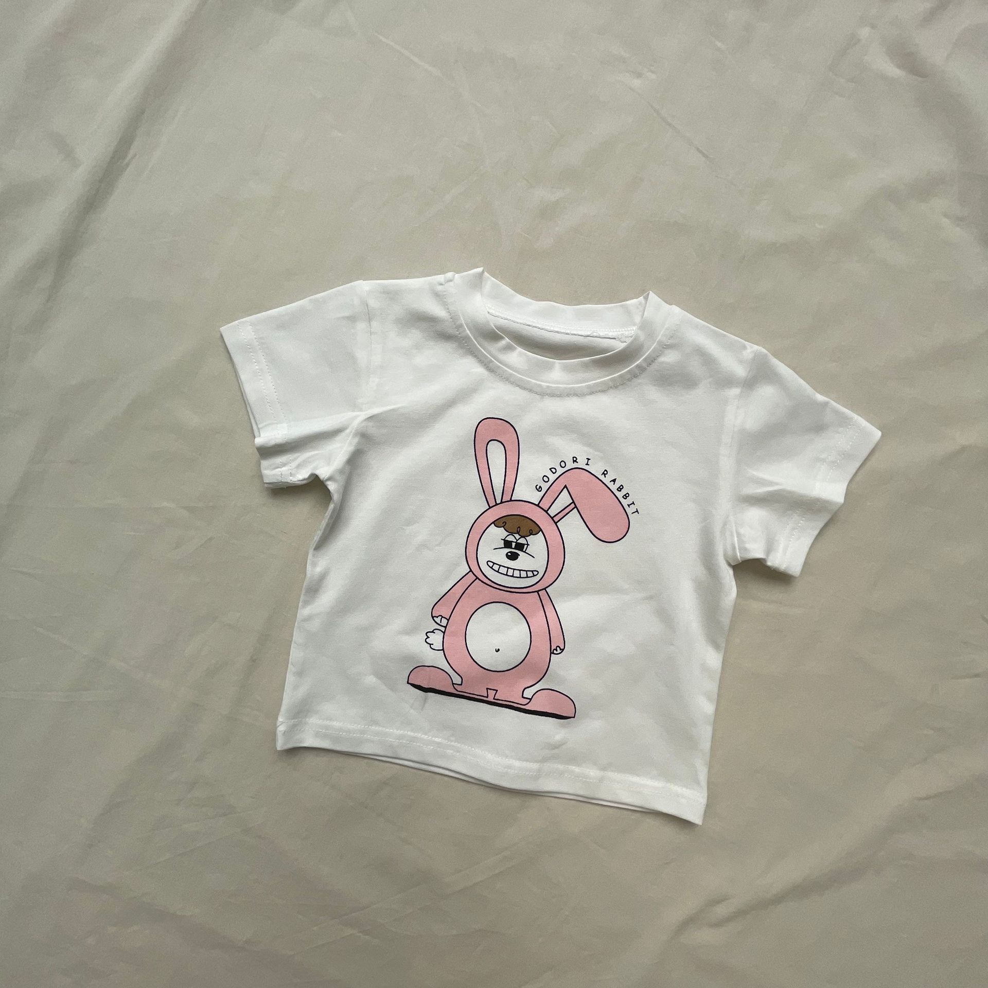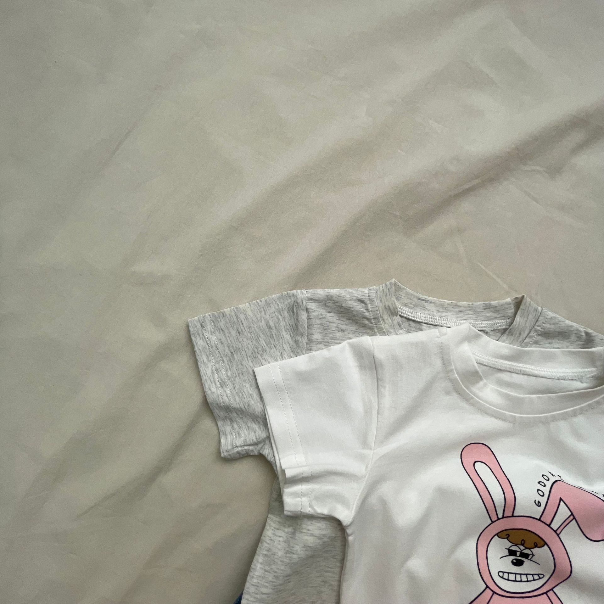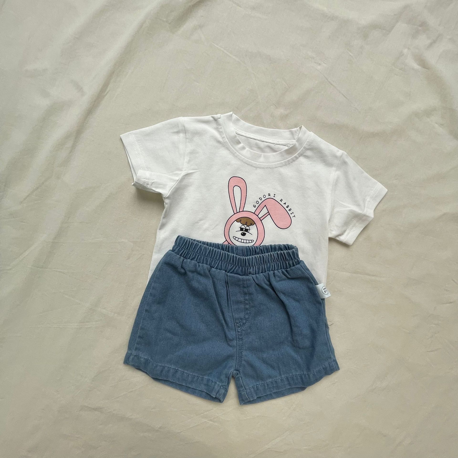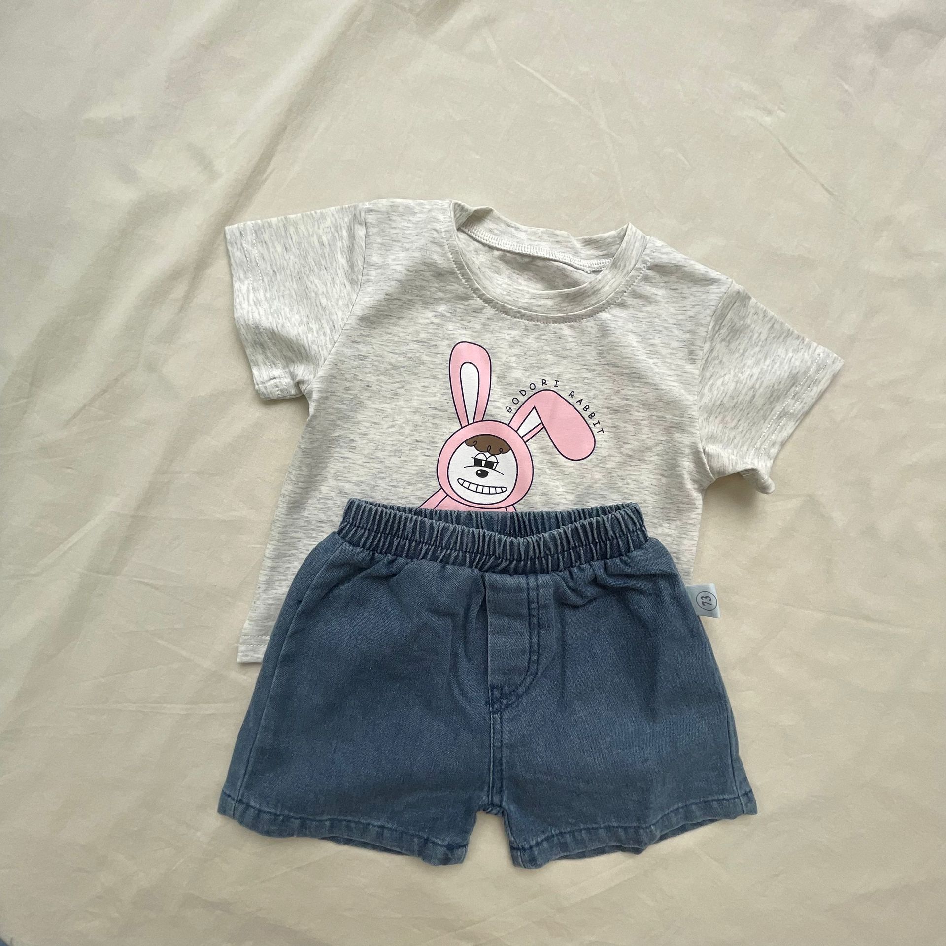 うさぎバニープリント半袖Tシャツ/デニムショートパンツ【mh0009446】