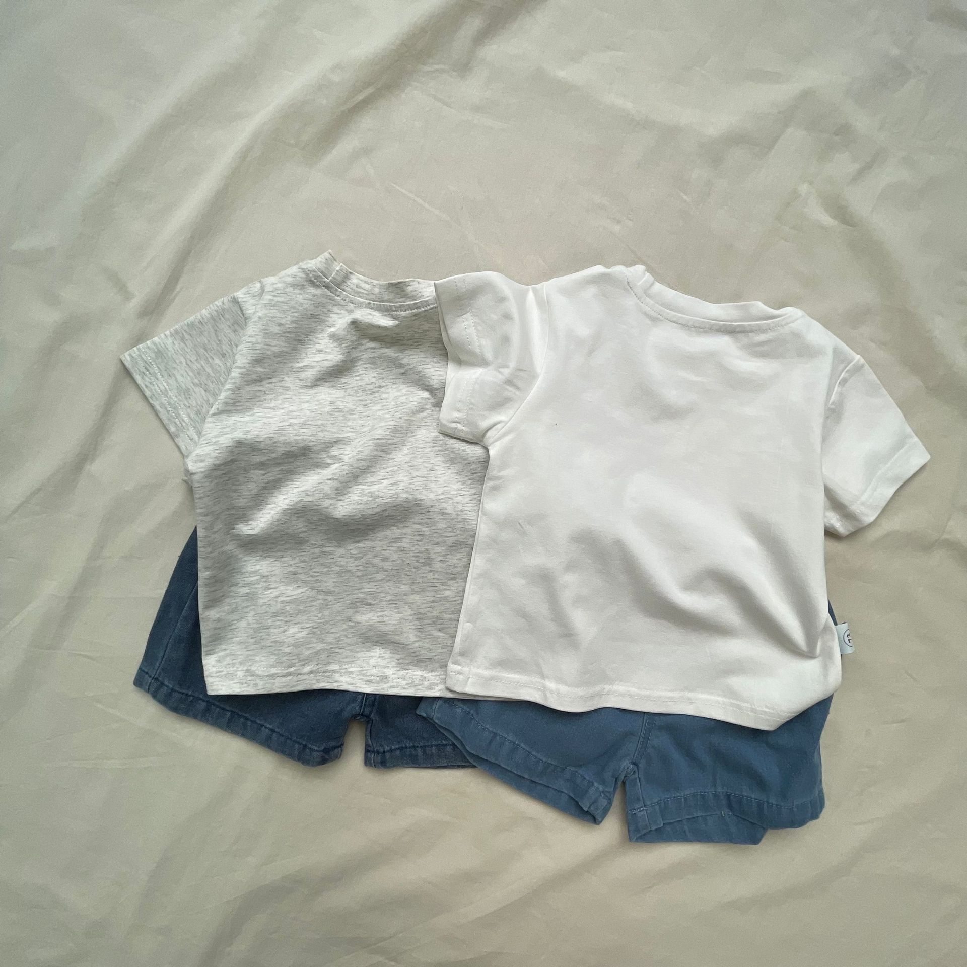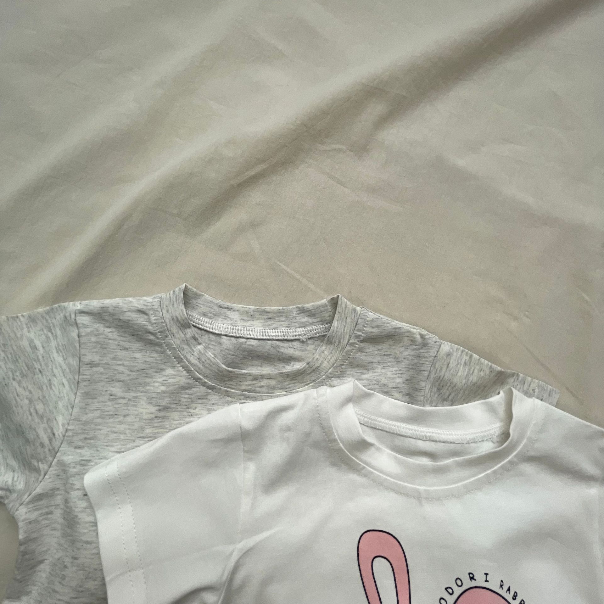 可愛いうさぎのバニープリントが目を引く半袖Tシャツとデニムショートパンツのセットです。丸首のデザインで、肩部分のディテールがシンプルながらおしゃれな印象を与えます。Tシャツのバニープリントが元気な印象で、女の子にぴったりのカジュアルなアイテムです。デニムショートパンツは、どんなコーディネートにも合わせやすいシンプルなデザインで、夏の軽快なスタイルを楽しめます。快適で動きやすく、日常のお出かけや遊びに最適なセットです。