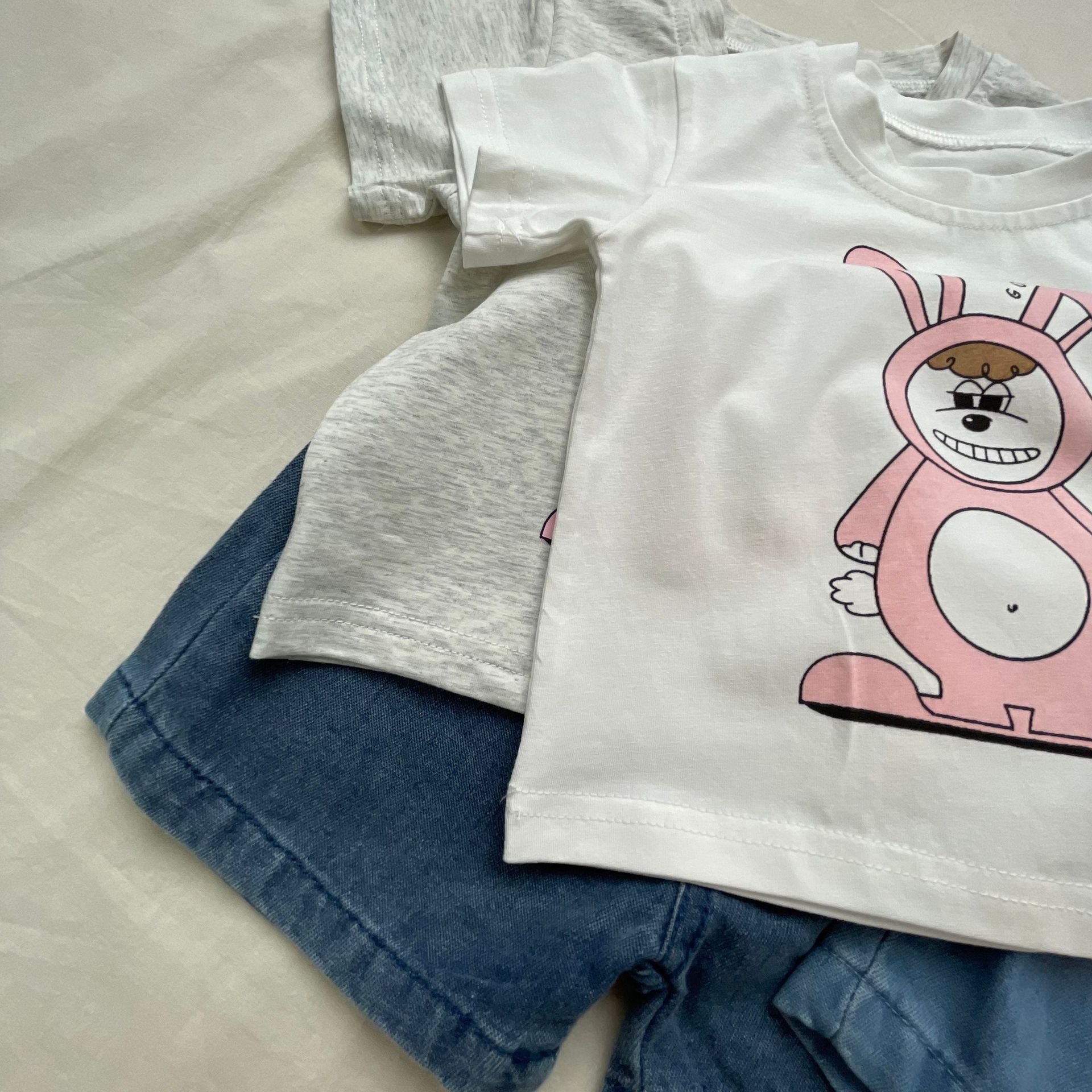 #キッズTシャツ #バニープリント #デニムショートパンツ #半袖Tシャツ #夏コーデ #子供服