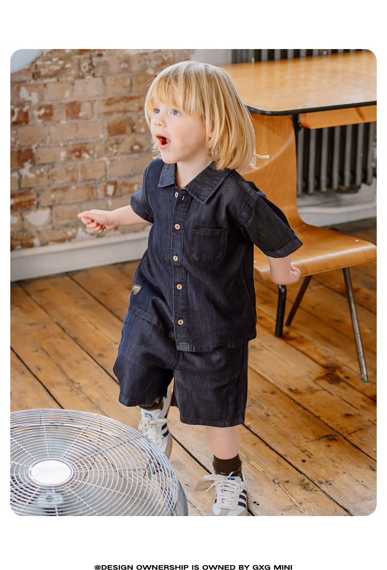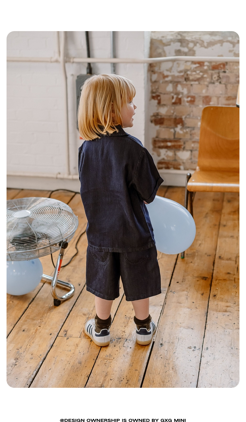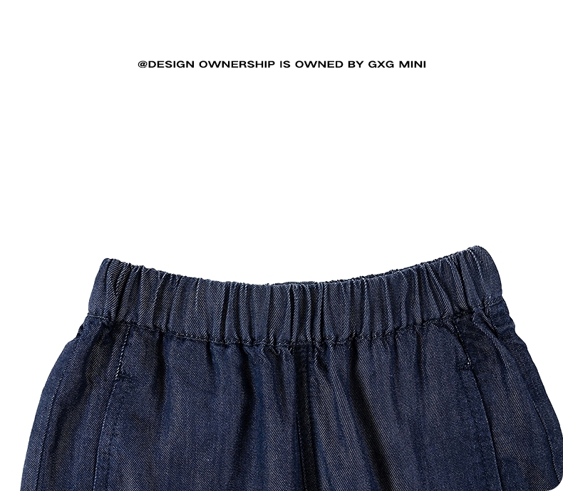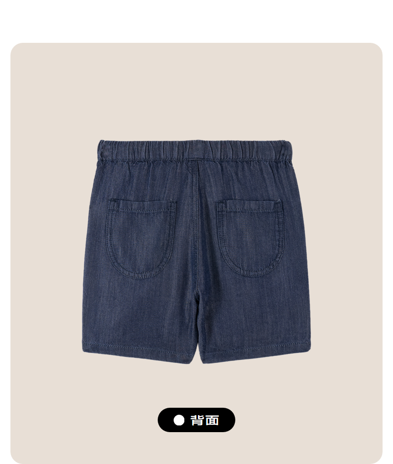 テンセル混の柔らかいデニム素材を使用した、gxgminiのキッズ向けデニムショートパンツです。色落ちしにくい加工が施されており、繰り返しの洗濯でもきれいな風合いを保ちます。軽やかで通気性の良い生地感は、夏場の外遊びやデイリー使いにもぴったり。ウエストはゴム仕様で着心地も快適です。シンプルながらも品のあるデザインで、トップスを選ばず活躍する1枚です。