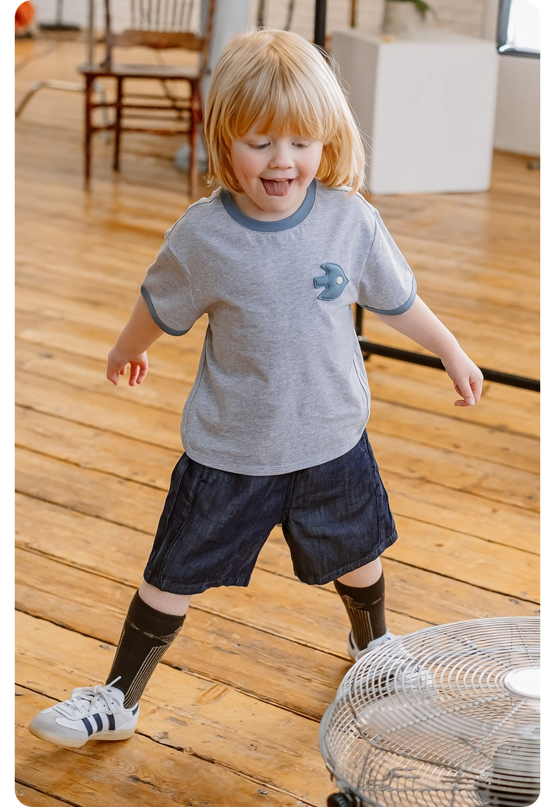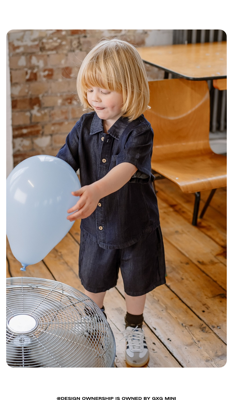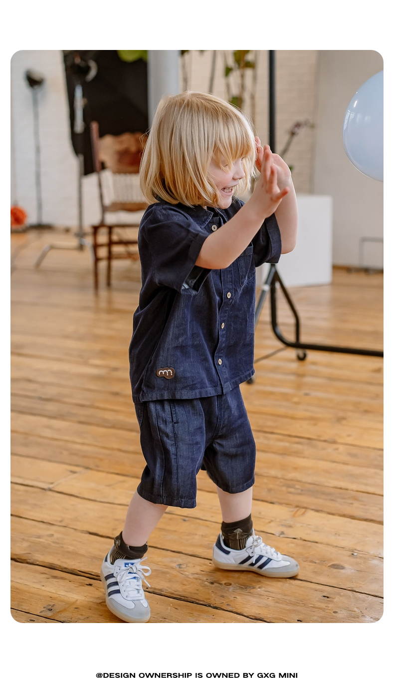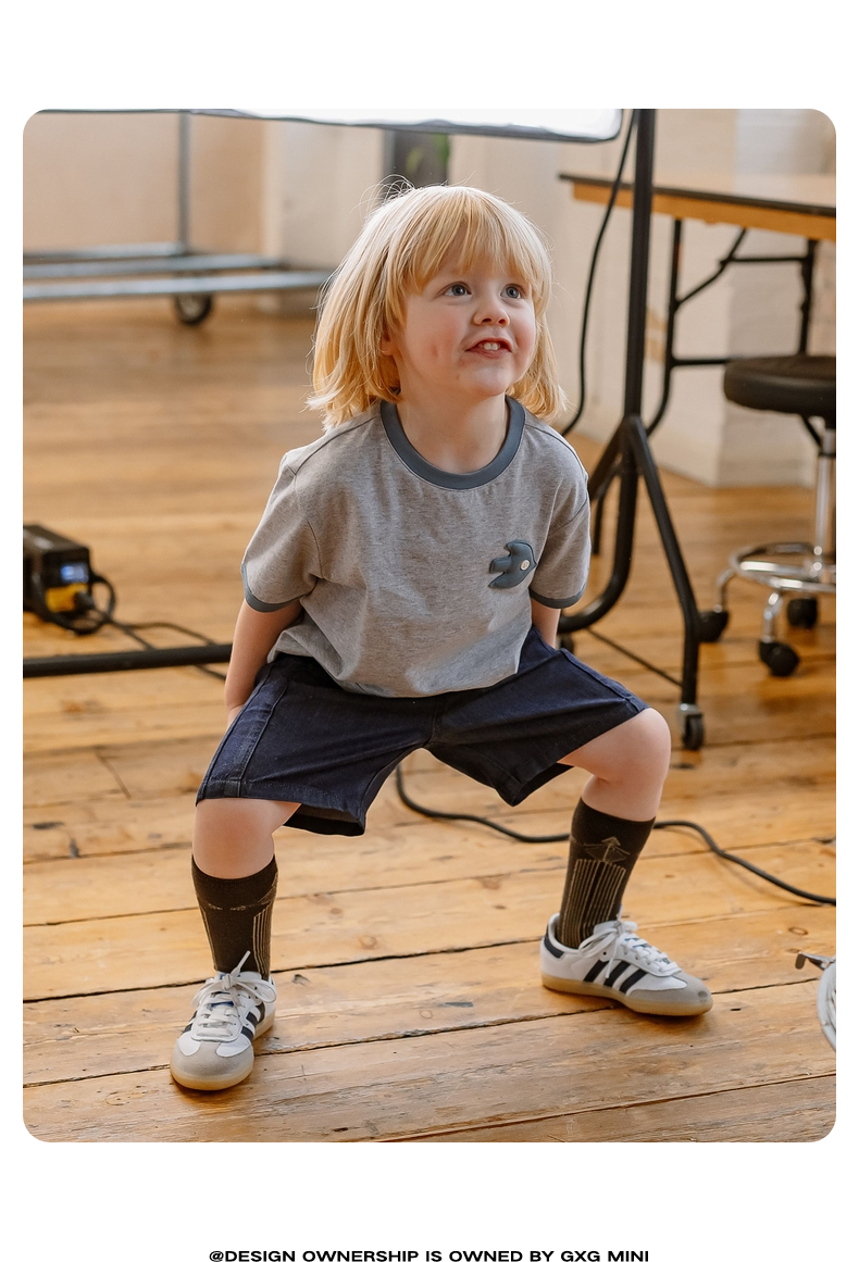テンセル混の柔らかいデニム素材を使用した、gxgminiのキッズ向けデニムショートパンツです。色落ちしにくい加工が施されており、繰り返しの洗濯でもきれいな風合いを保ちます。軽やかで通気性の良い生地感は、夏場の外遊びやデイリー使いにもぴったり。ウエストはゴム仕様で着心地も快適です。シンプルながらも品のあるデザインで、トップスを選ばず活躍する1枚です。