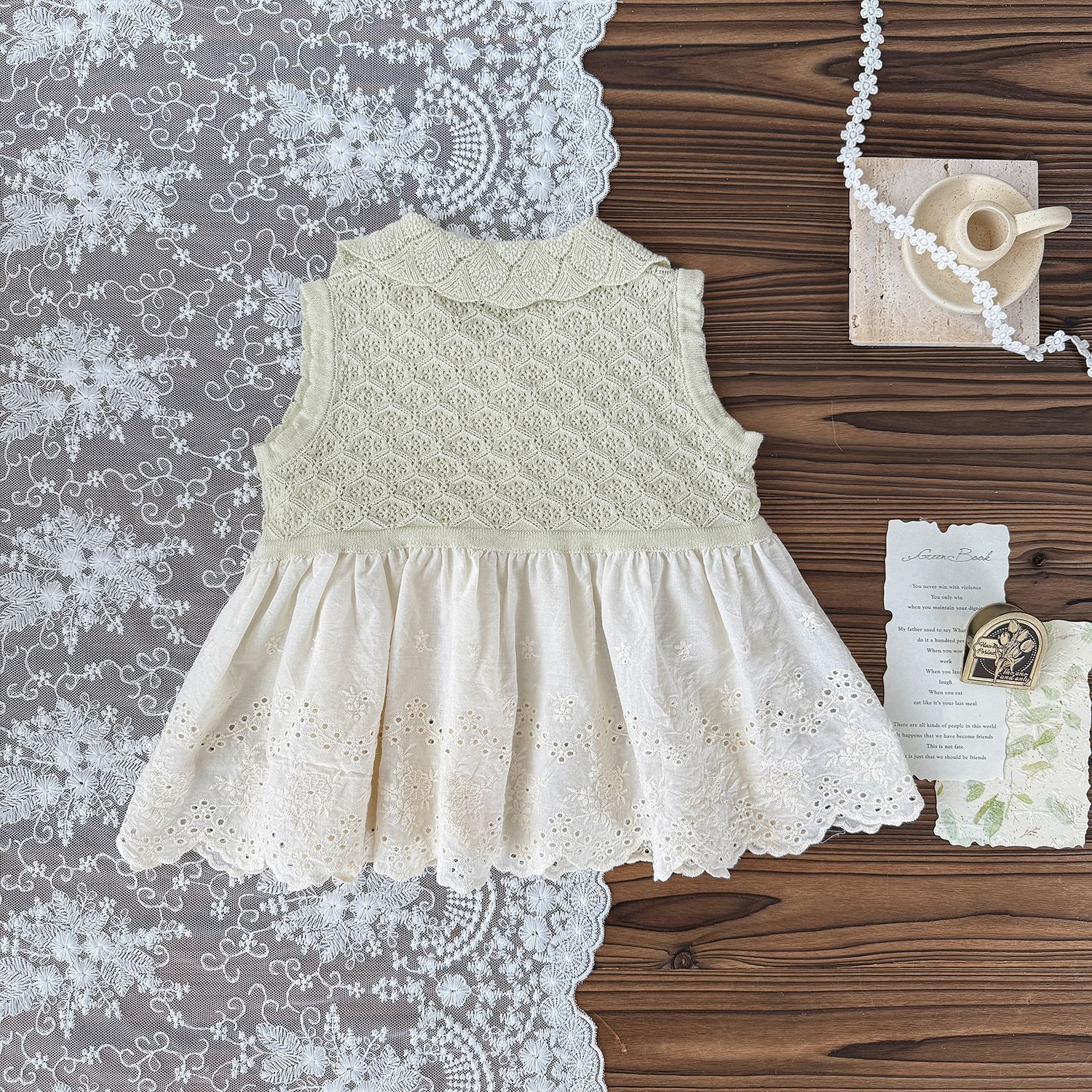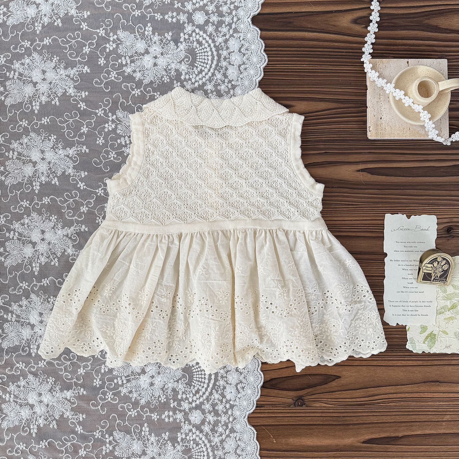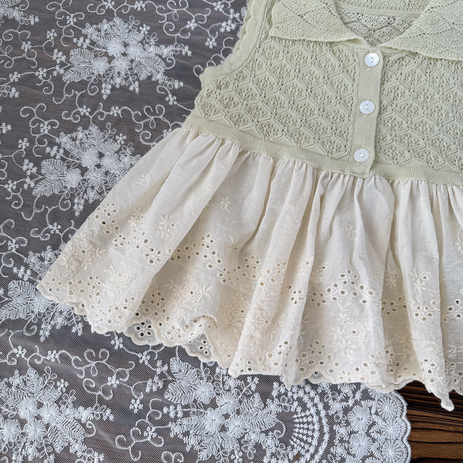 #レーストップス #ペプラム #ノースリーブ #キッズファッション #夏トップス #ガーリーコーデ #襟付きトップス #子ども服
