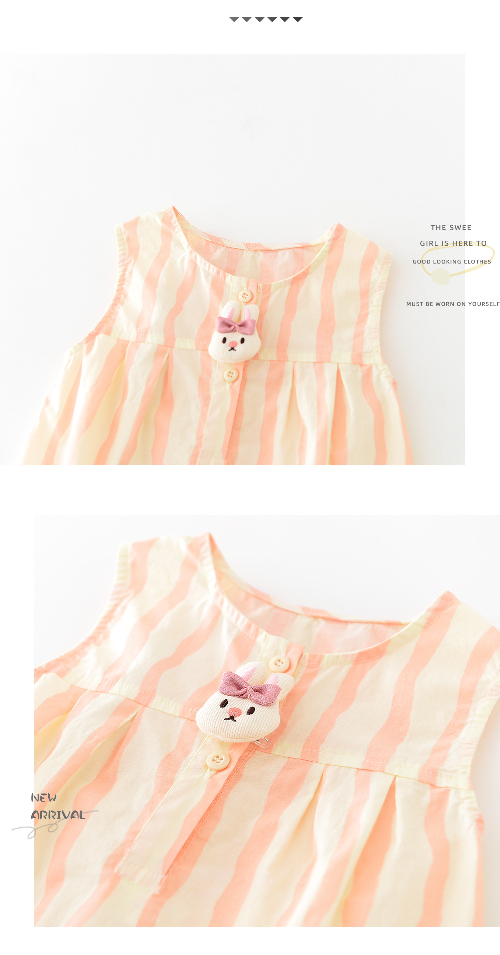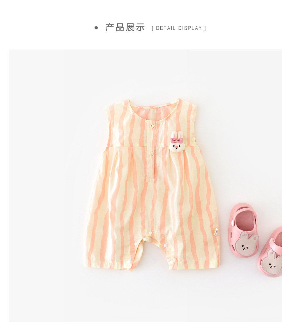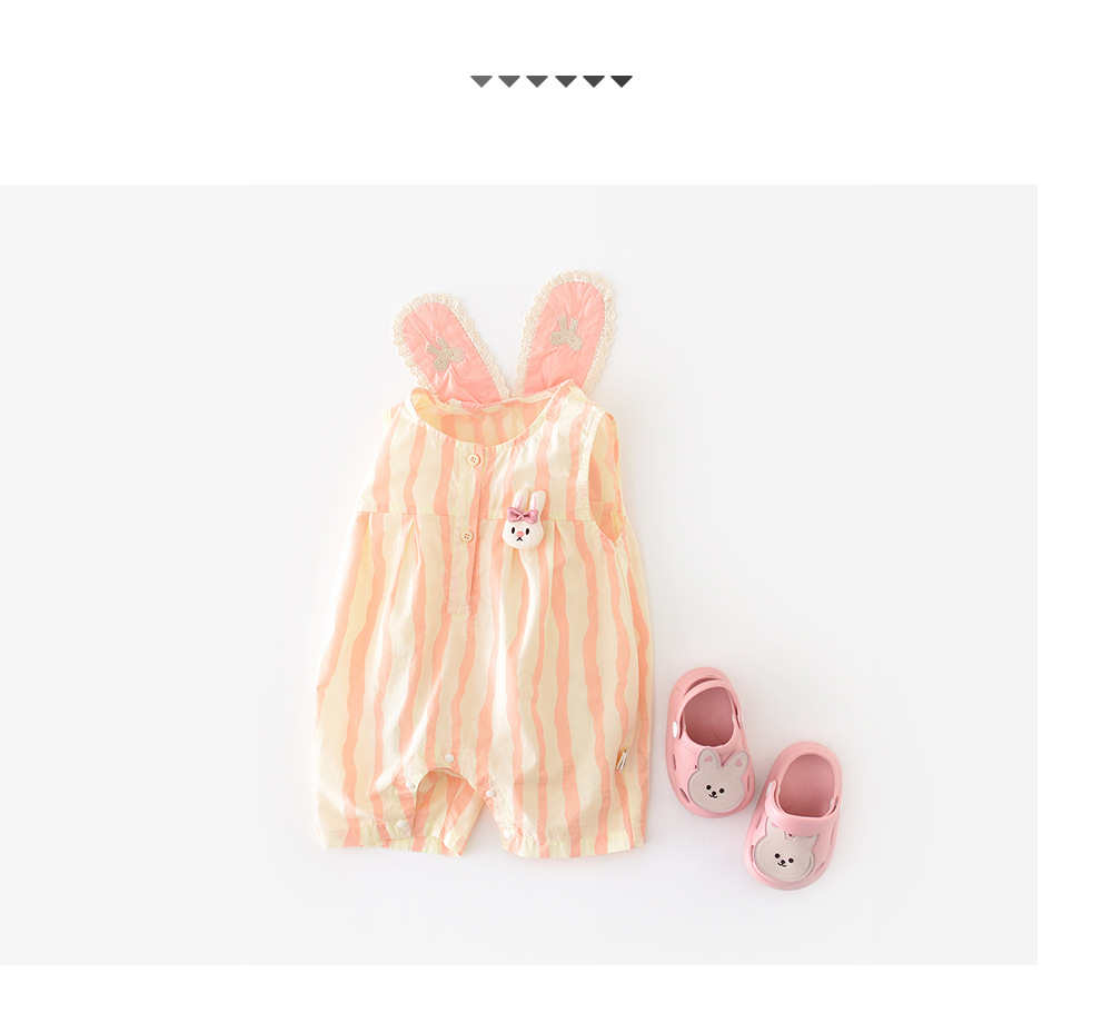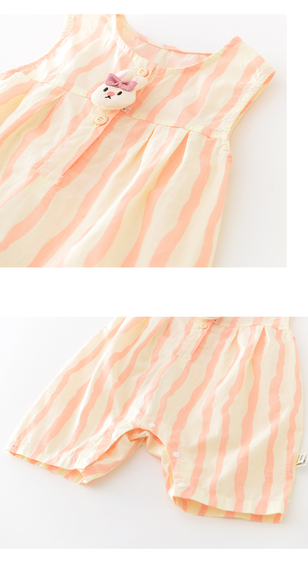 ストライプ柄のノースリーブロンパースは、ベビーやトドラー向けにぴったりの可愛らしいアイテムです。ユニークなウサギの耳がアクセントになっており、愛らしさが際立ちます。カジュアルなデザインで、動きやすさを重視した作りになっており、暑い日にぴったりのアイテムです。素材は柔らかく、ベビーの肌にも優しく、快適に過ごせること間違いなし。カートゥーンデザインが子どもらしさを引き立て、外出時やお出かけにも最適です。毎日のおしゃれに、またプレゼントとしても喜ばれるアイテムです。