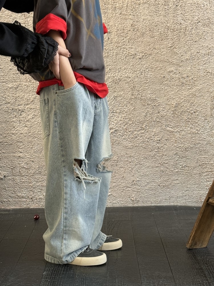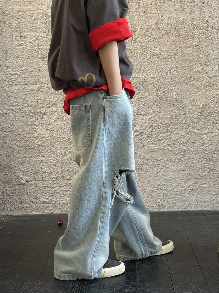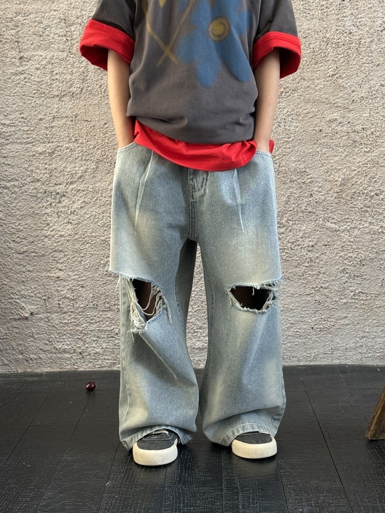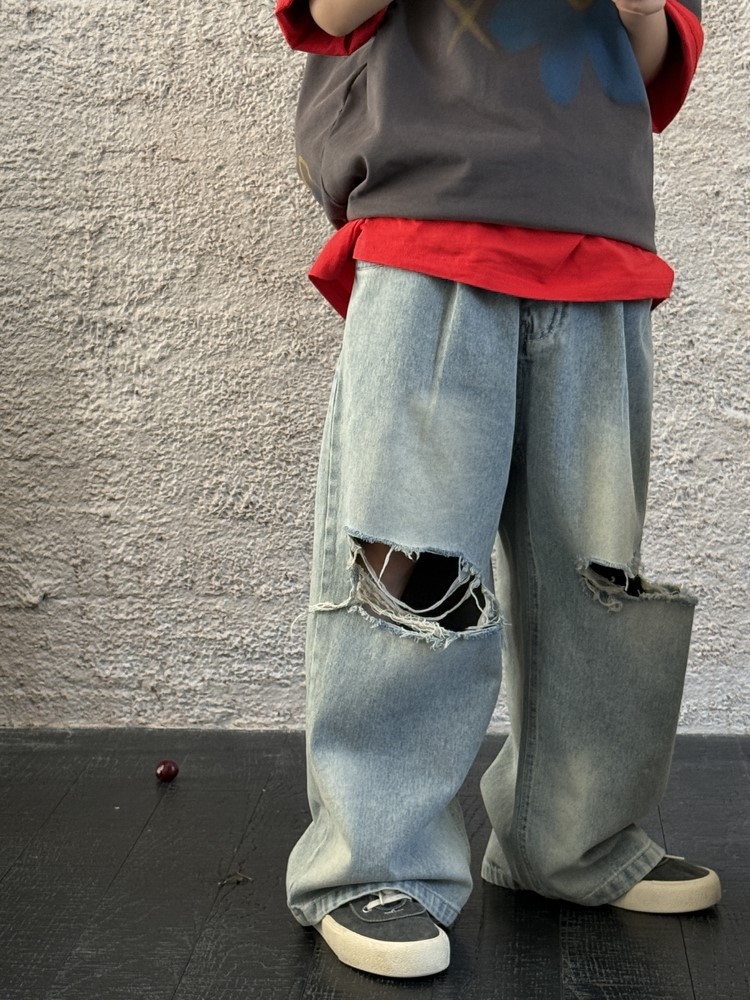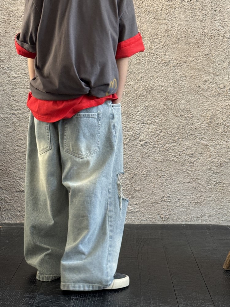 #キッズデニム #子供服 #男の子 #ワイドパンツ #ルーズパンツ #ダメージ加工 #春物子供服 #おしゃれキッズ
