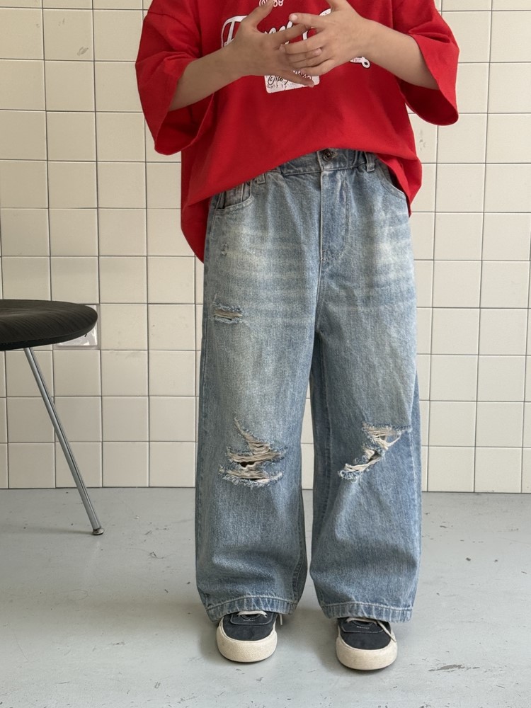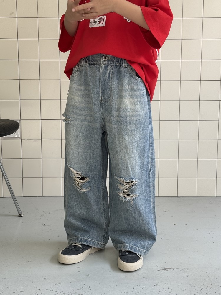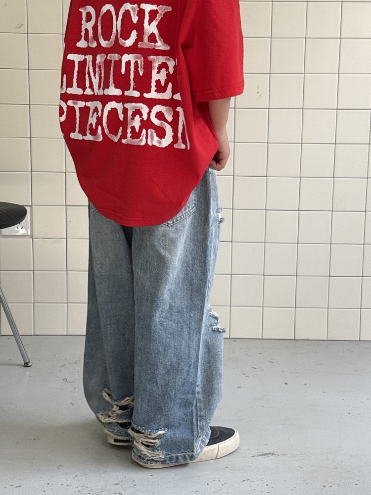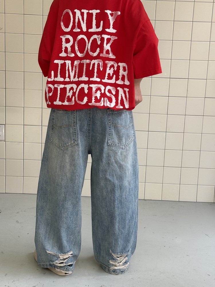 ダメージ加工ルーズストレートデニムパンツジーンズ【mh0009690】