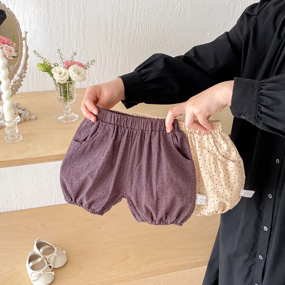 #ベビー服 #ショートパンツ #水玉プリント #バルーンシルエット #夏物ベビー #コットン #ベビーコーデ #ユニセックス