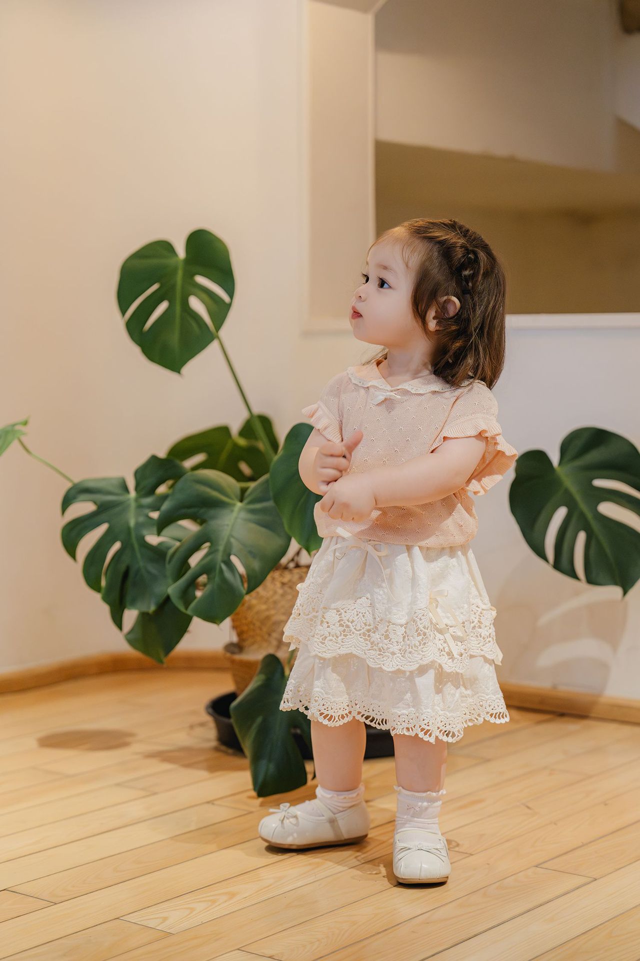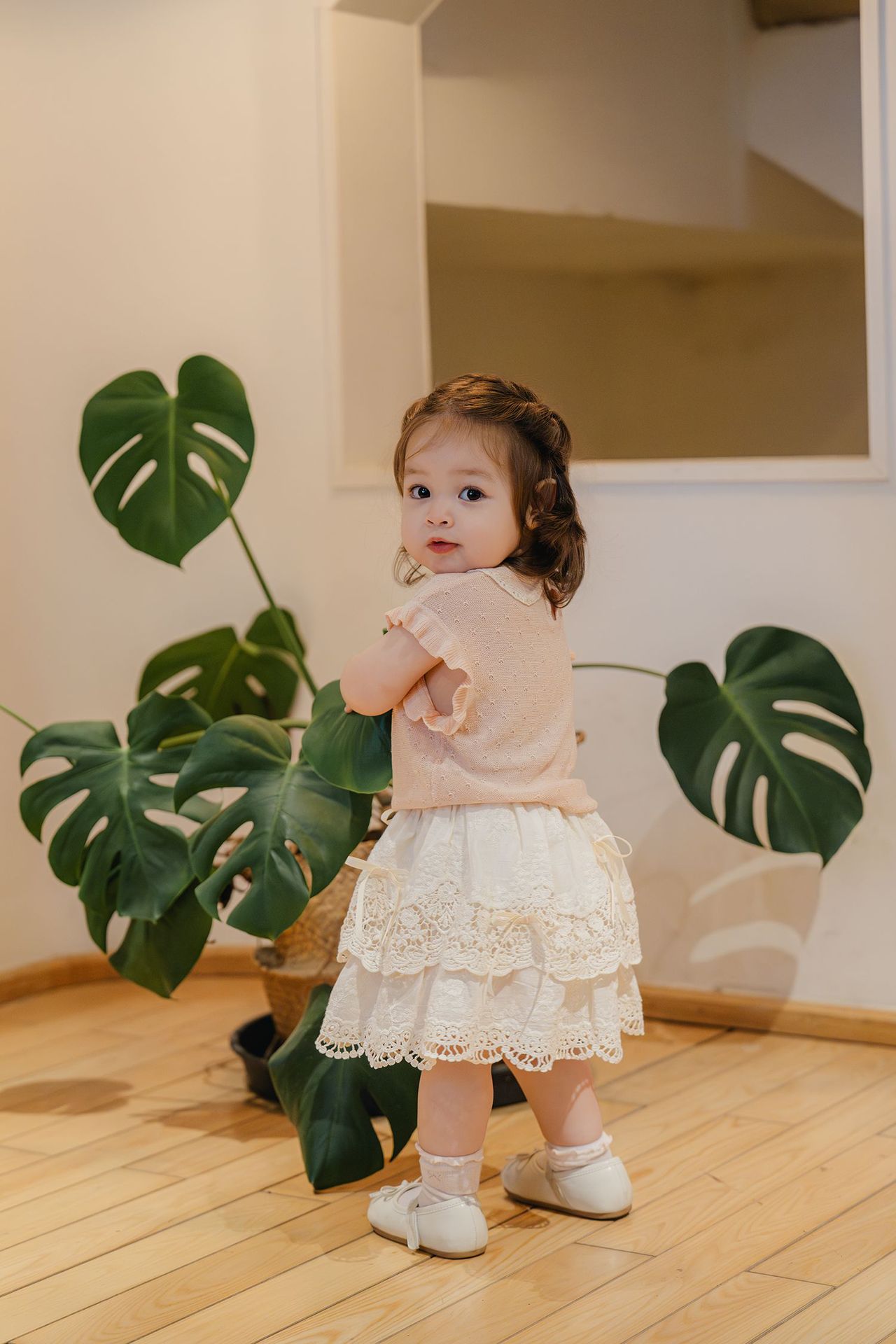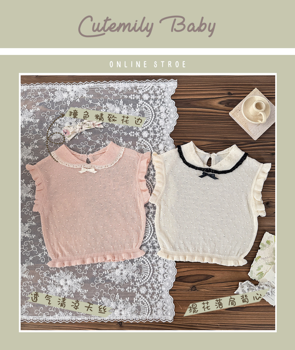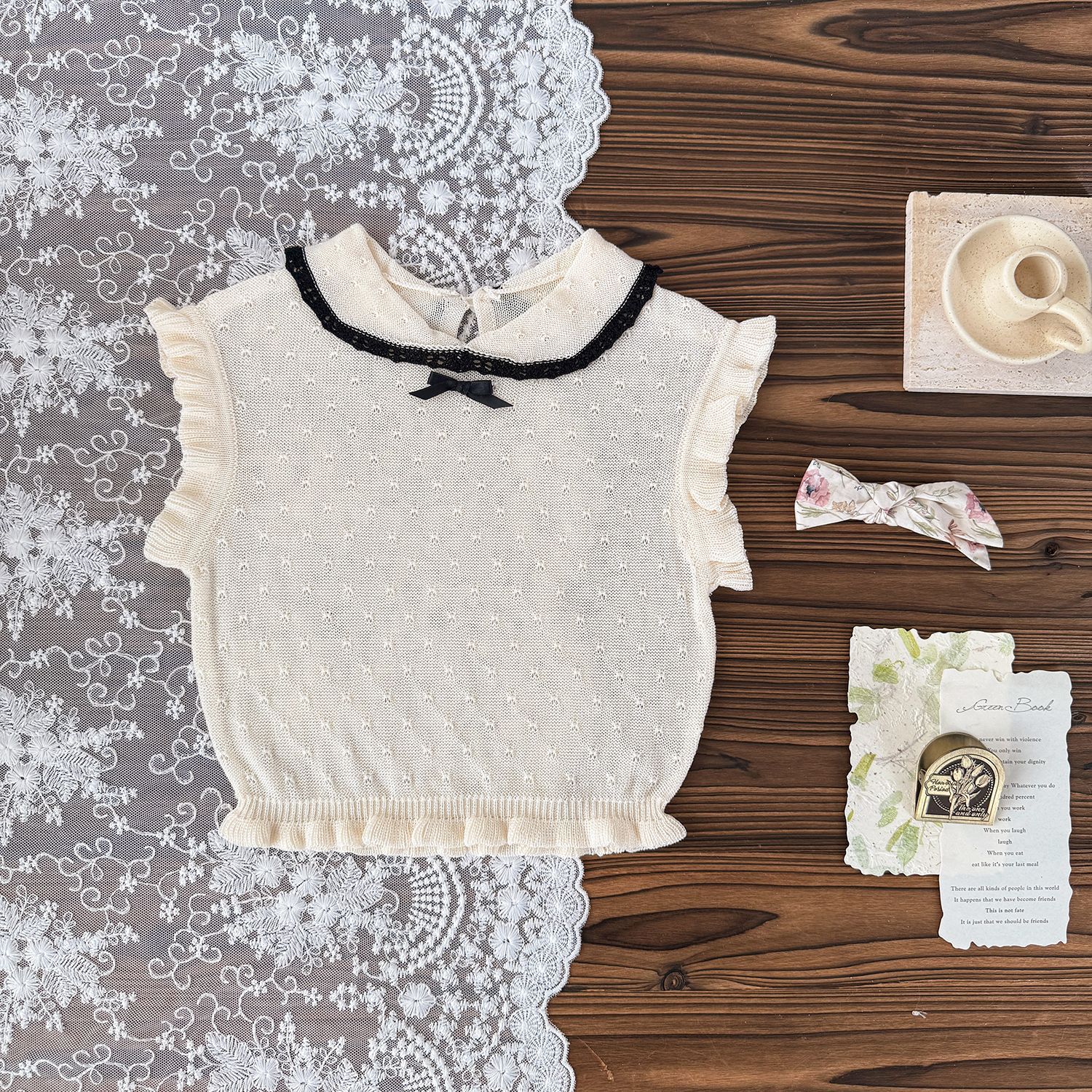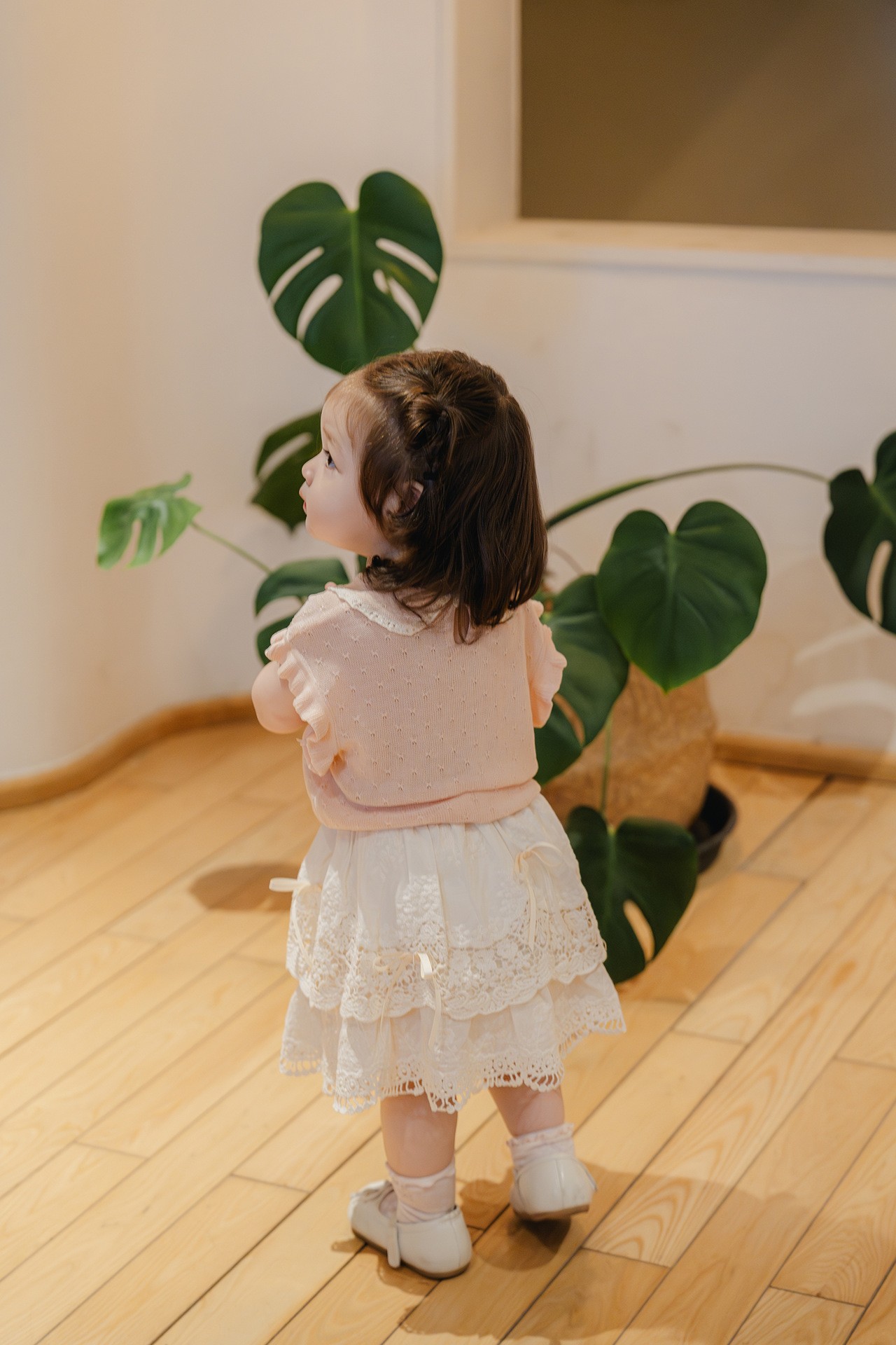 #キッズベスト #子供服 #女の子 #ニットトップス #レースニット #フリルスリーブ #夏物子供服 #重ね着アイテム #おしゃれキッズ