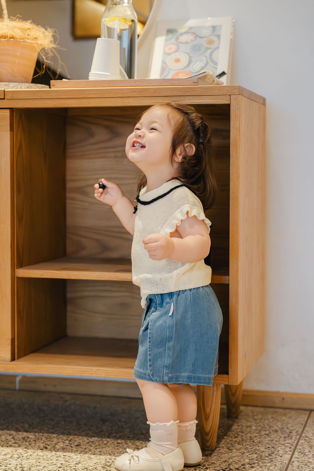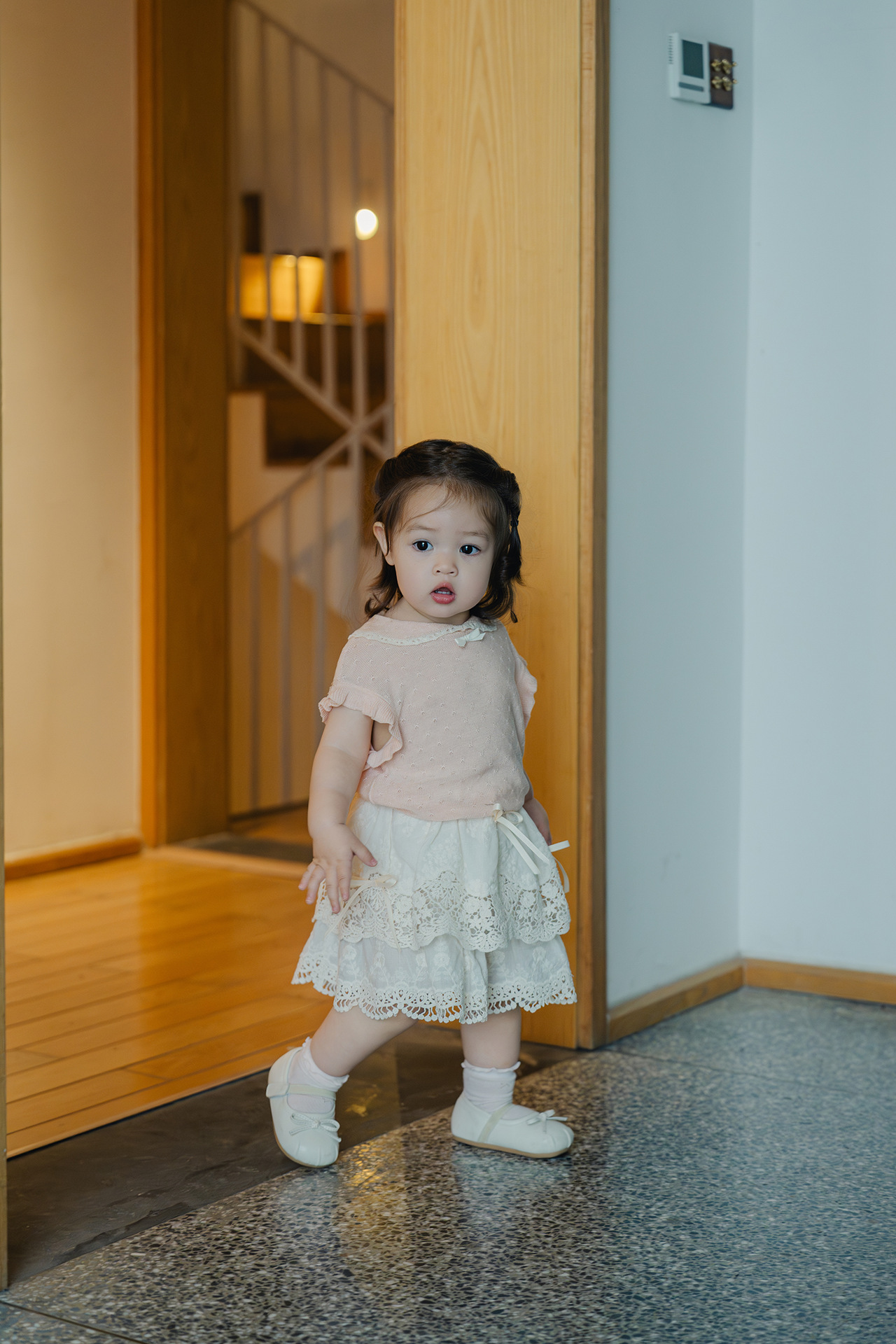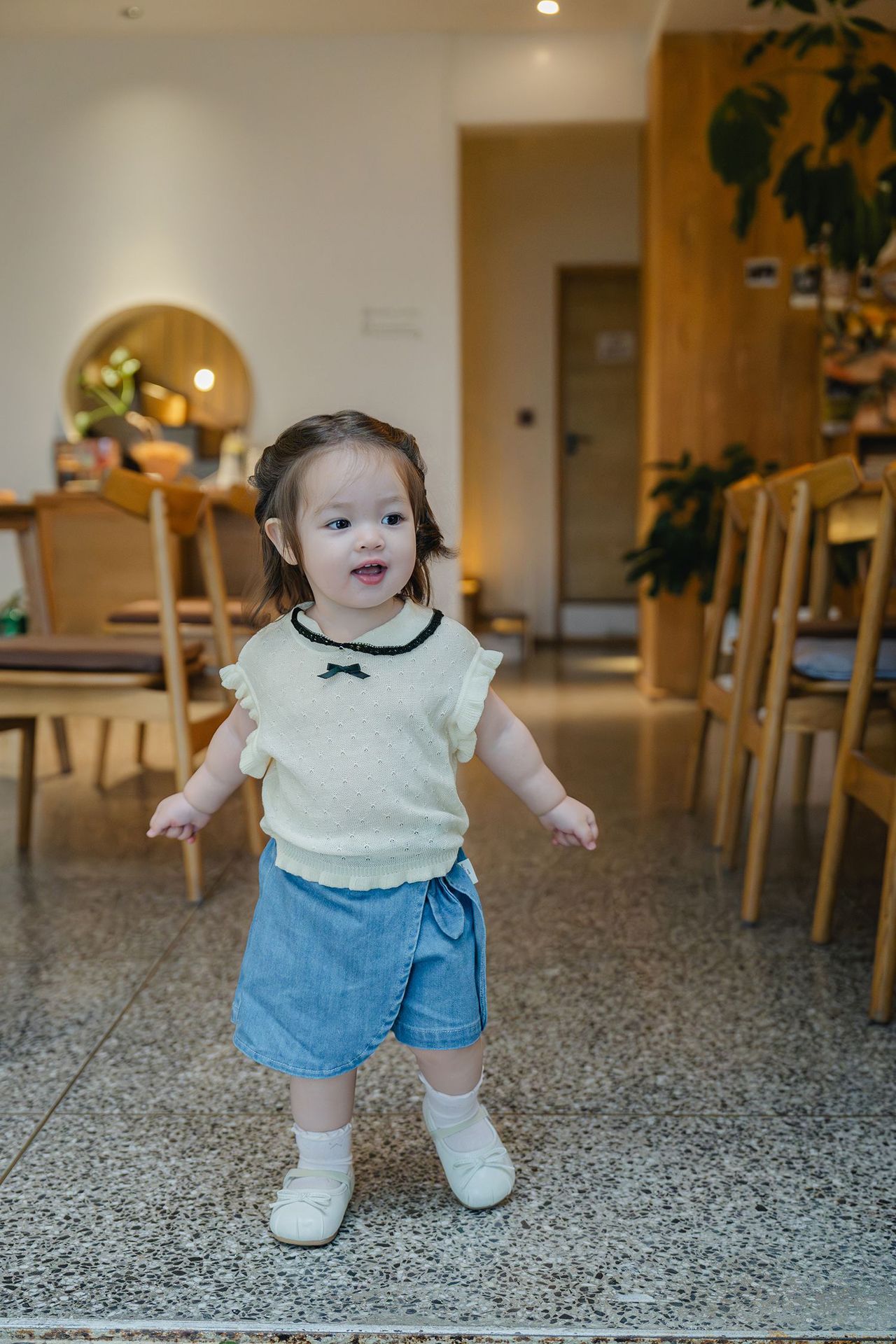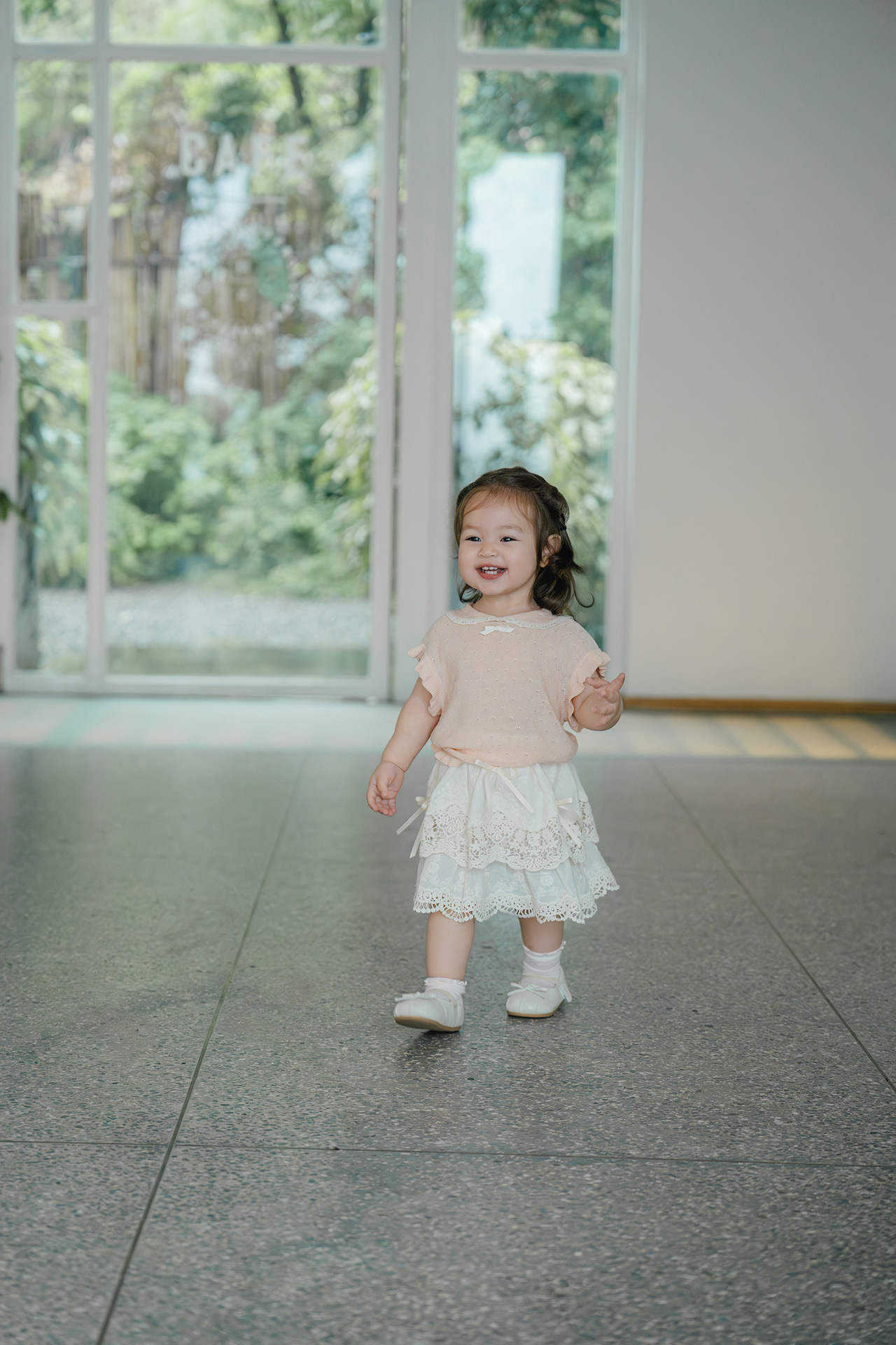 #キッズベスト #子供服 #女の子 #ニットトップス #レースニット #フリルスリーブ #夏物子供服 #重ね着アイテム #おしゃれキッズ