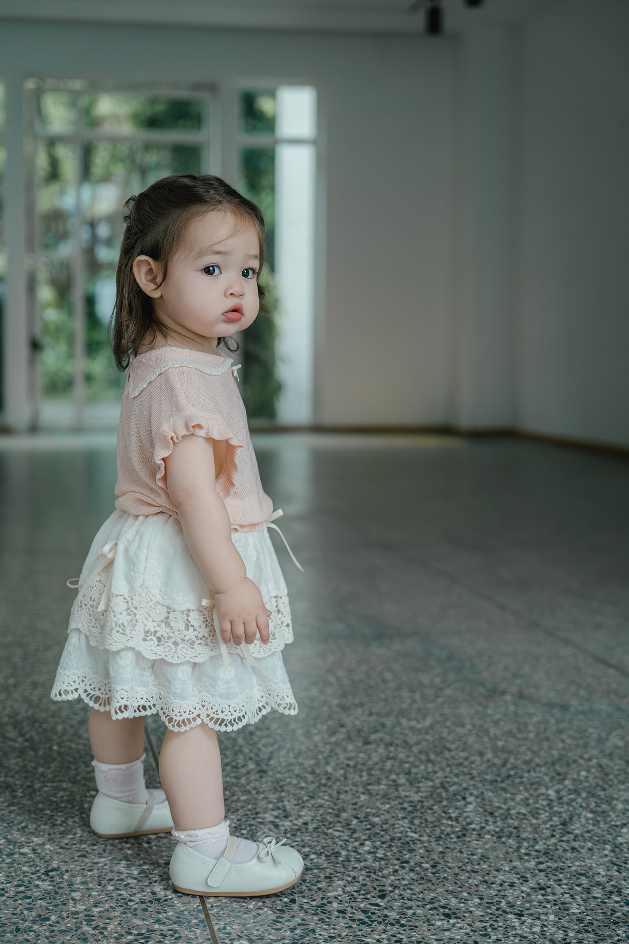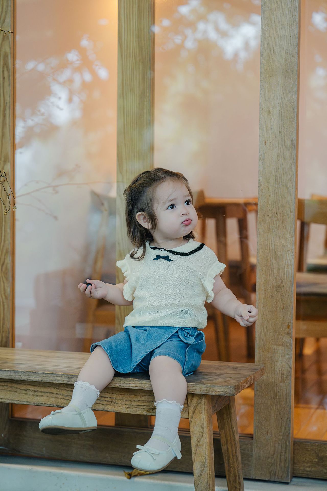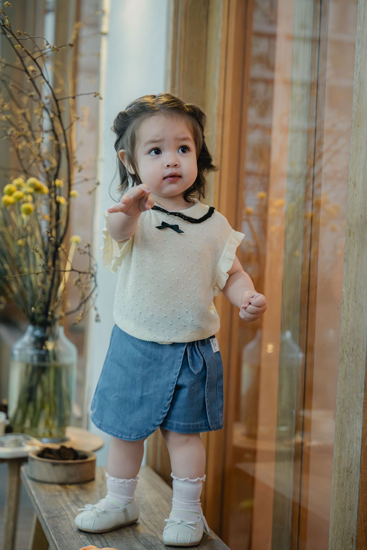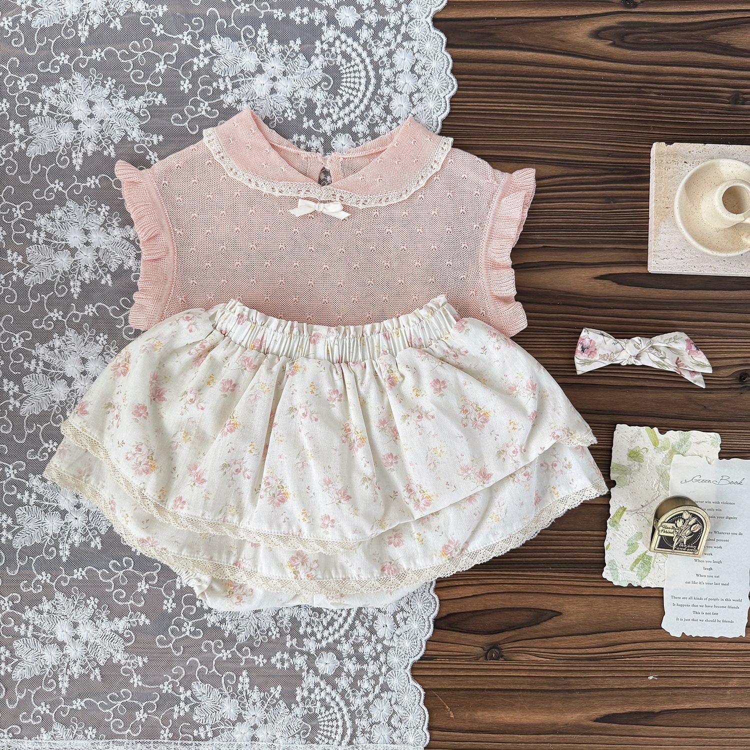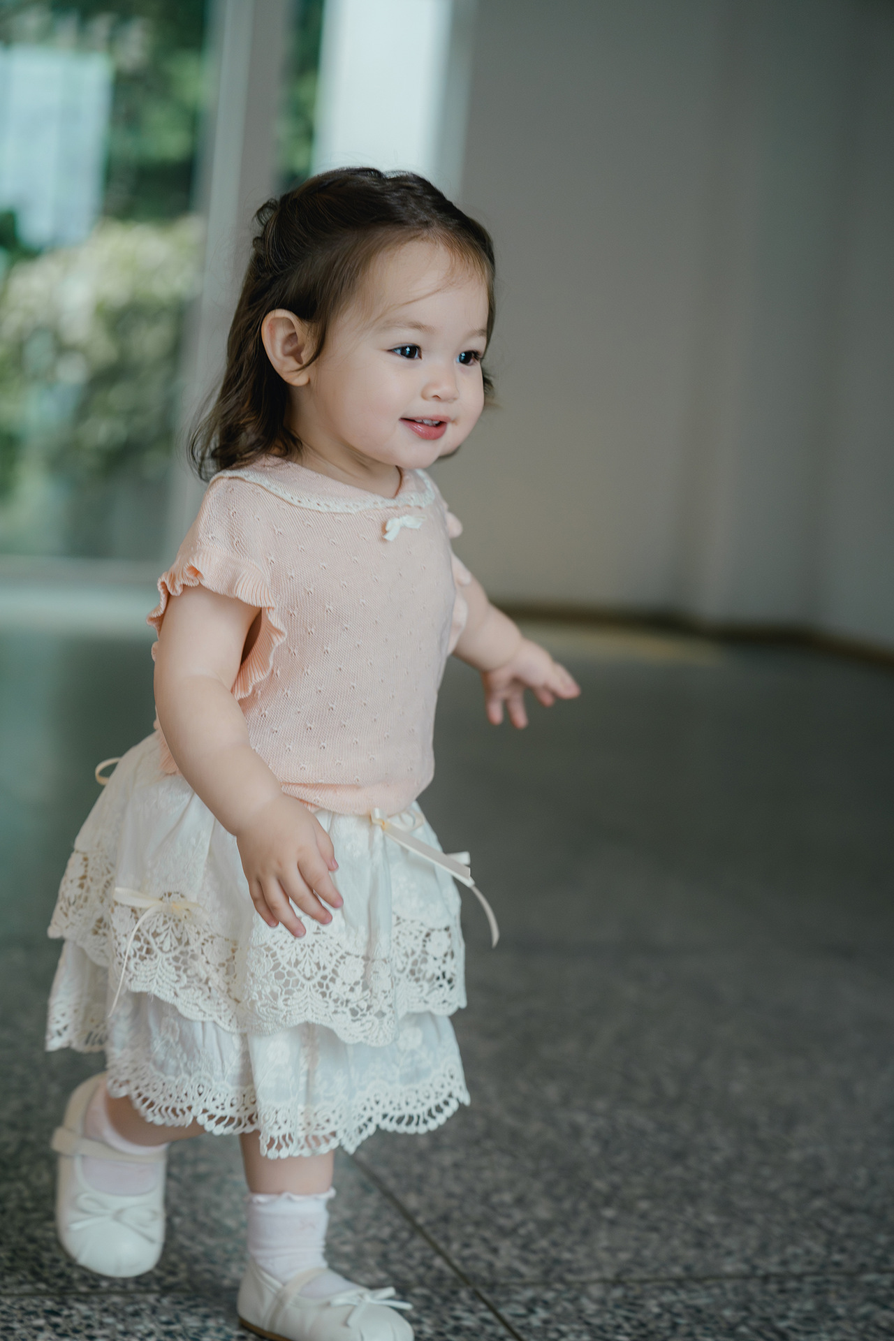 #キッズベスト #子供服 #女の子 #ニットトップス #レースニット #フリルスリーブ #夏物子供服 #重ね着アイテム #おしゃれキッズ