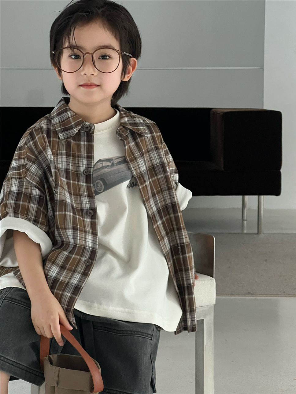 薄手の生地で仕立てられているため、蒸し暑い夏でもお子様が快適に過ごせるように、抜群の通気性を備えています。ゆったりとしたシルエットなので、元気いっぱいに動き回るお子様にも安心の着心地です。普段使いはもちろん、ちょっとしたお出かけにもおすすめです。このレトロチェック半袖シャツは、お子様の日常の装いに快適さとトレンド感を添える一着です。