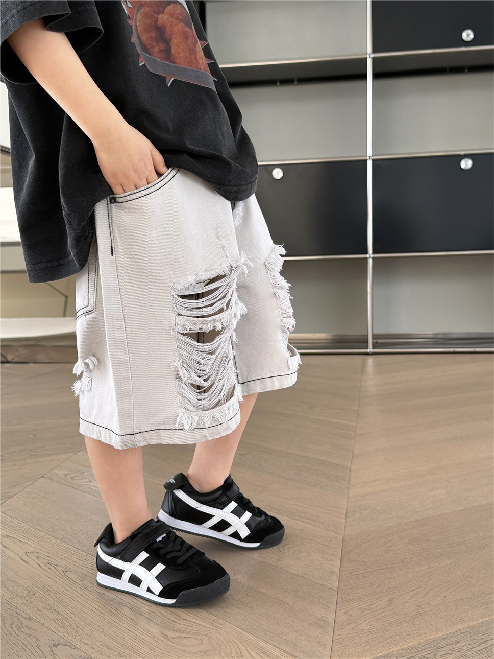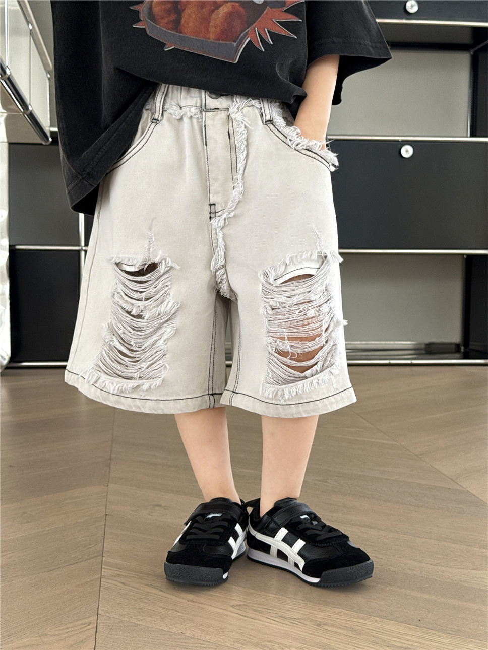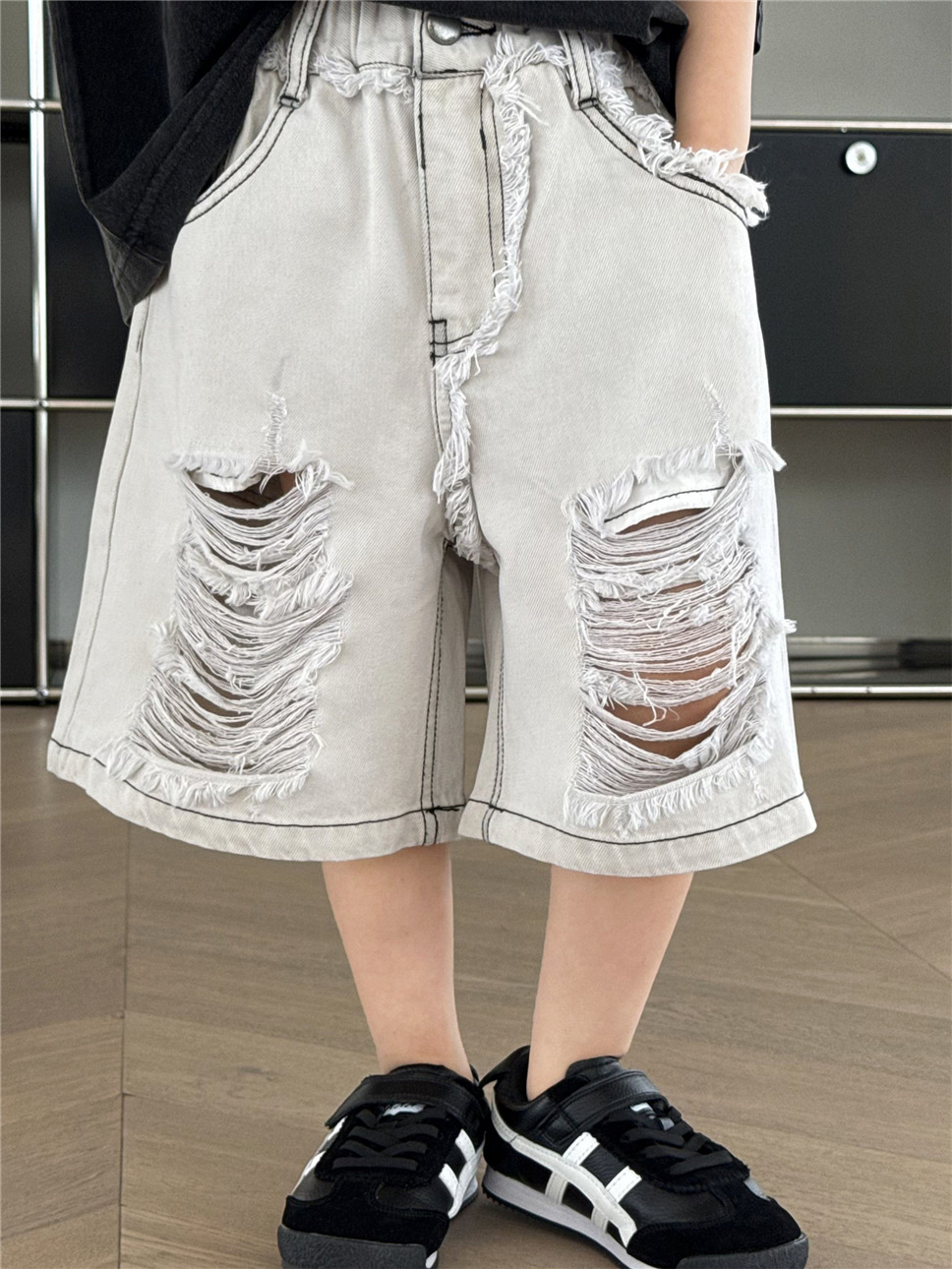 #キッズパンツ #子供服 #デニムパンツ #ハーフパンツ #ダメージデニム #韓国子供服 #ユニセックス