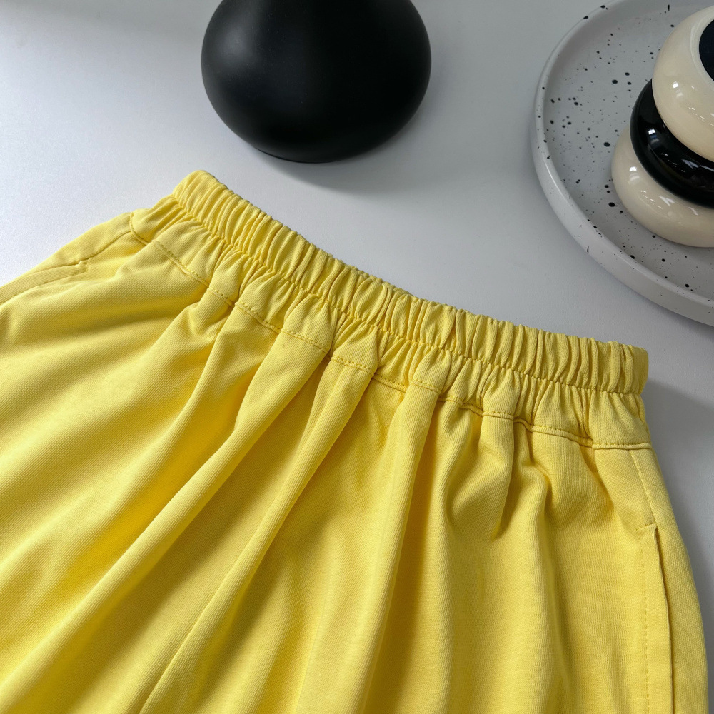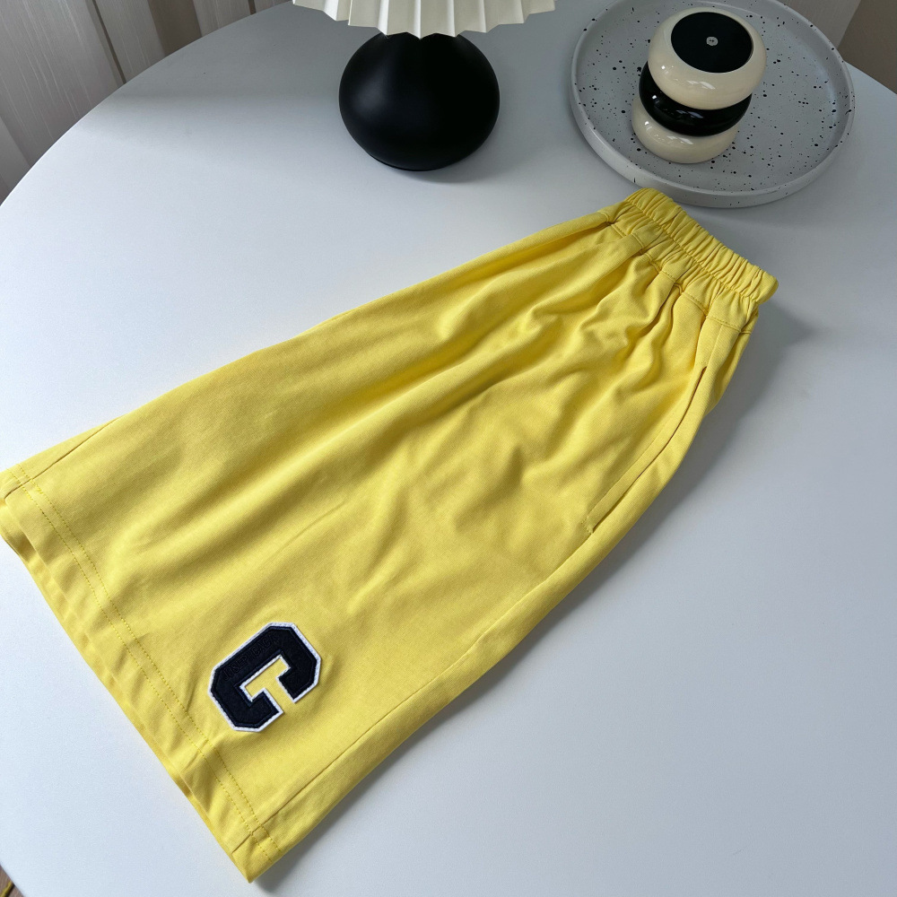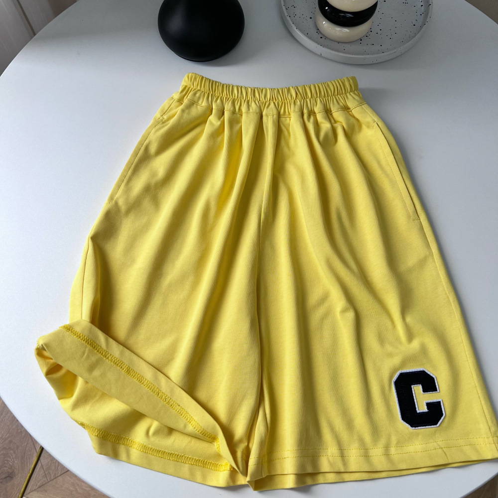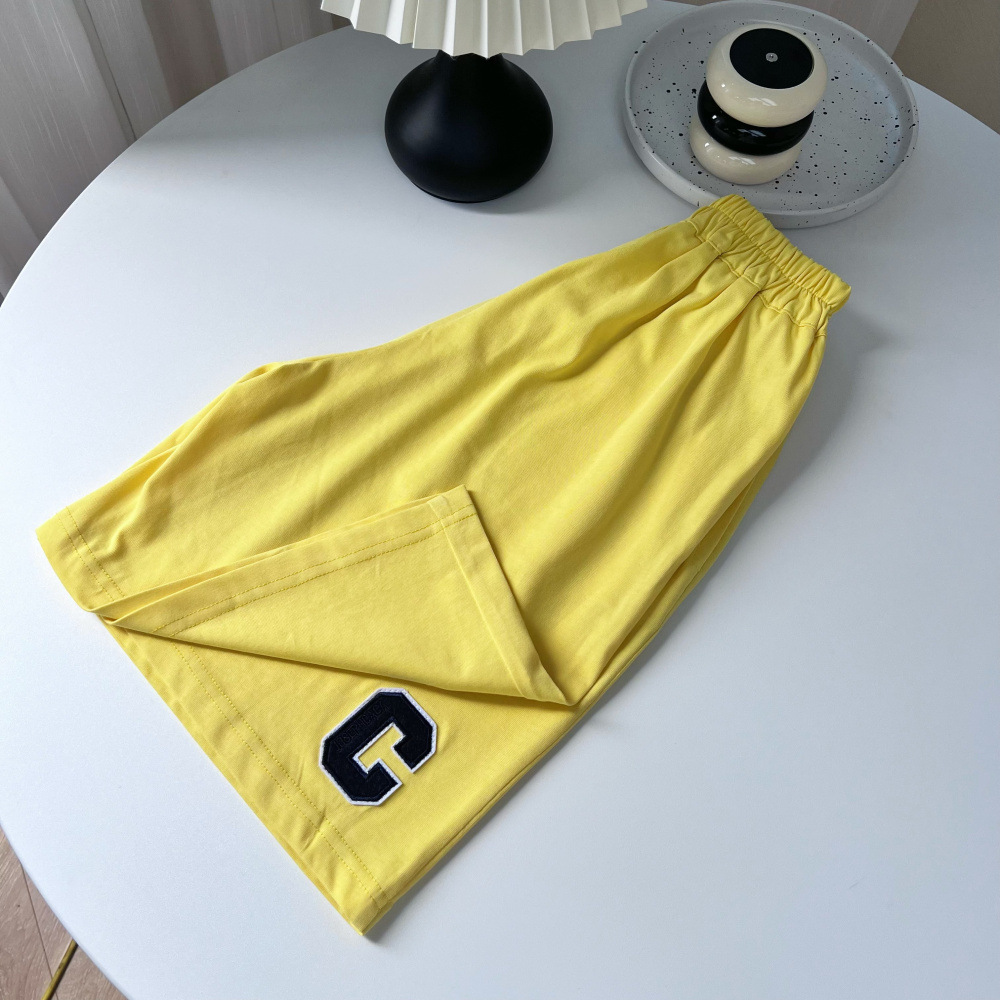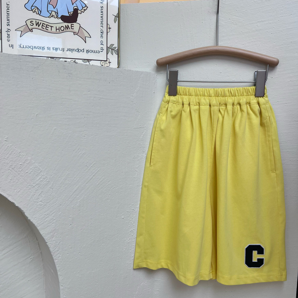 フロントにあしらわれた明るい色合いの刺繍レターロゴがアクセントになっています。ゆったりとしたワイドシルエットで、お子さんが快適に過ごせるデザイン。膝丈のクロップド丈なので、通気性も良く、暑い夏でも涼しく快適です。動きやすさも抜群なので、普段使いはもちろん、活発に動き回る場面でも大活躍。ユニセックスで着用できるので、幅広いコーディネートにマッチします。