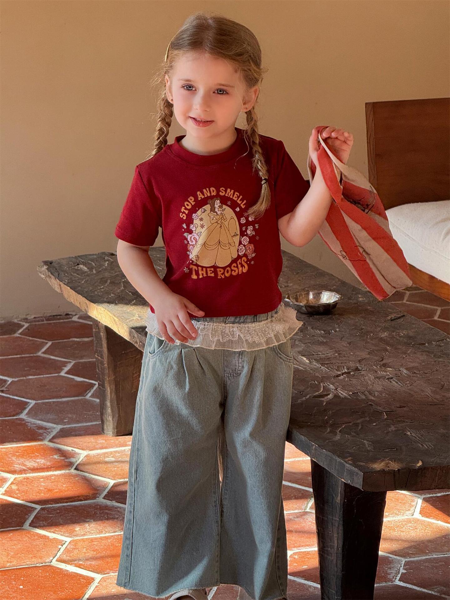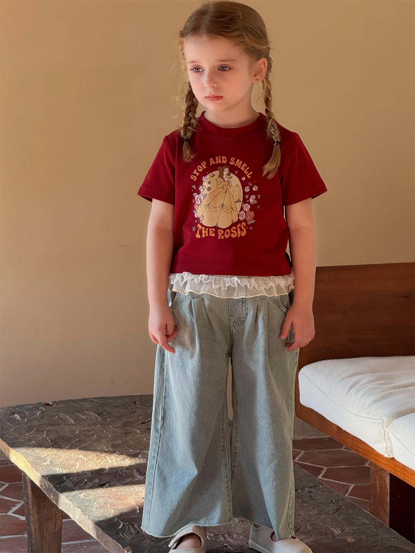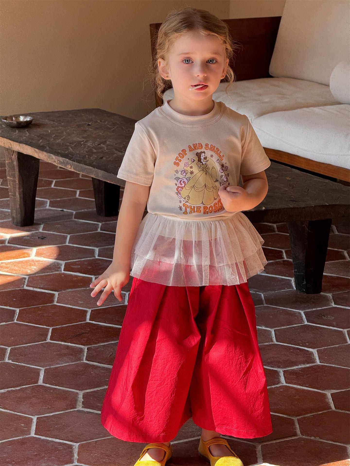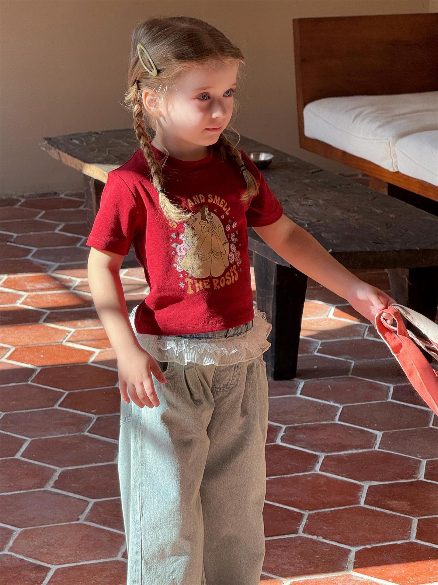 レトロで可愛いプリンセスプリント半袖Tシャツです。夏の女の子にぴったりの、カジュアルながらもキュートな一枚。柔らかなコットン素材で、暑い夏でも快適に過ごせます。クルーネックで着脱も簡単。カジュアルな普段使いはもちろん、ちょっとしたお出かけにも大活躍する、着回し力の高いトップスです。
