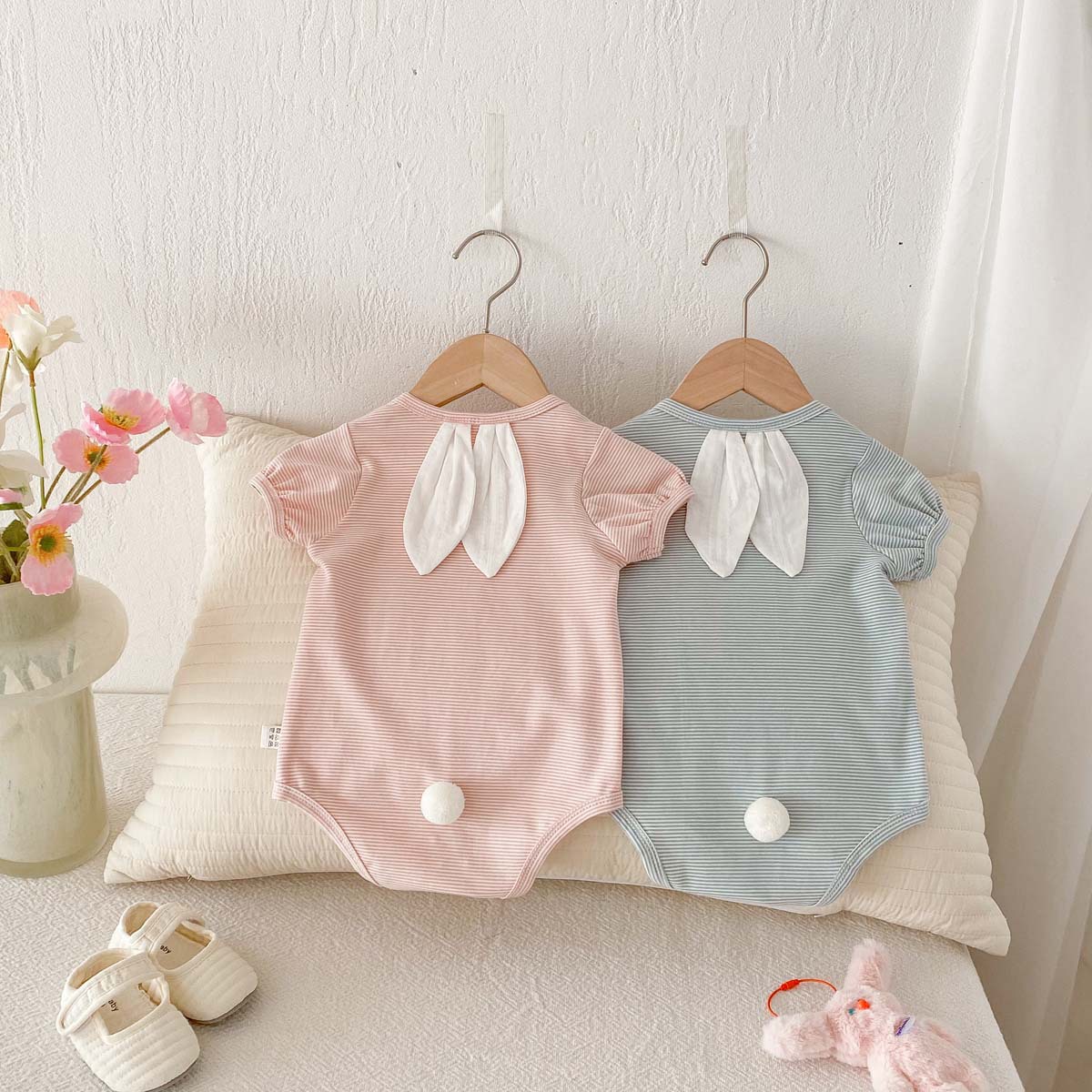 #ベビー服 #ロンパース #うさ耳 #ボーダー #夏服 #新生児 #男女兼用