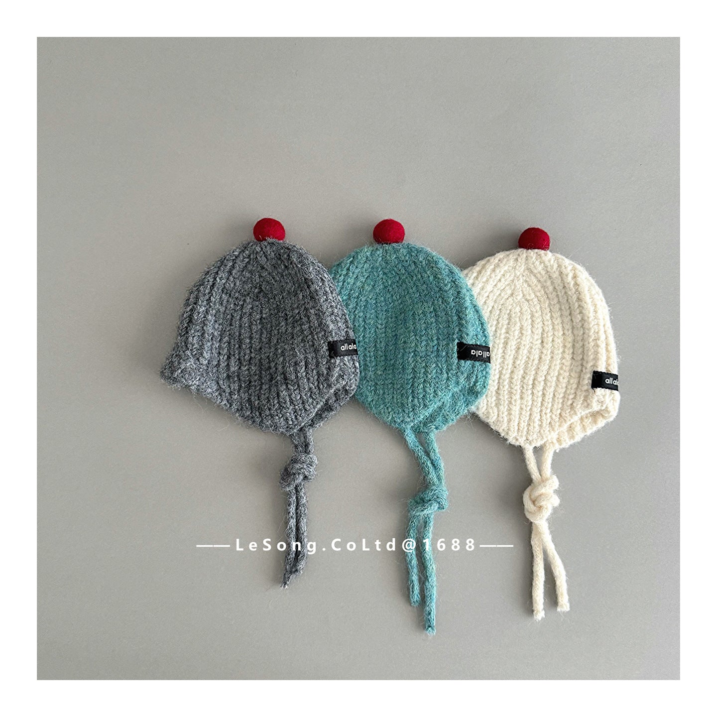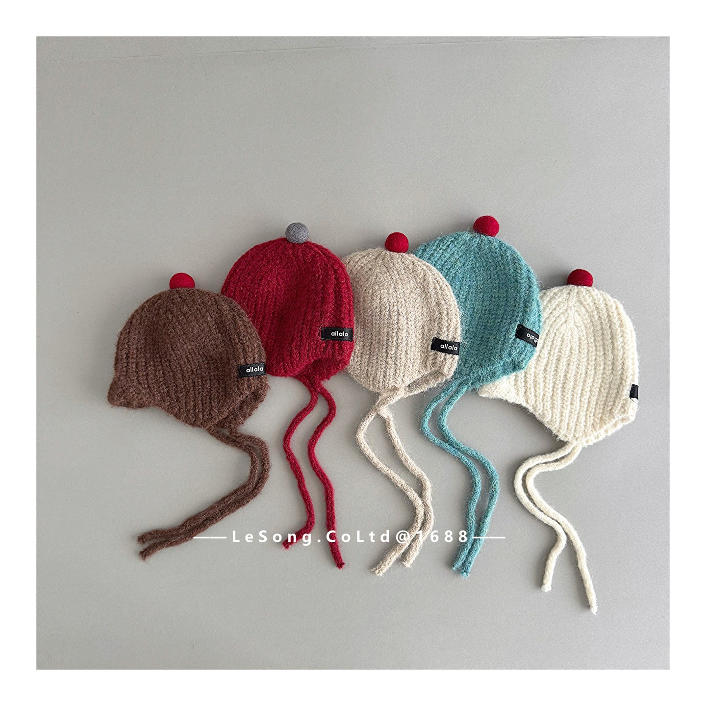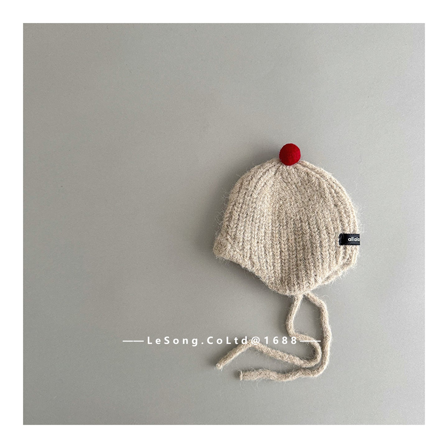 キッズ ニット帽 ポンポン あご紐付き 耳当て 防寒 ベビー【mh0011597】