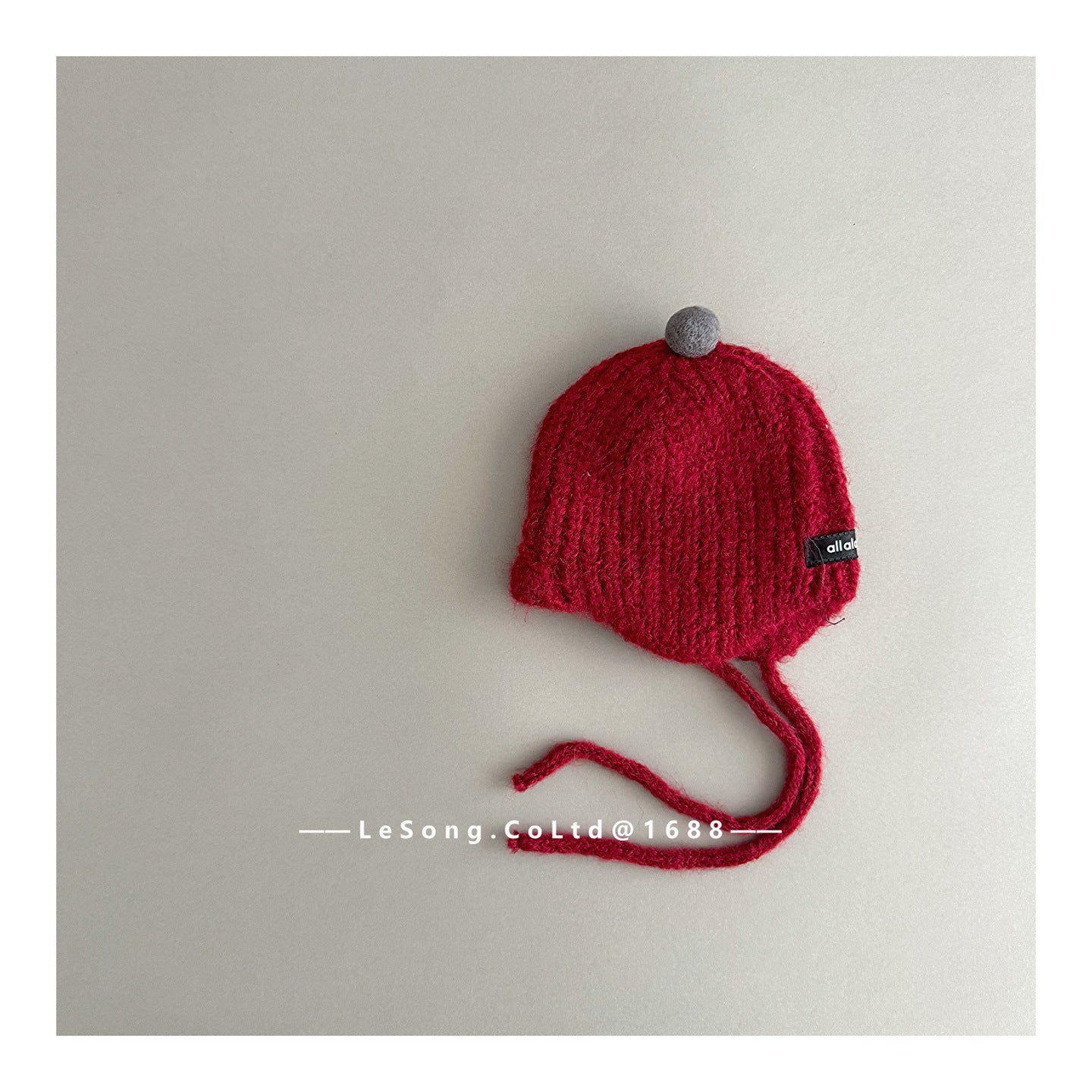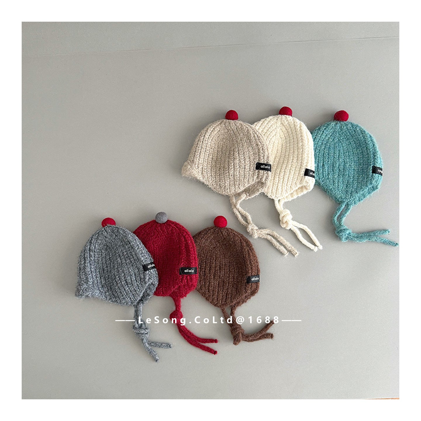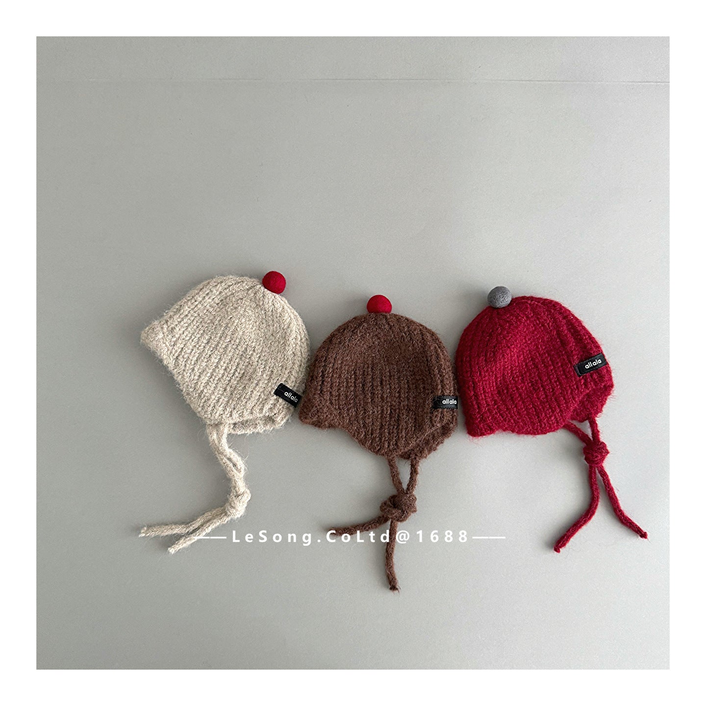 キッズ ニット帽 ポンポン あご紐付き 耳当て 防寒 ベビー【mh0011597】