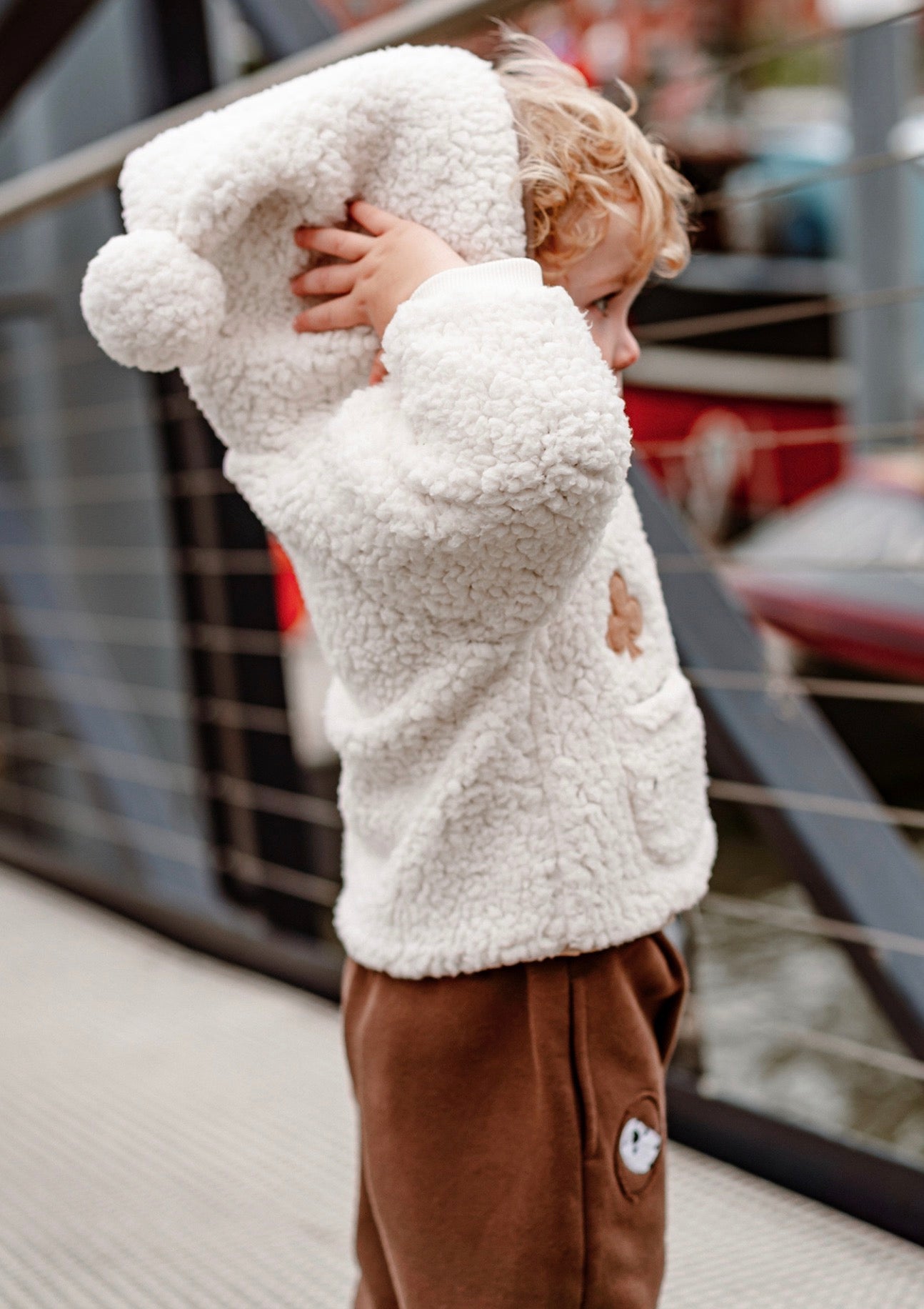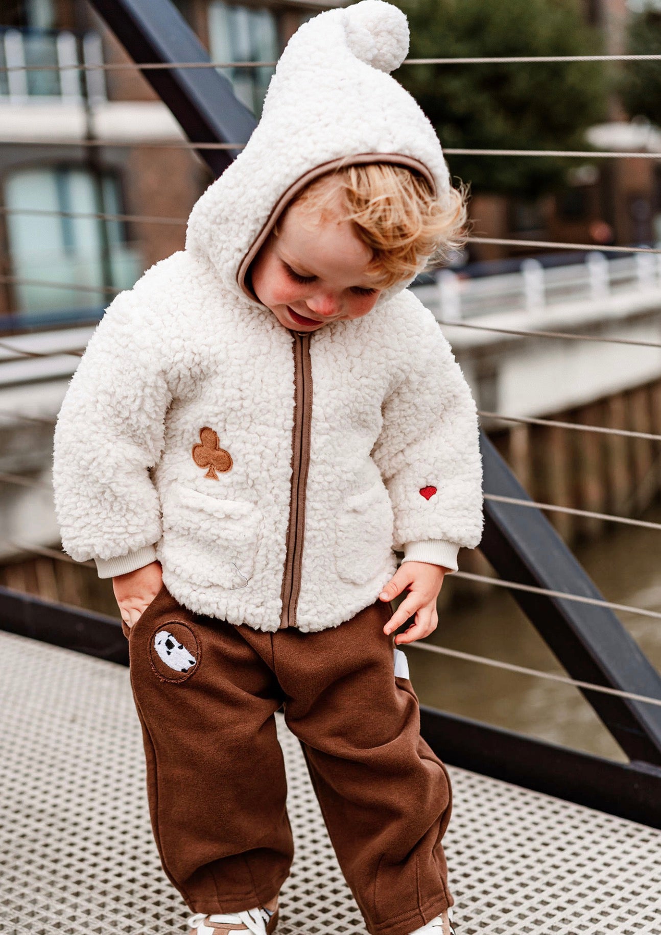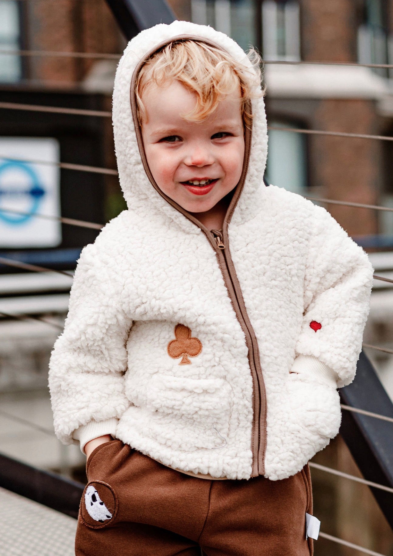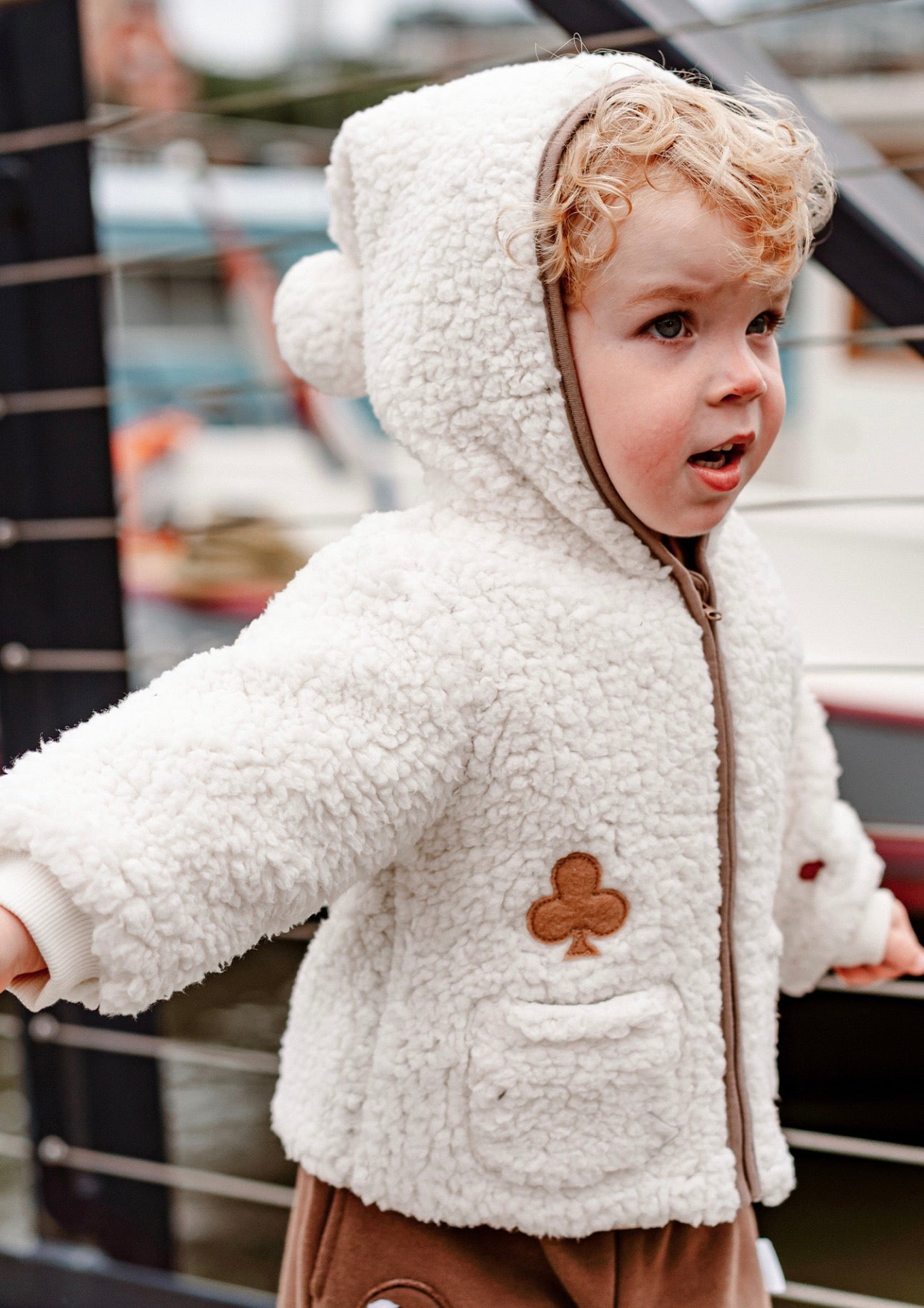 ポンポン付きのフードが遊び心を添えるボア素材のジャケットは、寒い日のおしゃれを楽しむためのアウターです。もこもことした質感が愛らしいこのジップアップは、北欧テイストを感じさせる洗練されたデザインが魅力。厚手の生地がベビーをしっかりと暖め、カジュアルな装いをセンス良く仕上げるトップスとして活躍します。